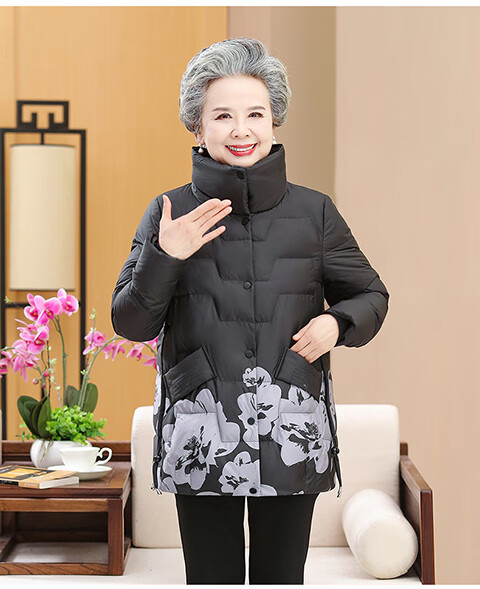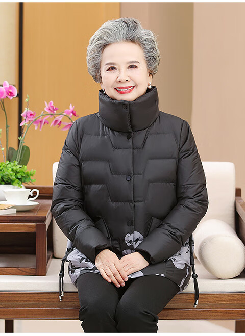 雪中飞羽绒服女2025款短款宽松立领抗寒保暖外套优雅奶奶装30617 黑色 L (170) 90-110斤