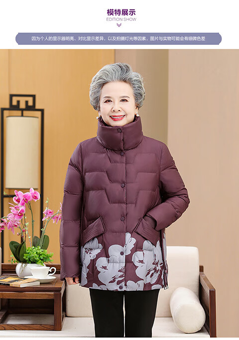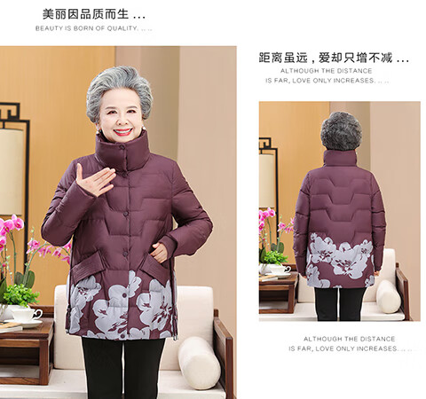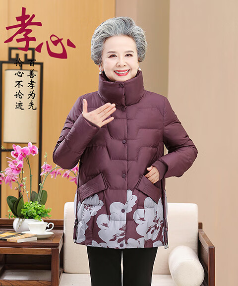 雪中飞2025新款妈妈羽绒服中老年女装秋冬季上衣奶奶装冬装外套6163 暗红色 L (17088A) 80-95斤