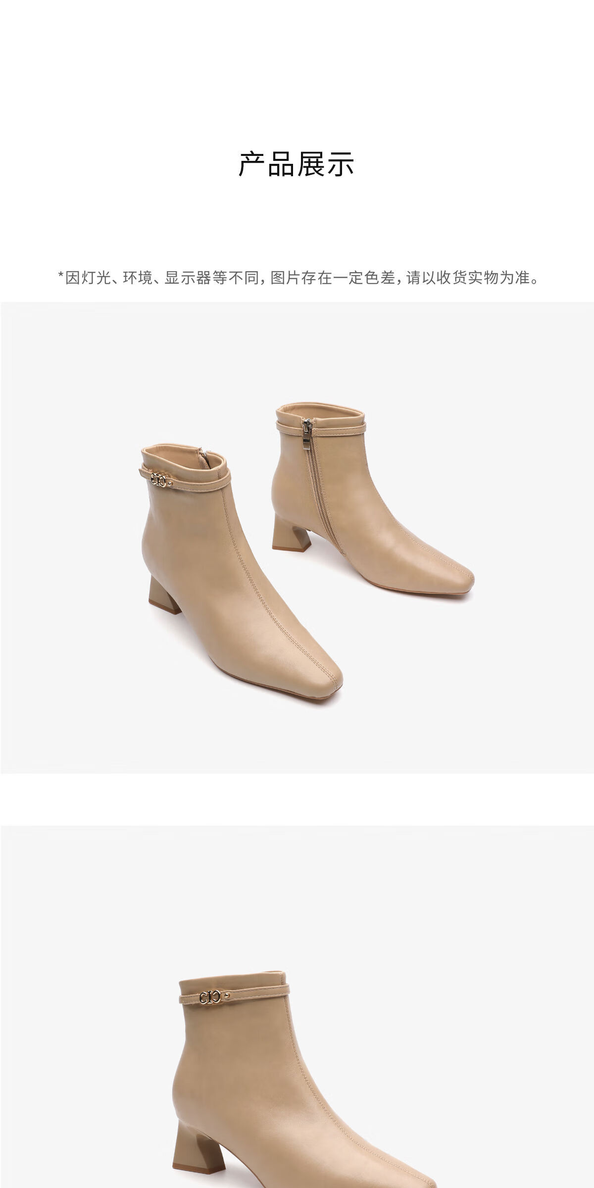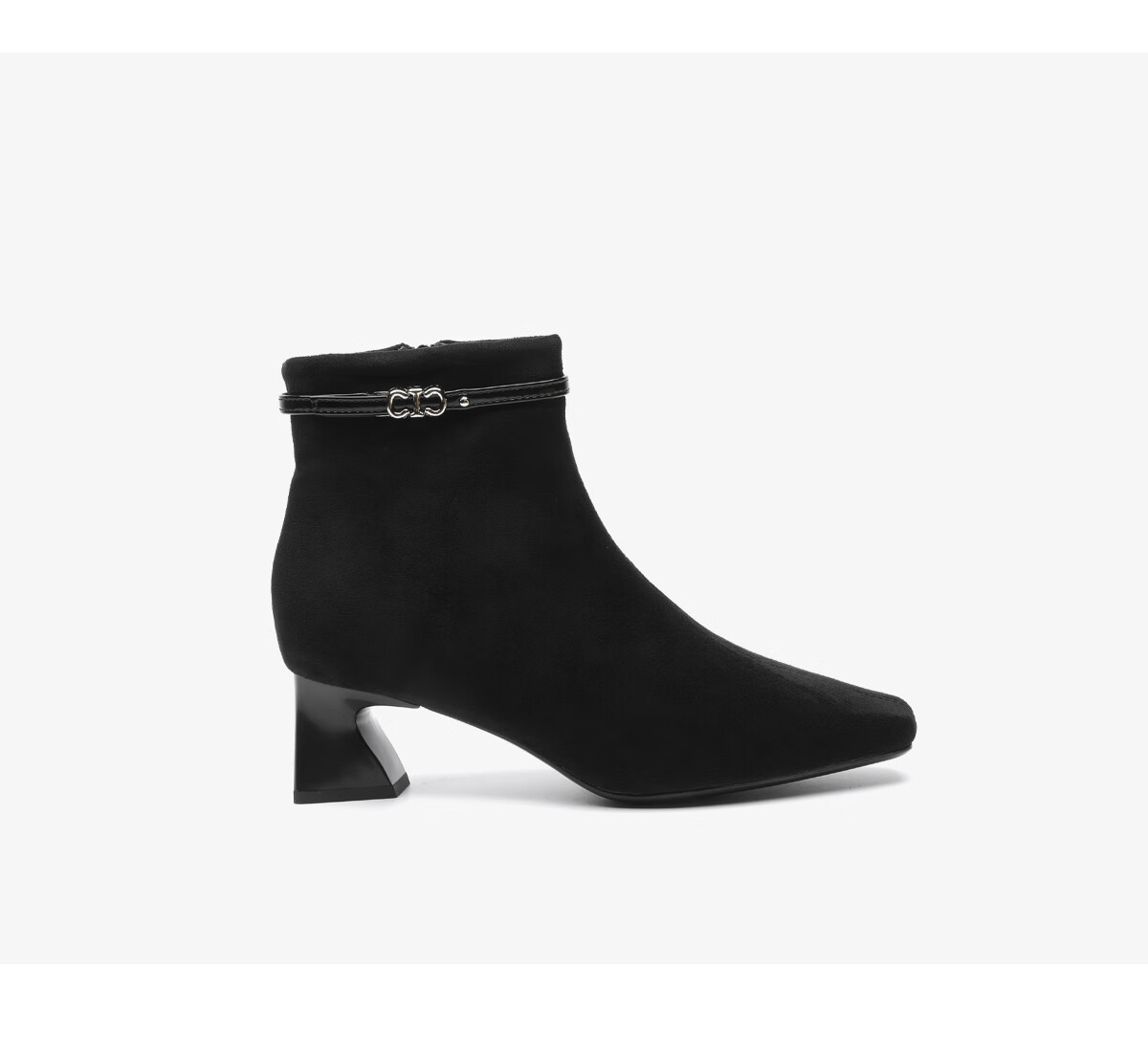 月芽儿方头短靴女2025新款显瘦时装靴法式加绒侧拉链高跟靴子 绒里黑色01T 34