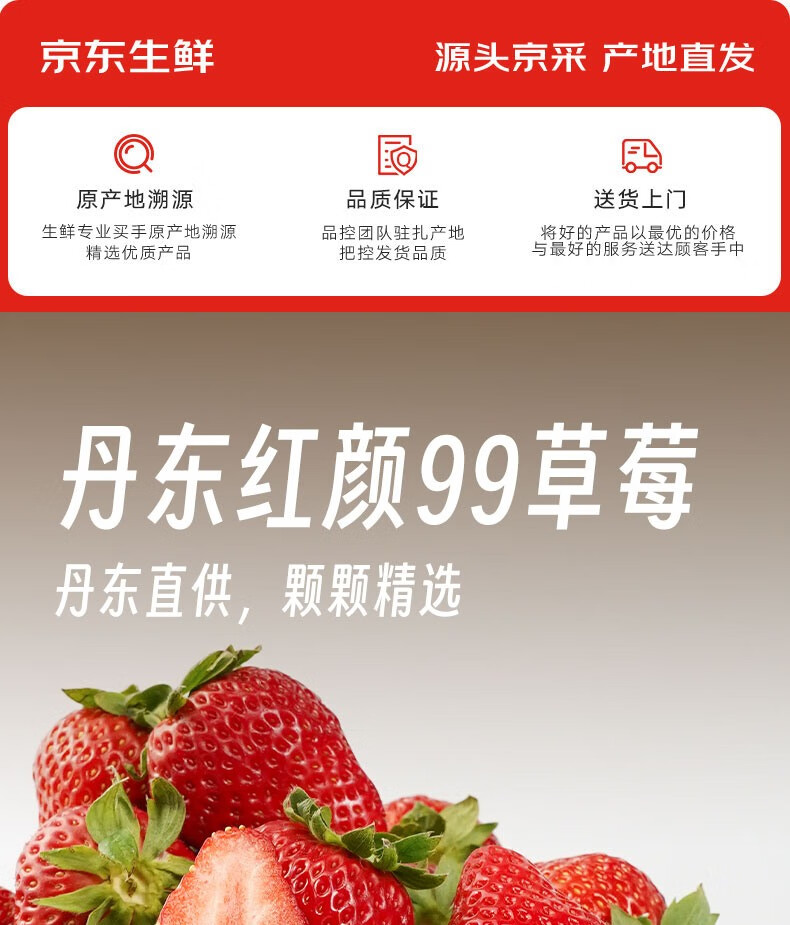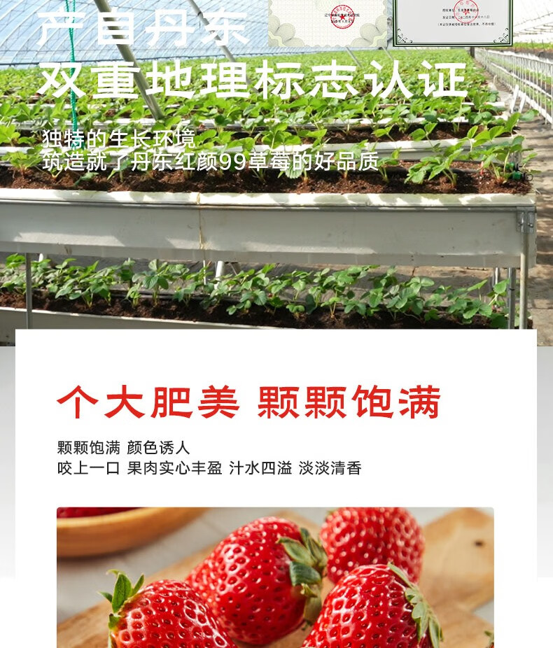 京觅 丹东红颜99草莓净重2斤单果20克起 九九奶油草莓 源头直发