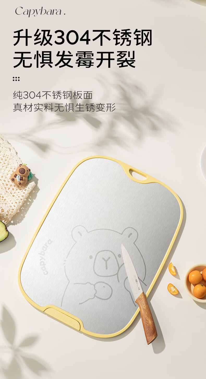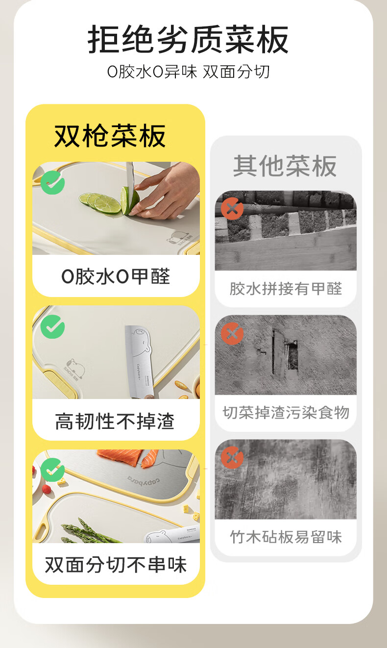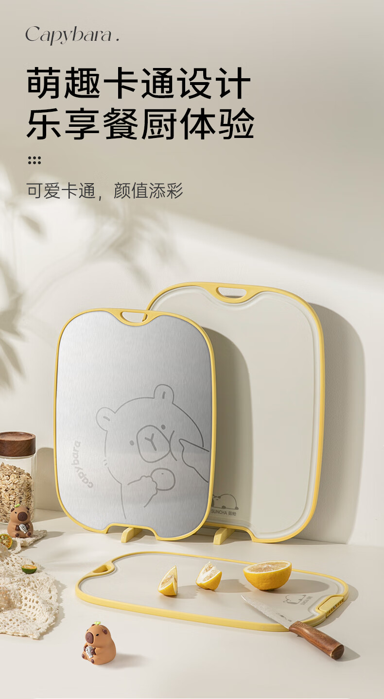 双枪切菜板 食品级抗菌防霉水果砧案板家用不锈钢双面辅食菜板大号