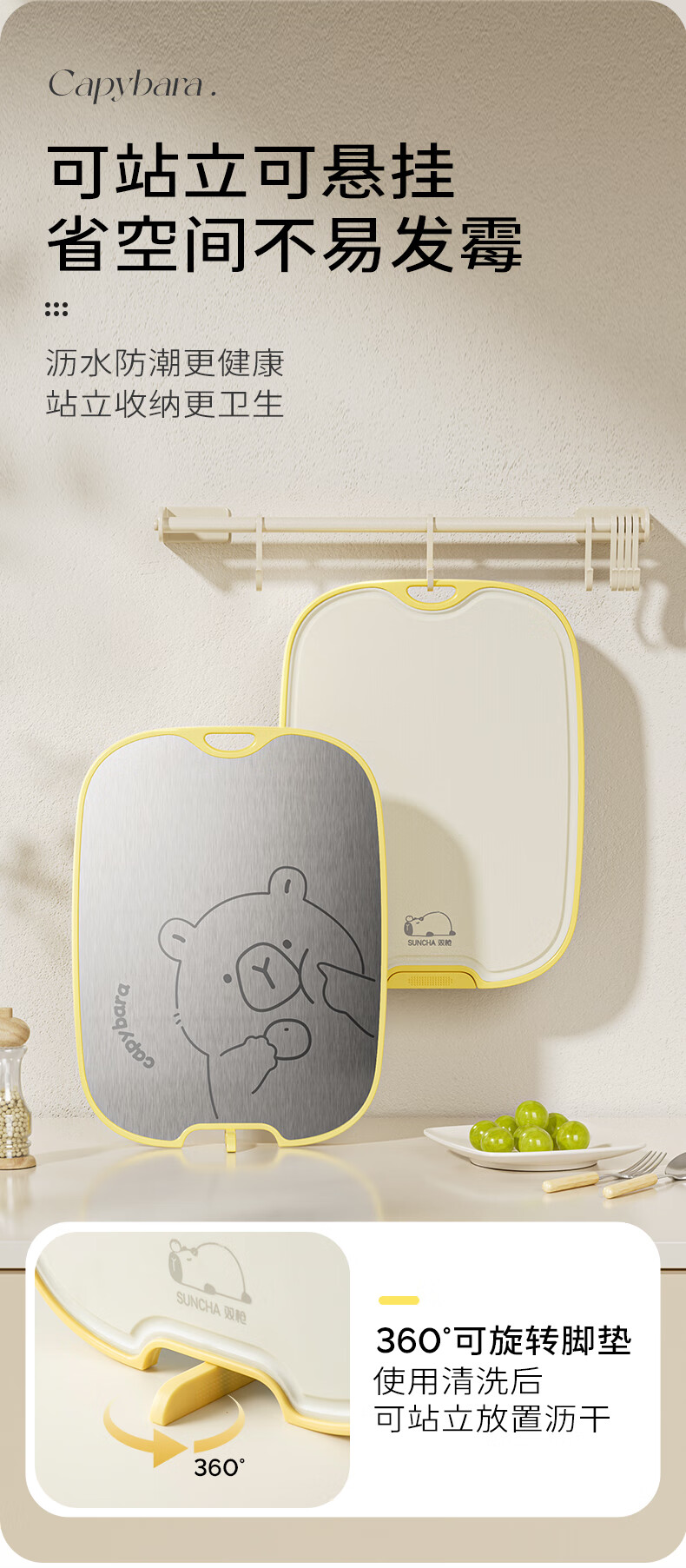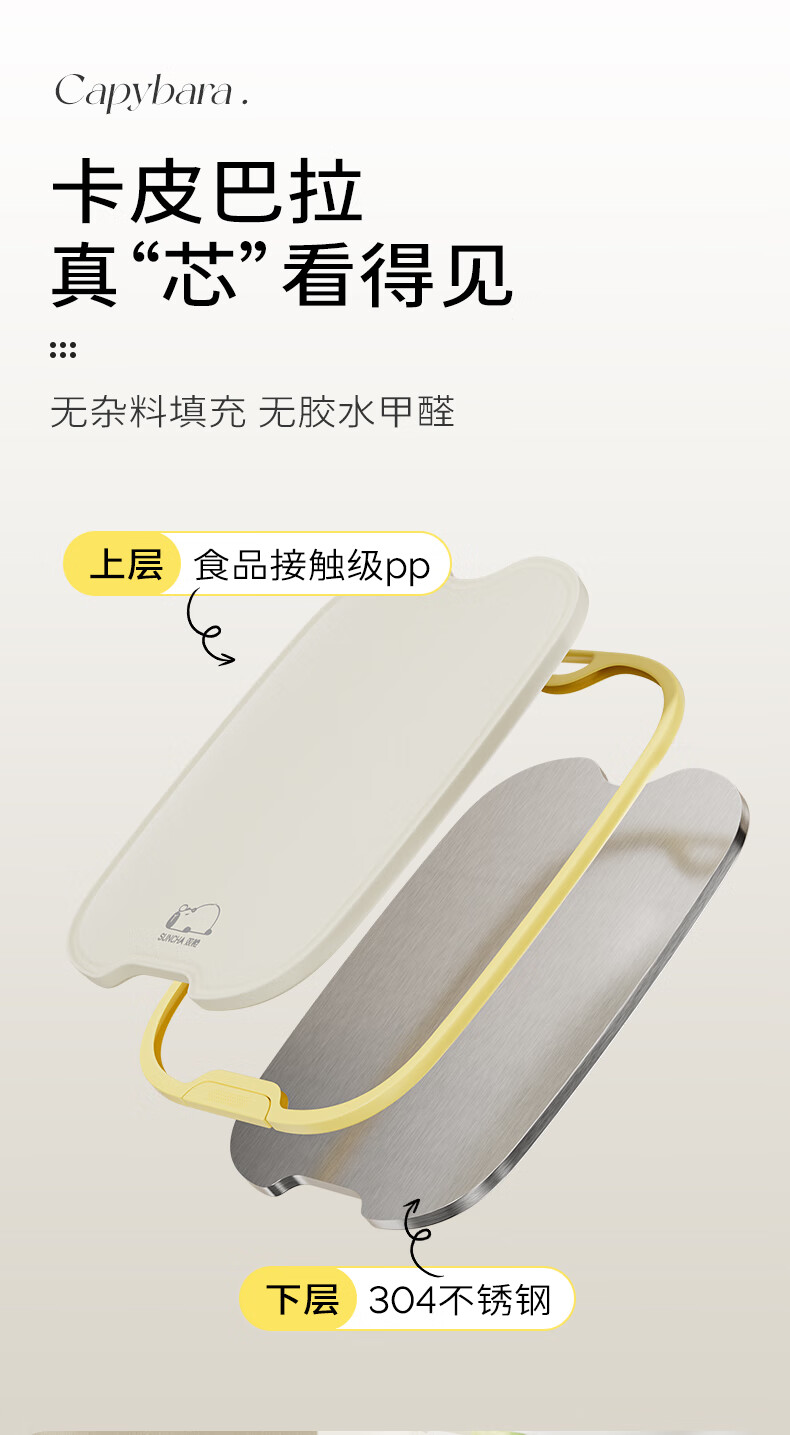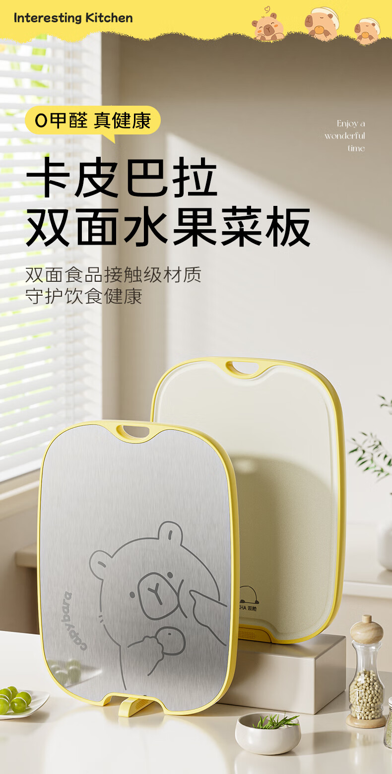 双枪切菜板 食品级抗菌防霉水果砧案板家用不锈钢双面辅食菜板大号