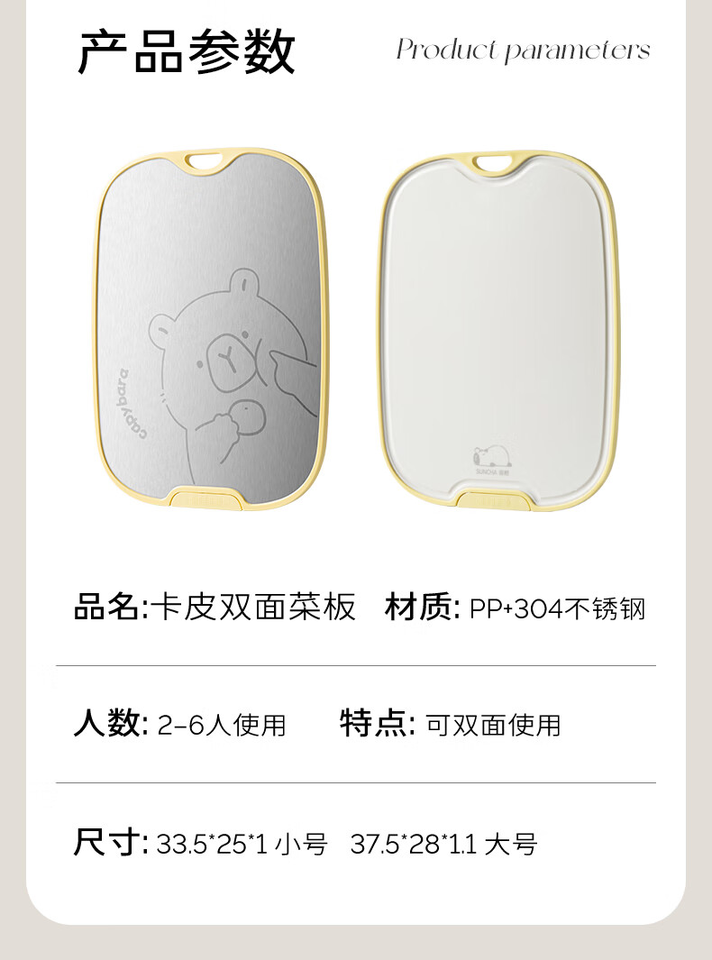双枪切菜板 食品级抗菌防霉水果砧案板家用不锈钢双面辅食菜板小号