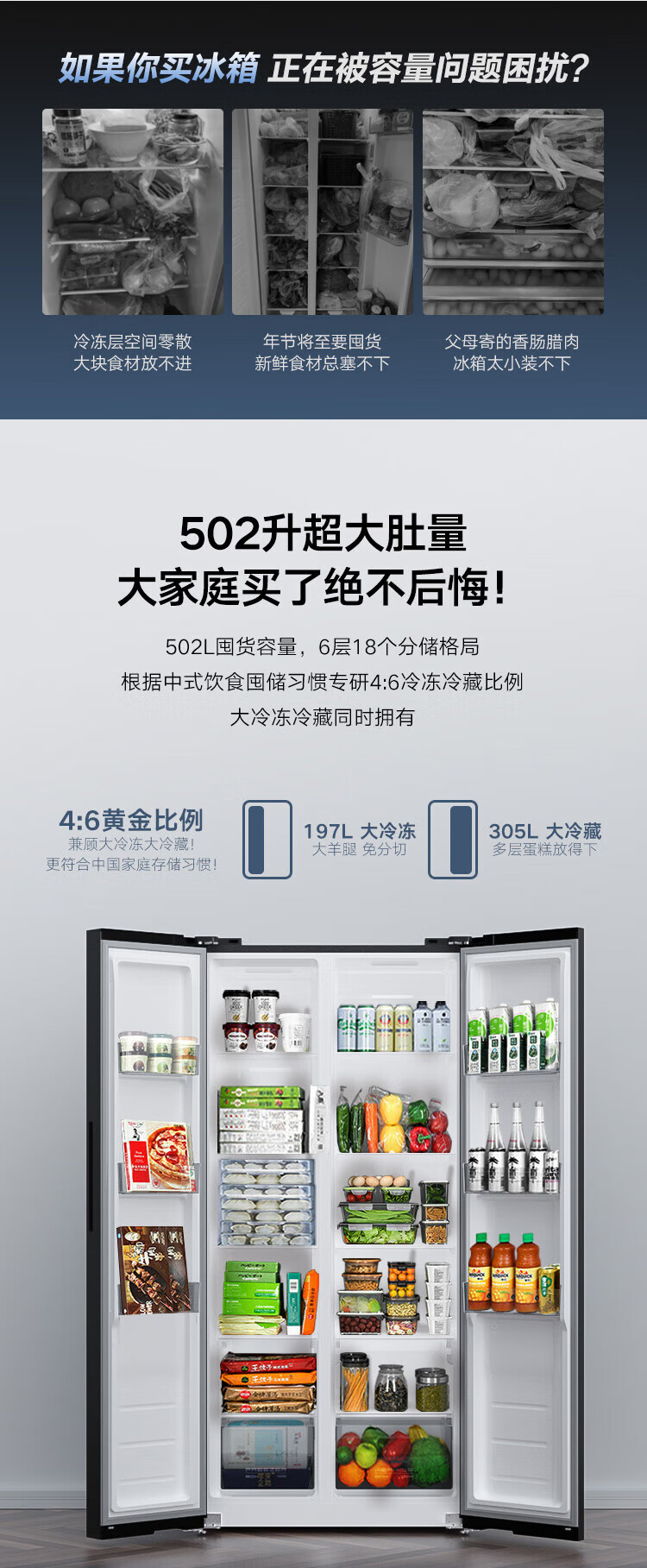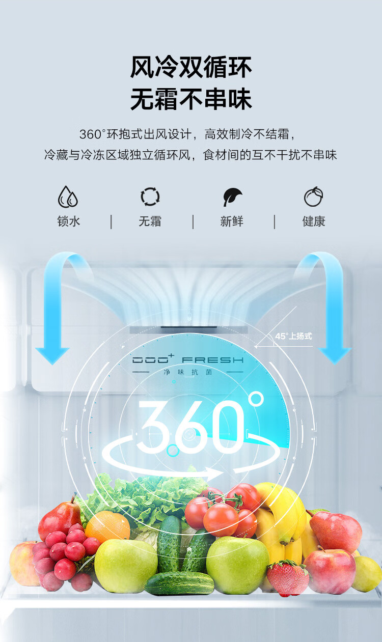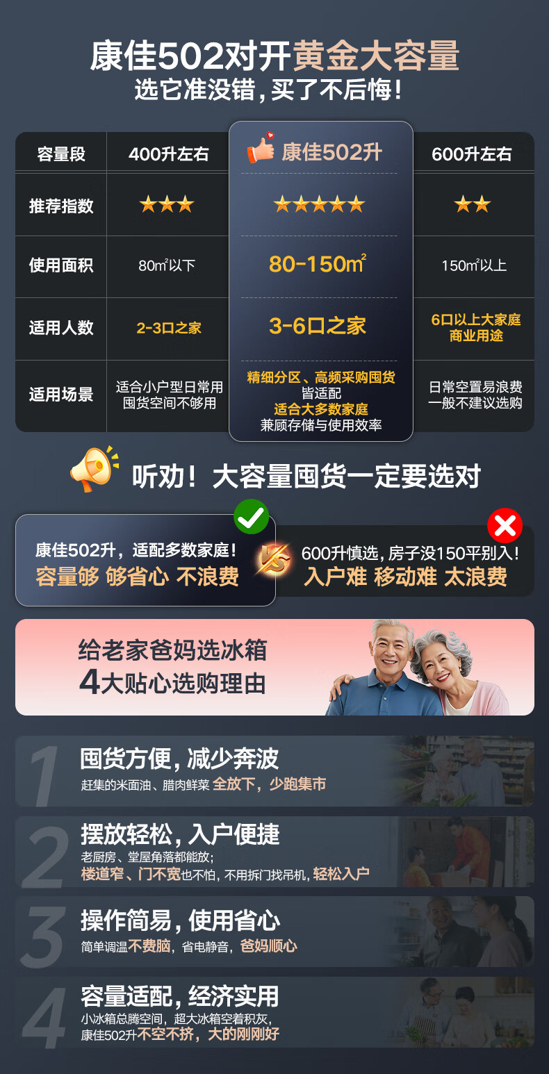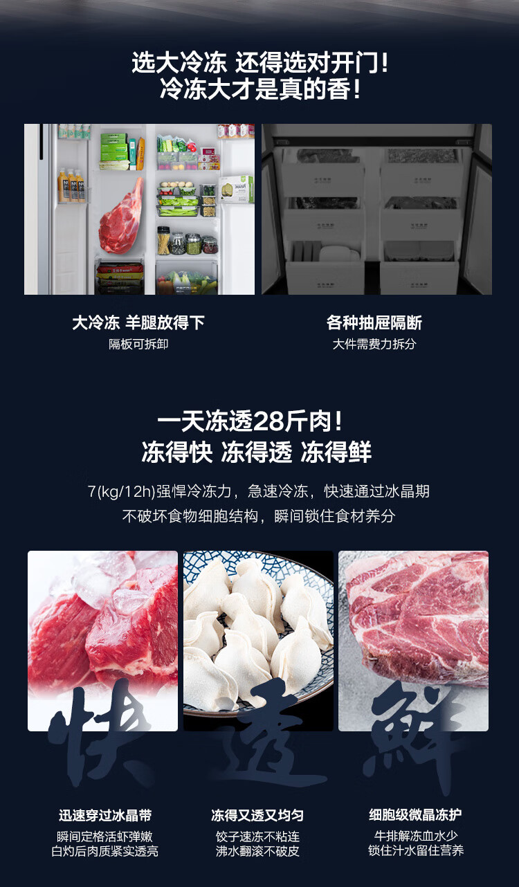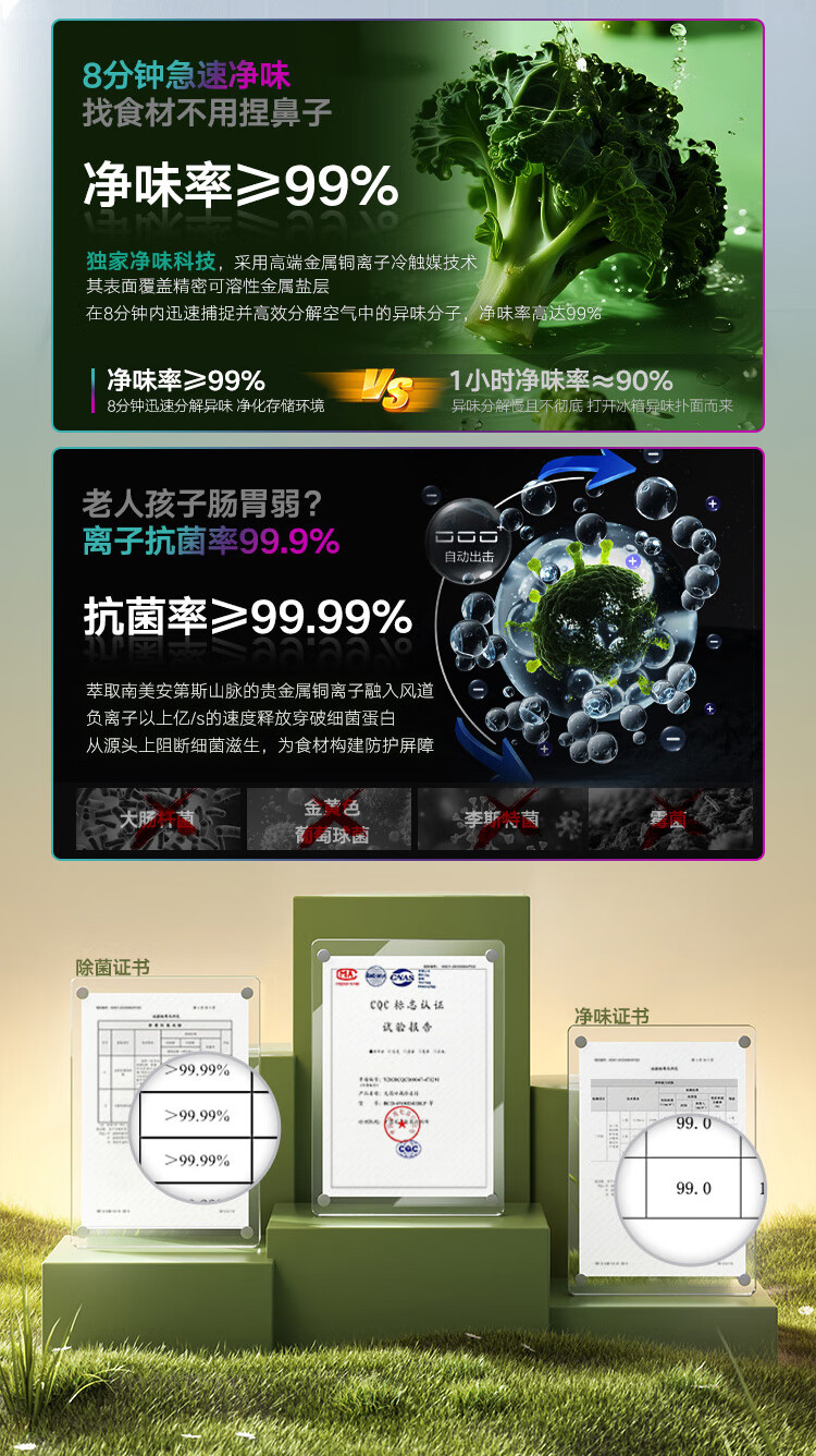 康佳502升对开门冰箱8分钟净味家用一级能效变频节能无霜双循环超薄风冷大容量BCD-502WEGQ5SP国家补贴
