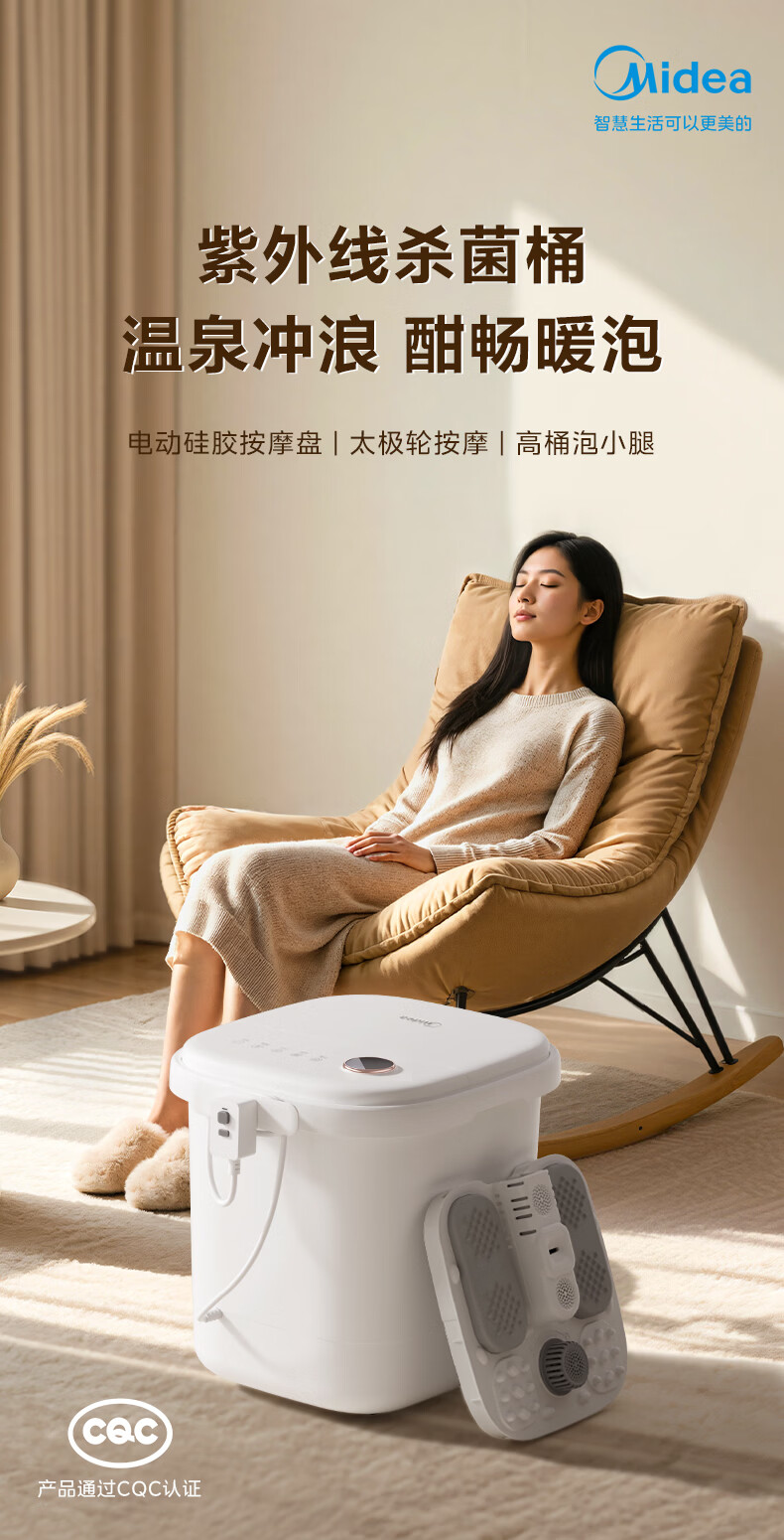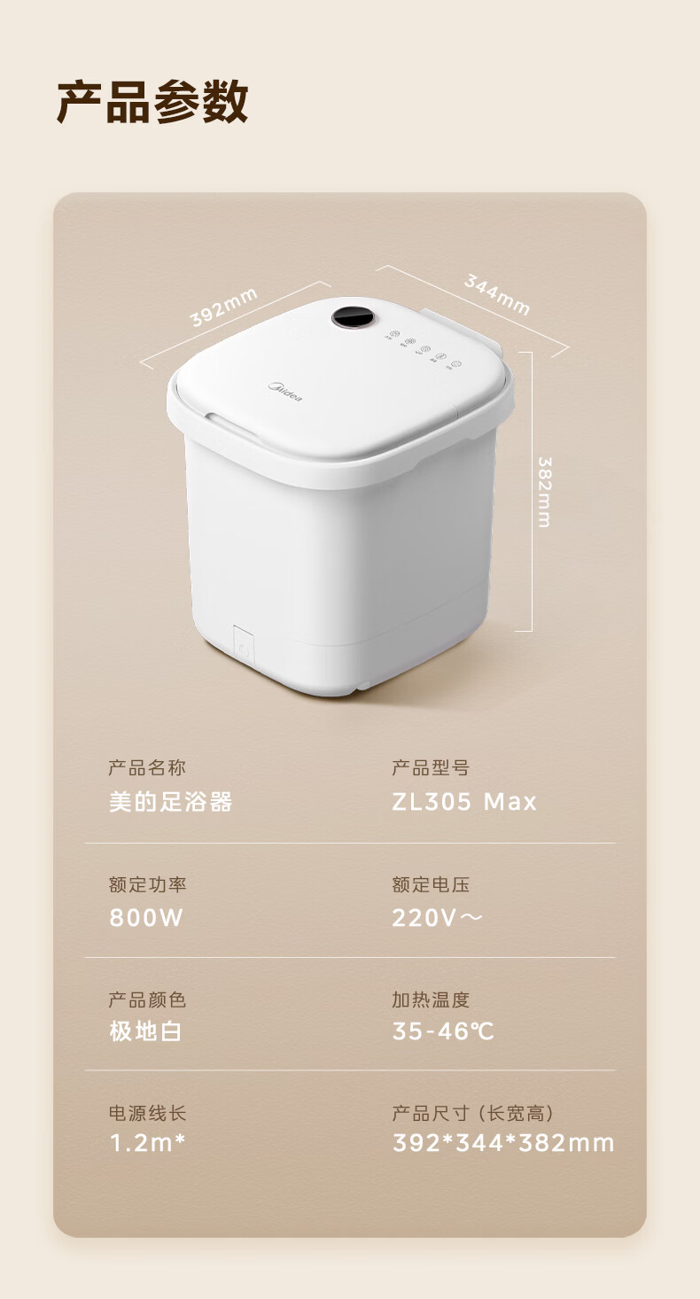 美的(Midea)泡脚桶按摩足浴盆加热保暖自动按摩暖脚洗脚盆杀菌泡脚盆恒温三八节礼物生日送男女友ZL305Max