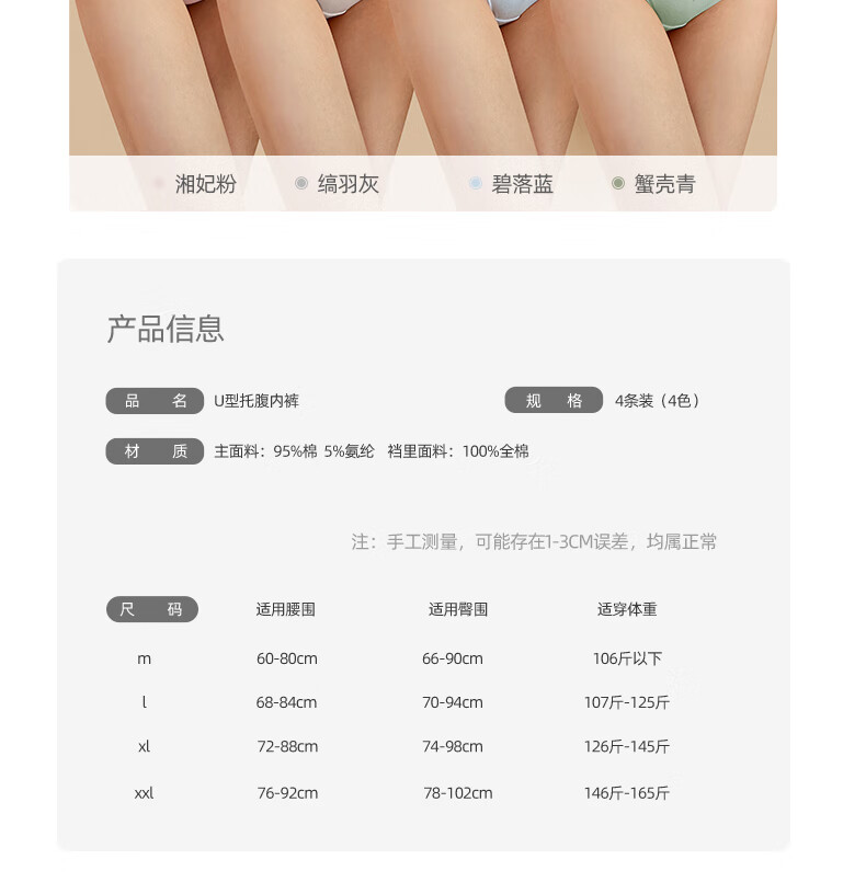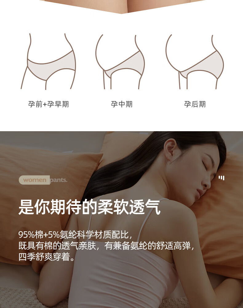十月结晶孕妇内裤低腰棉孕早中期孕晚期孕产妇托腹内裤女4条装 XL码
