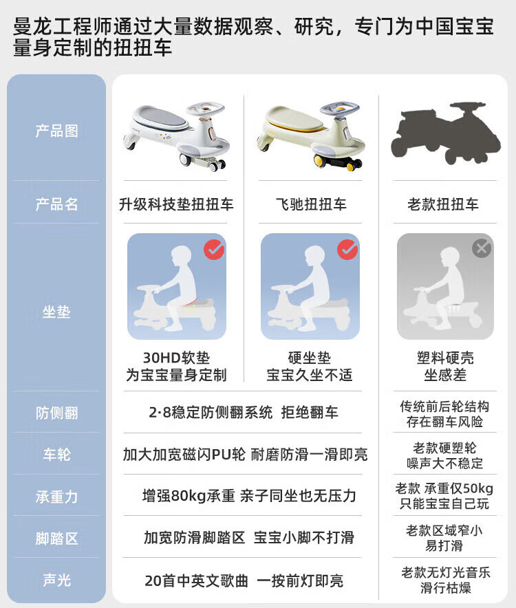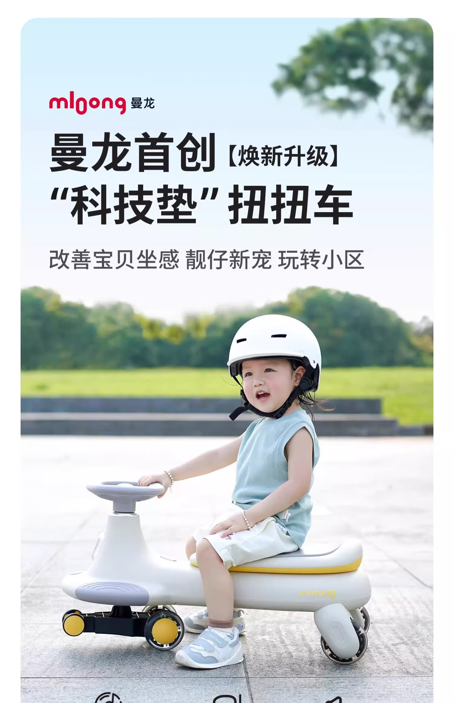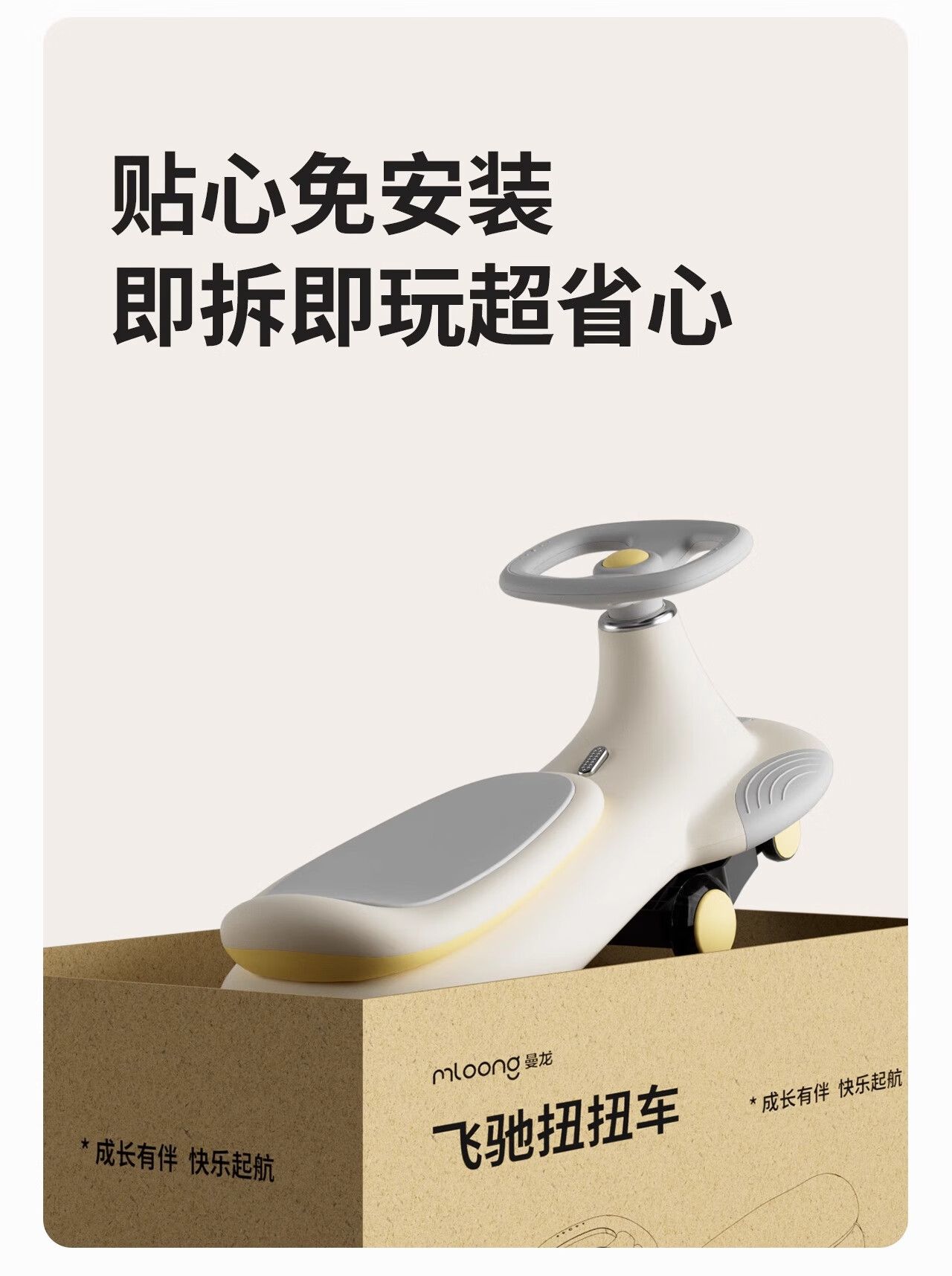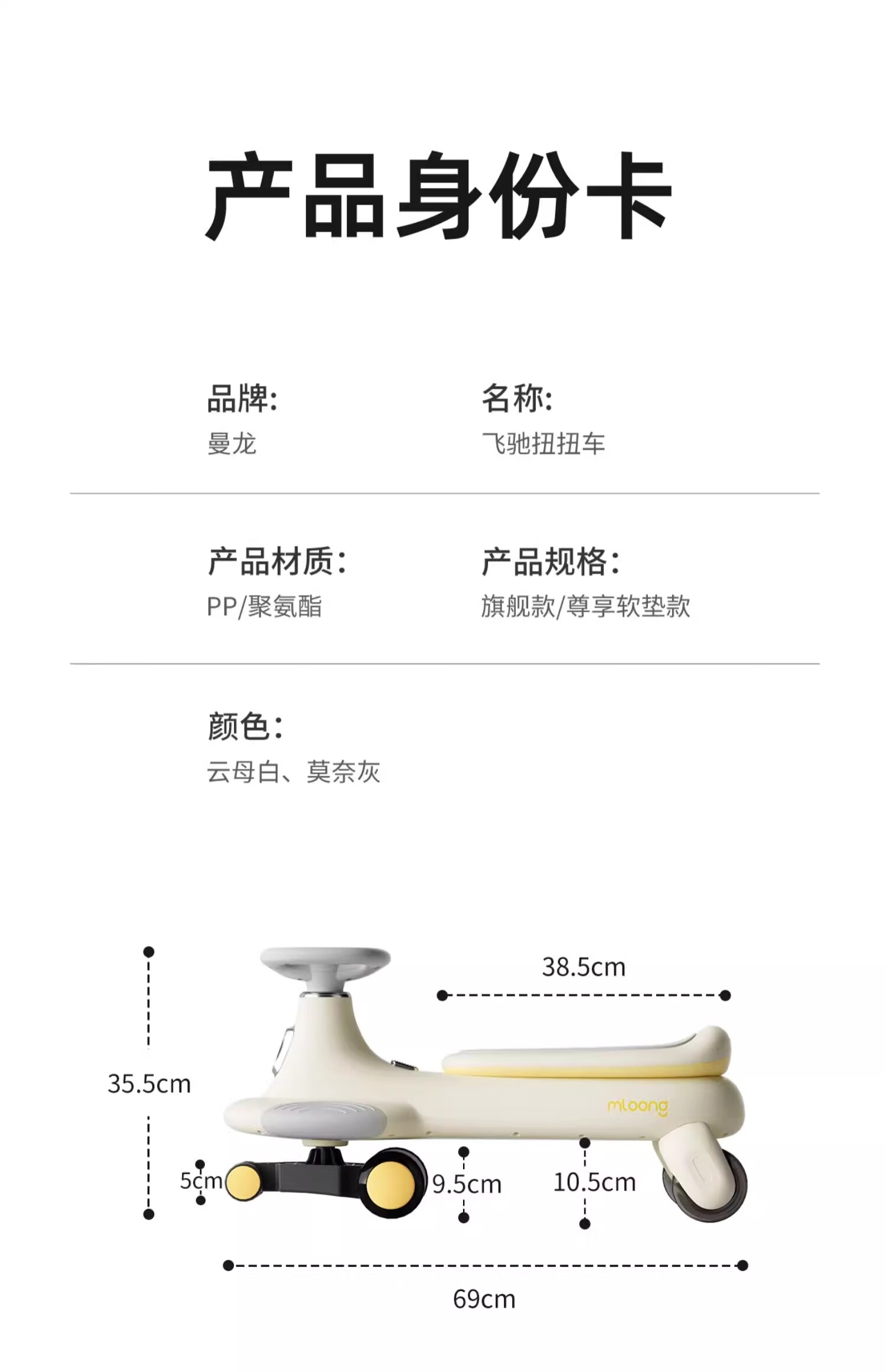 曼龙扭扭车1-3-6岁防侧翻大人可坐儿童溜溜车音乐摇摇车 莫奈灰
