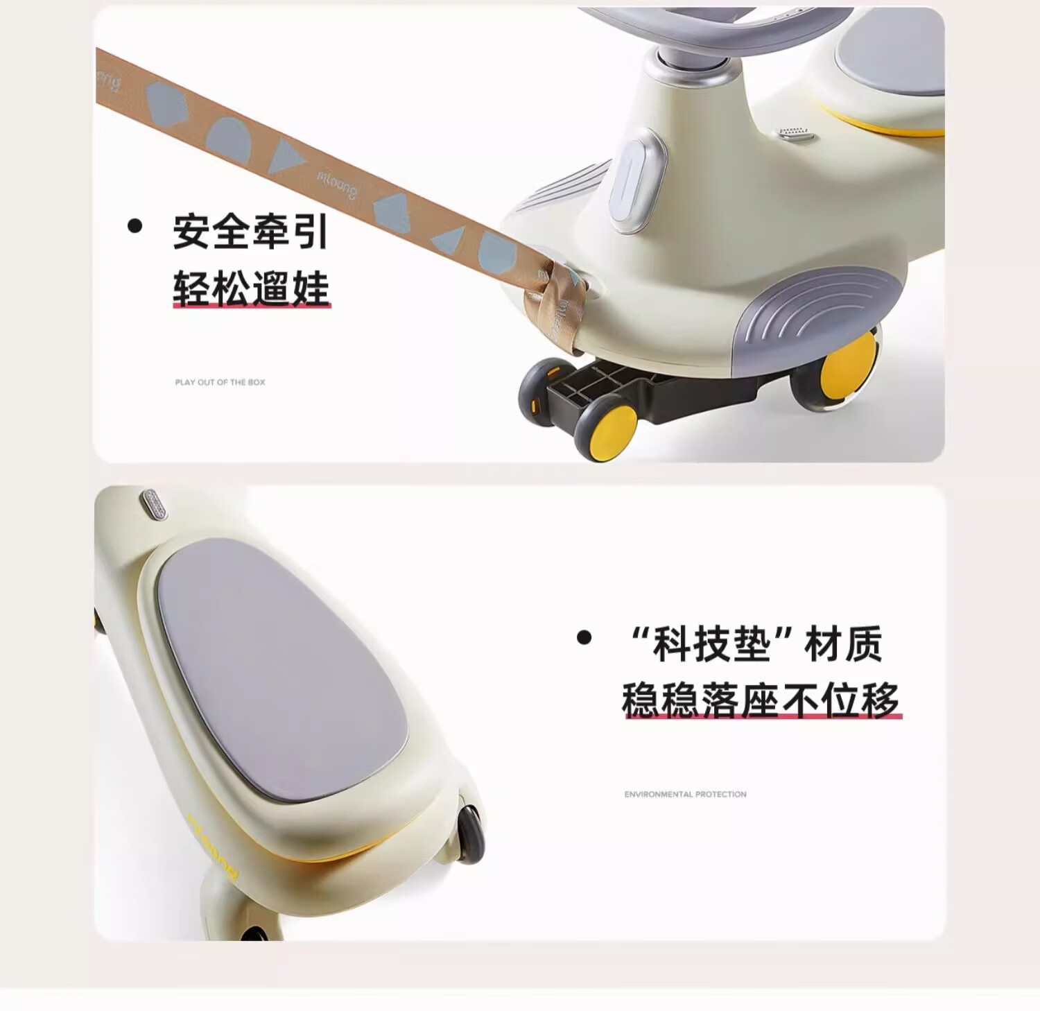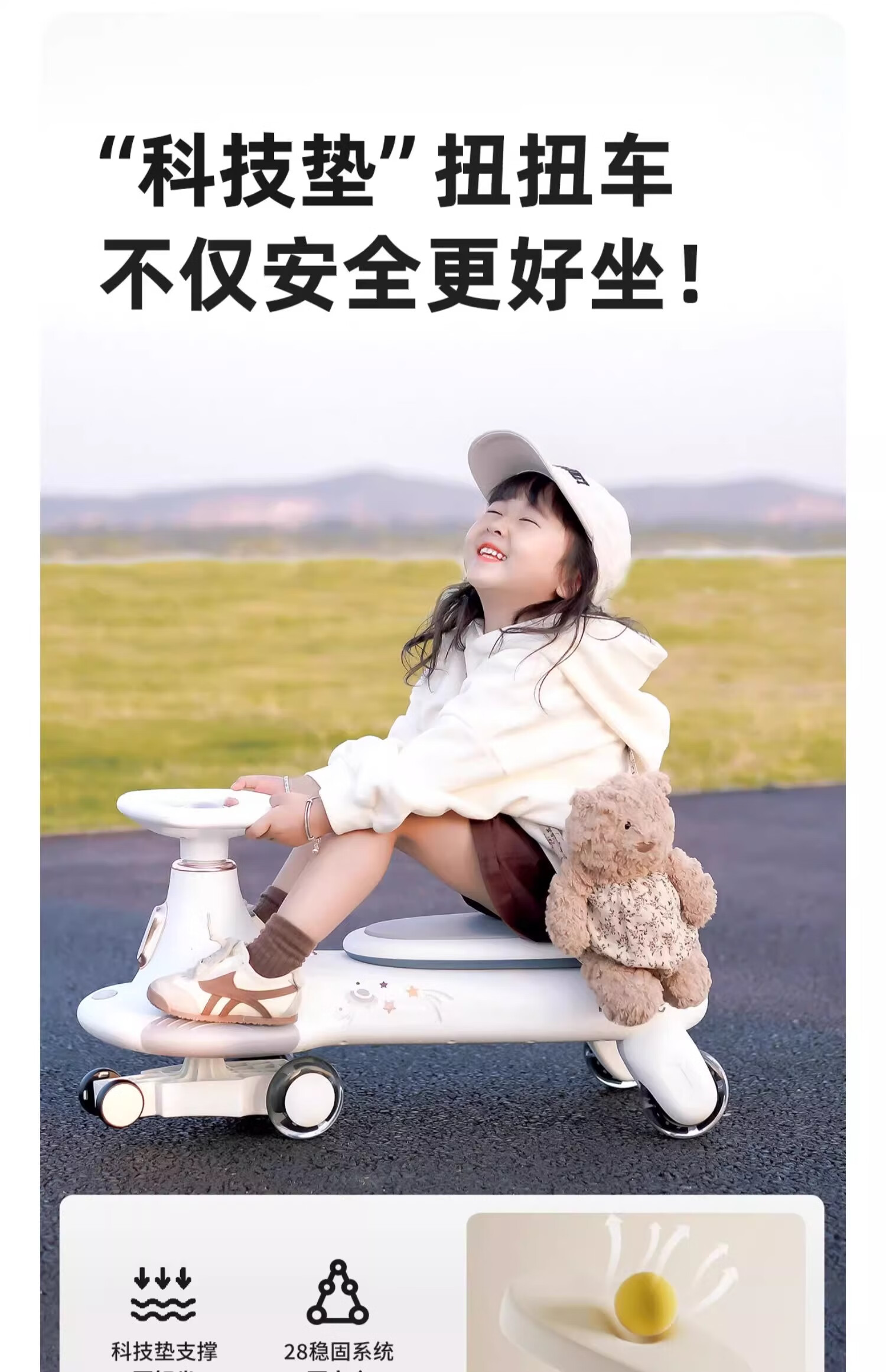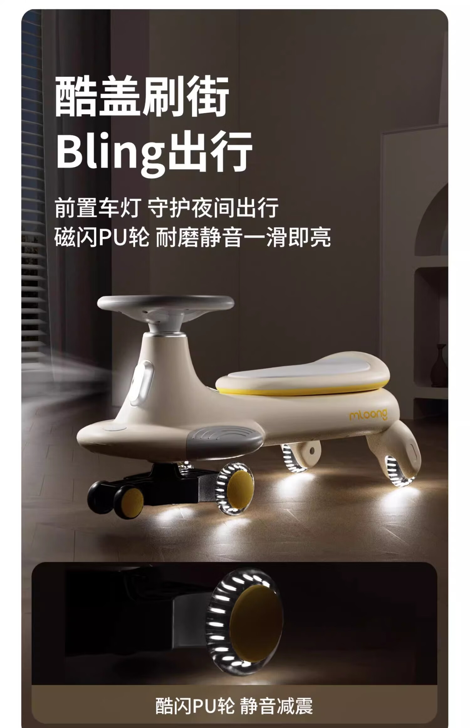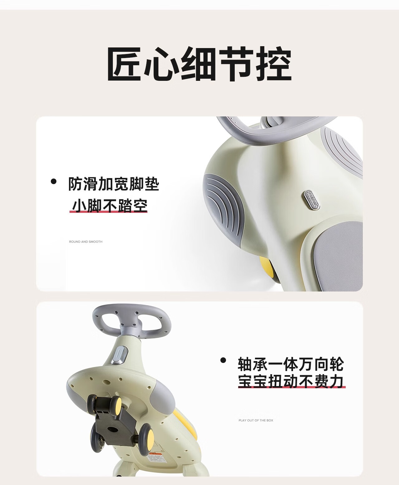 曼龙扭扭车1-3-6岁防侧翻大人可坐儿童溜溜车音乐摇摇车 莫奈灰