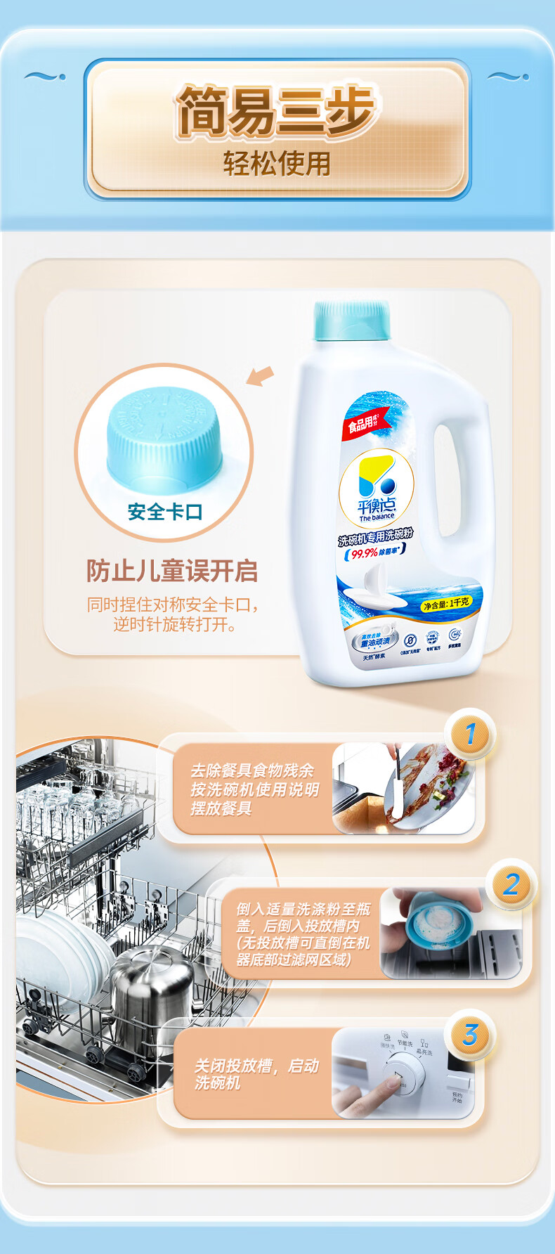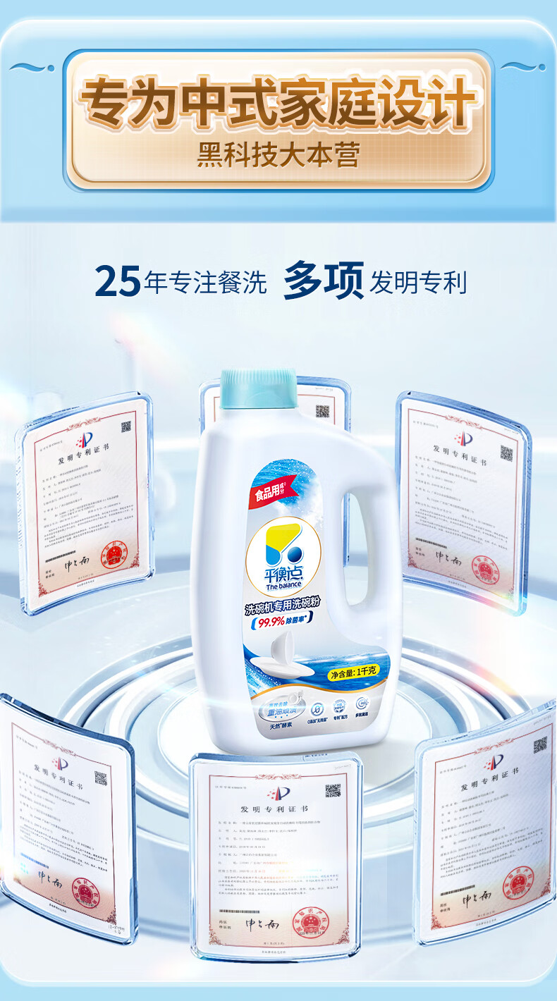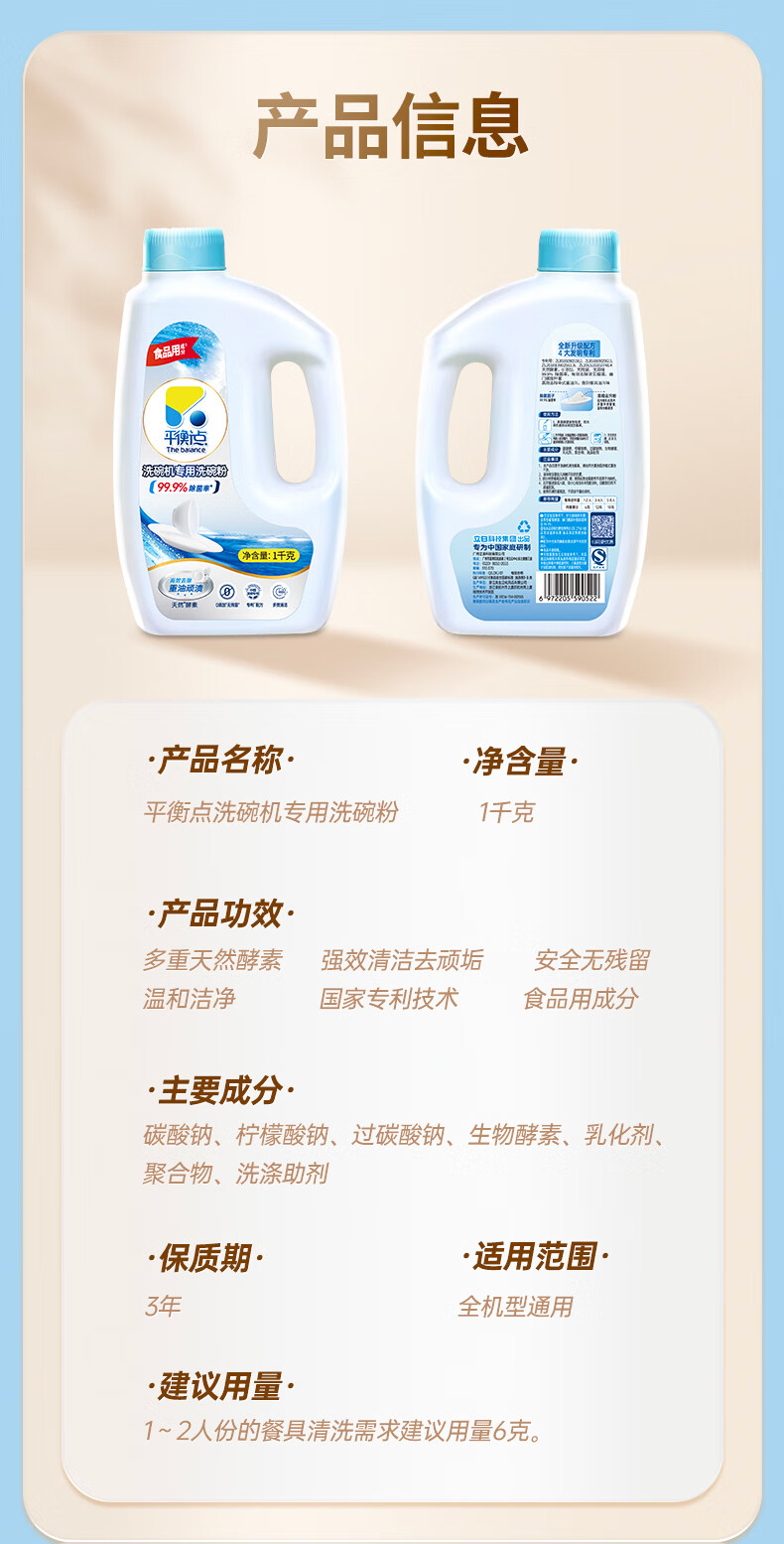平衡点洗碗粉1kg 洗碗机洗涤剂专用耗材洗碗块洗碗盐光亮碗碟清洁剂
