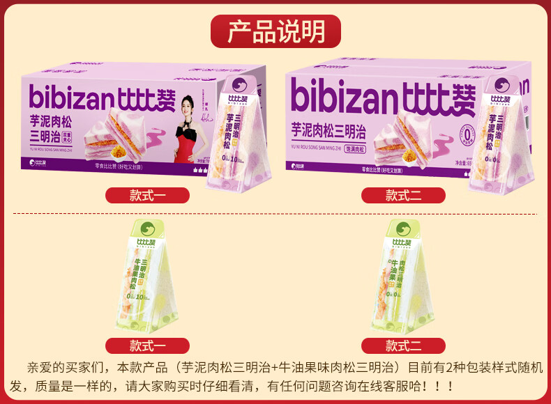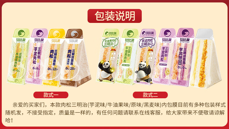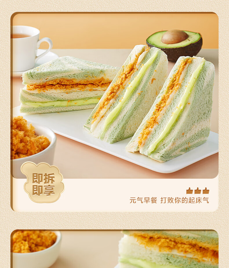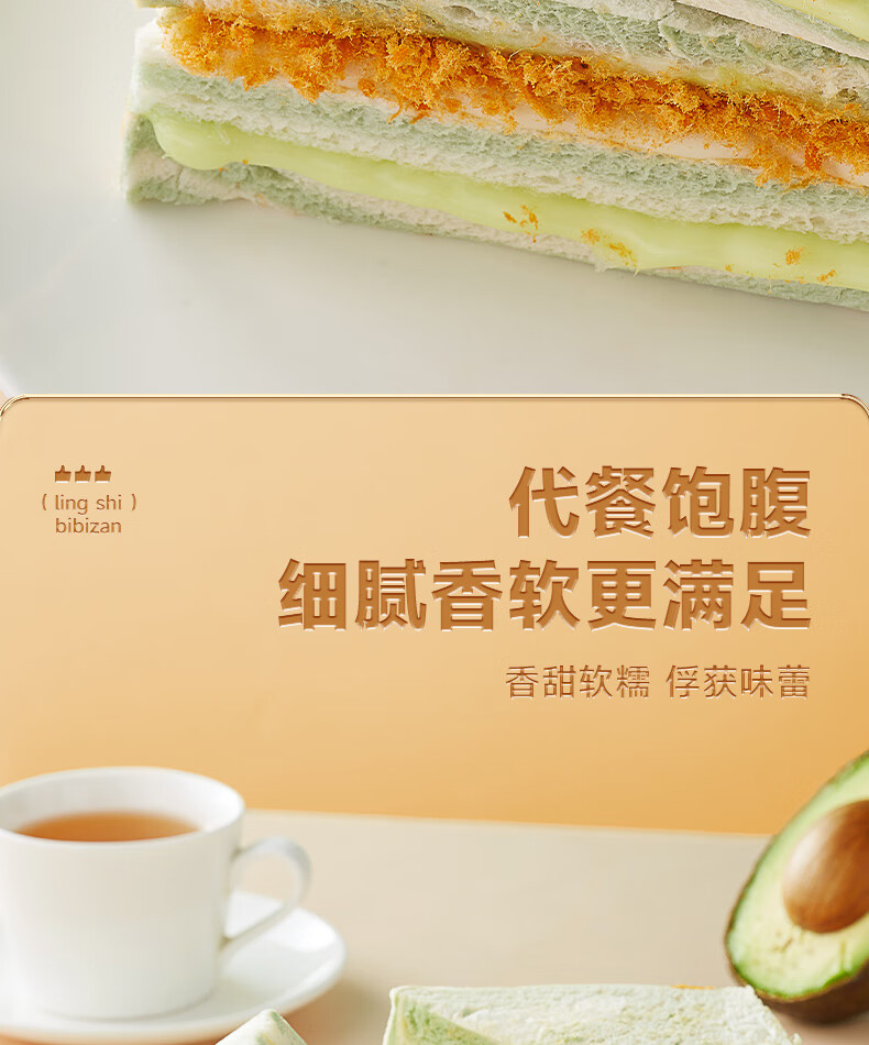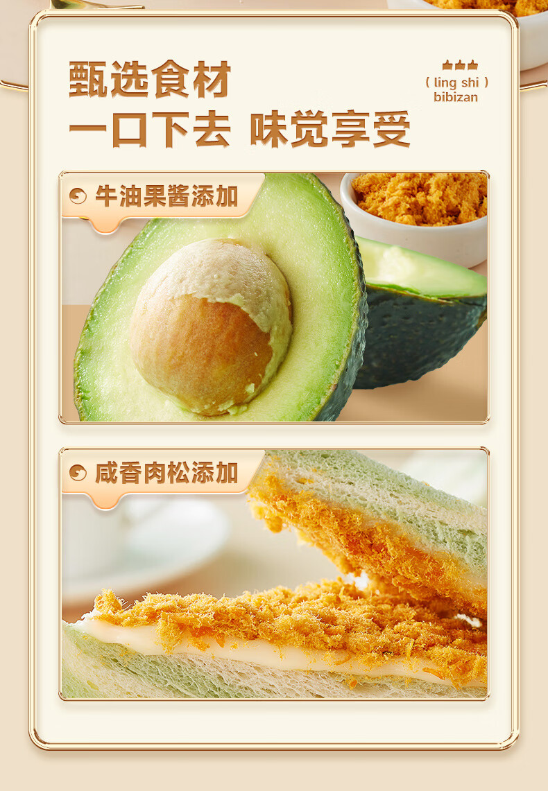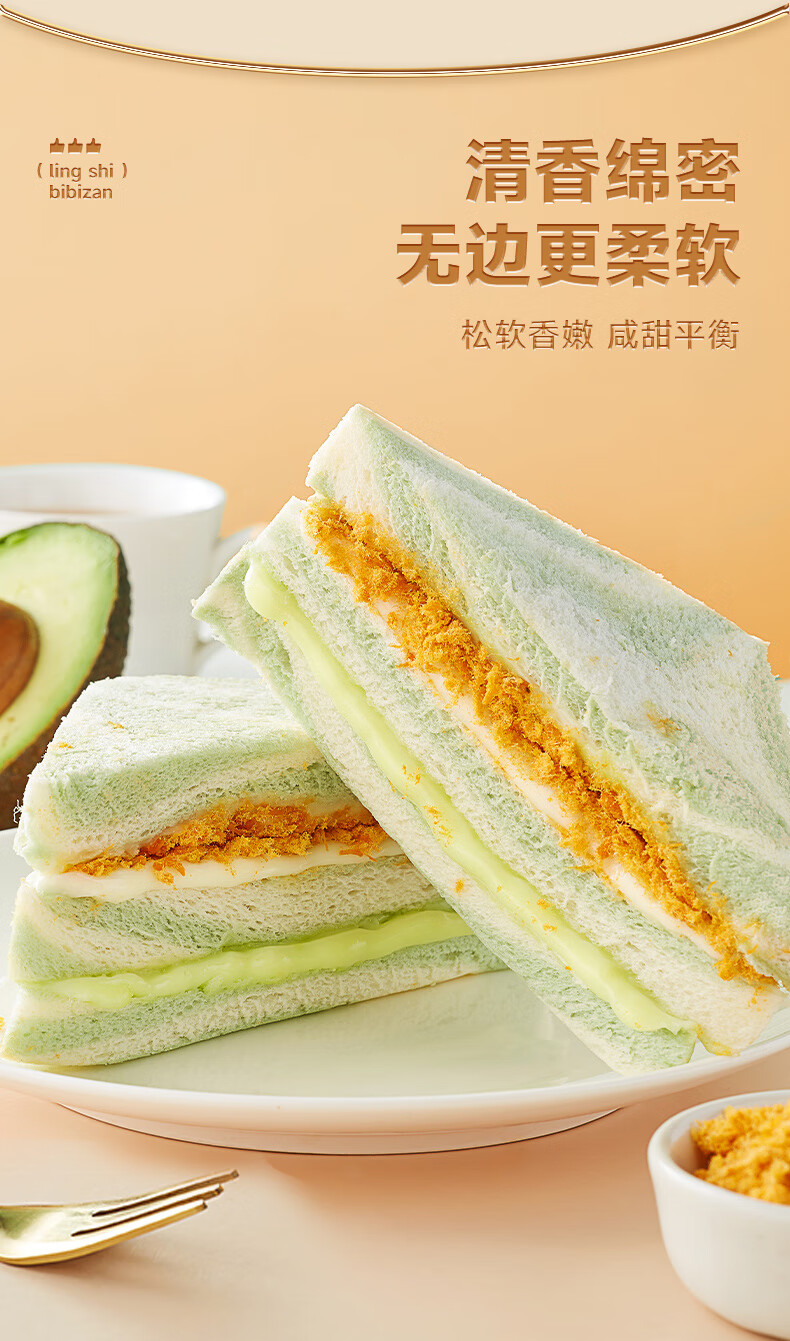 比比赞(BIBIZAN)牛油果肉松三明治650g早餐手撕面包吐司饼干夹心糕点心休闲零食品