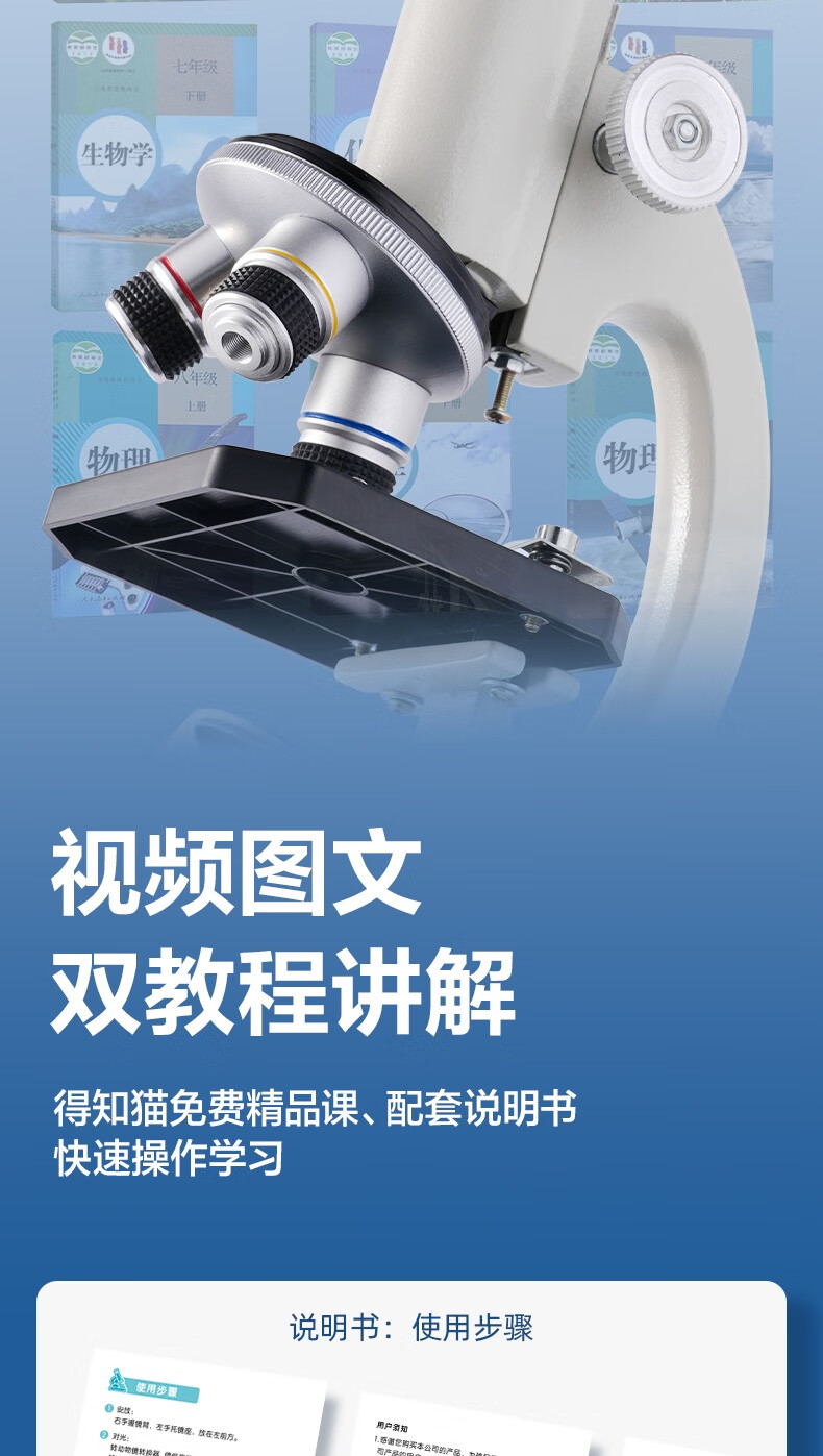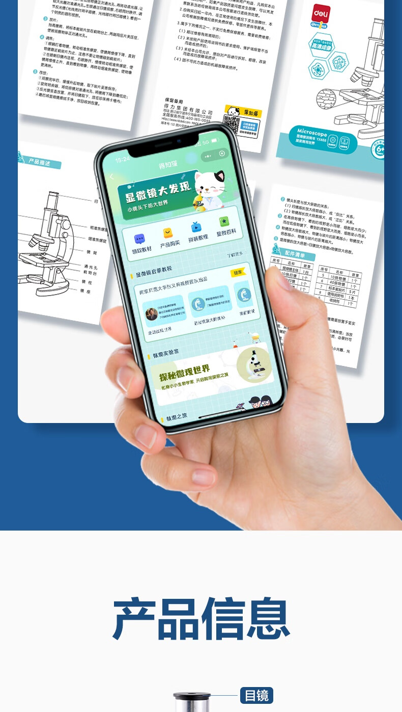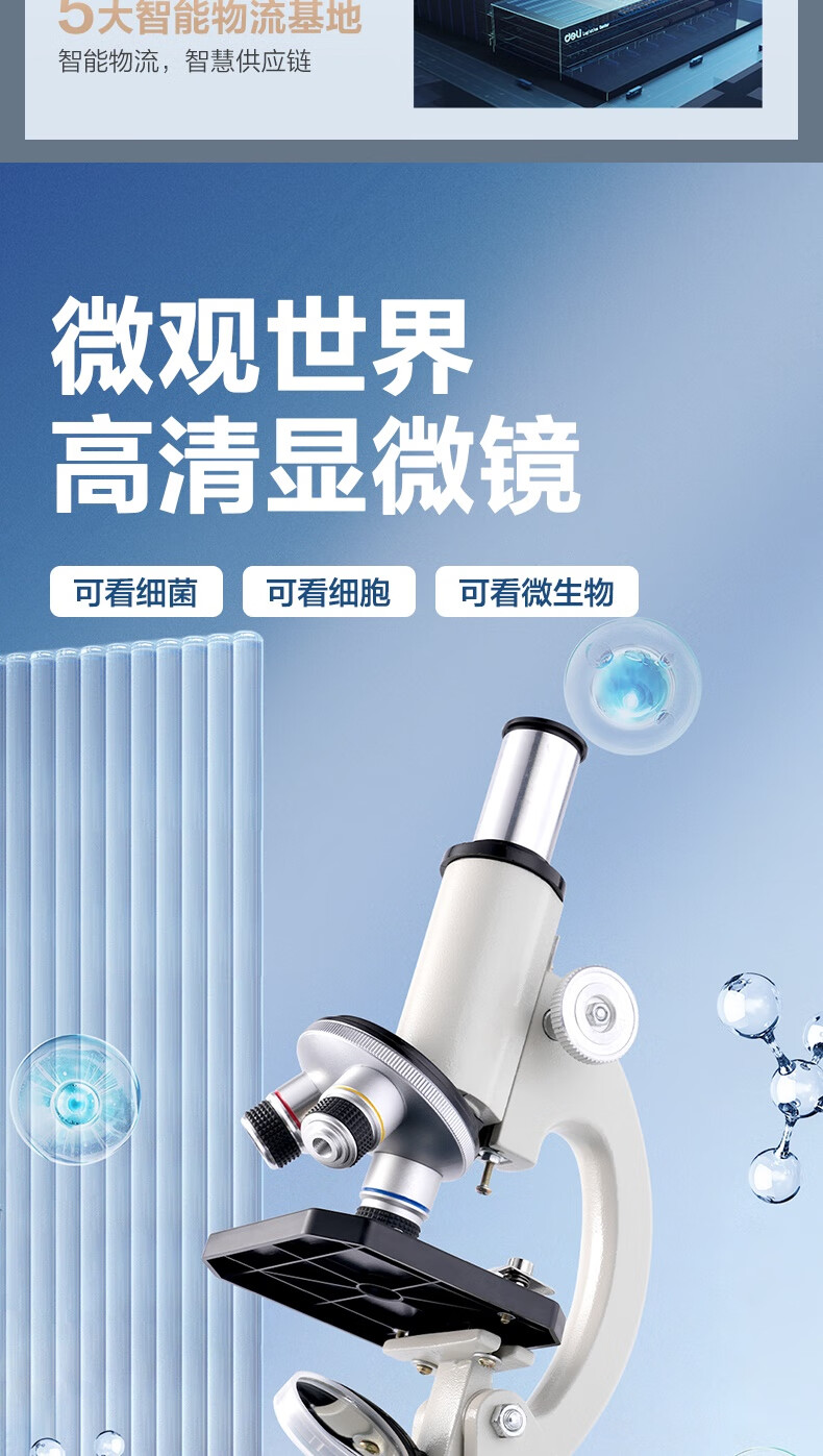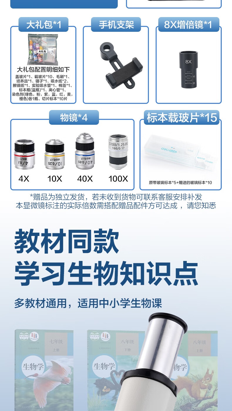 得力(deli)40000X生物光学显微镜初中生科学实验教材同步台式专业版看细胞手持高倍手机便携细菌生日新年礼物