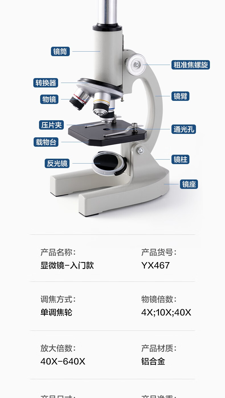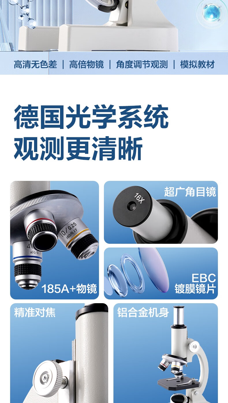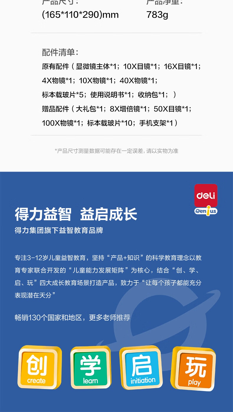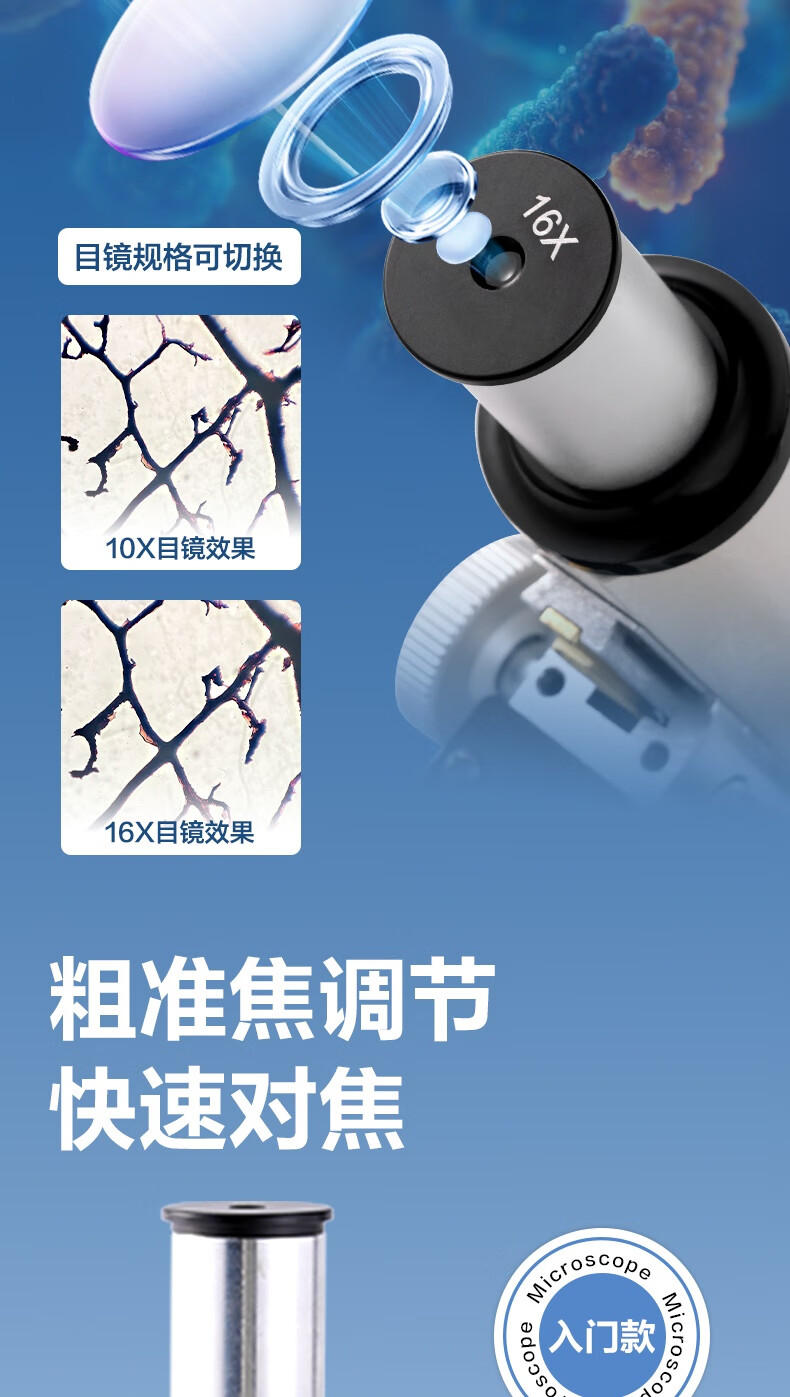 得力(deli)40000X生物光学显微镜初中生科学实验教材同步台式专业版看细胞手持高倍手机便携细菌生日新年礼物