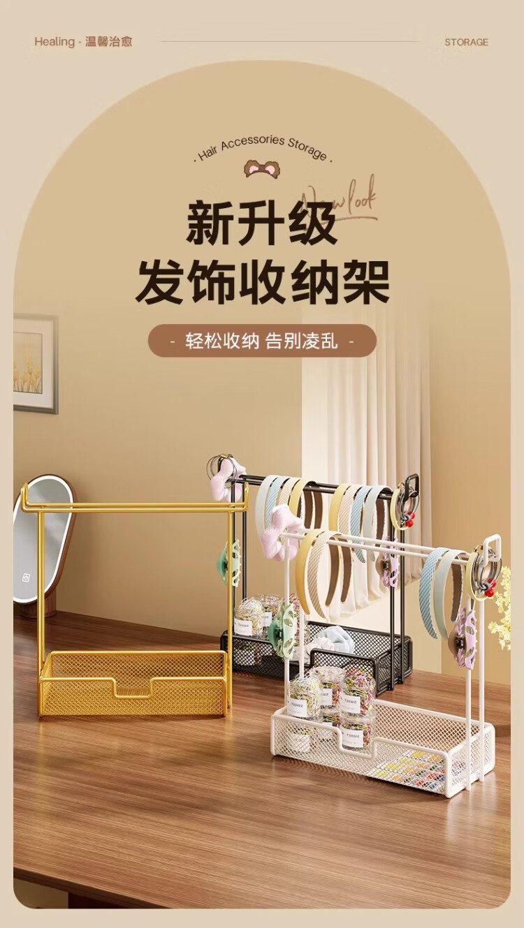 尔思家发饰收纳盒发圈文玩手串展示置物架耳环首饰架项链挂架钥匙扣挂架 白色-带钩款
