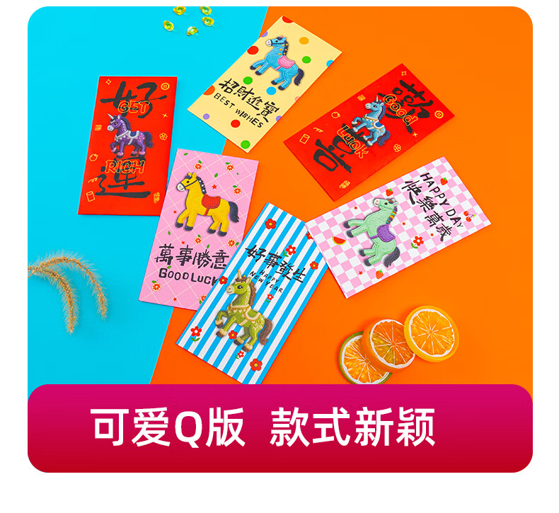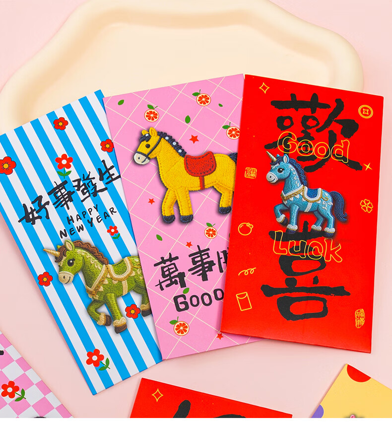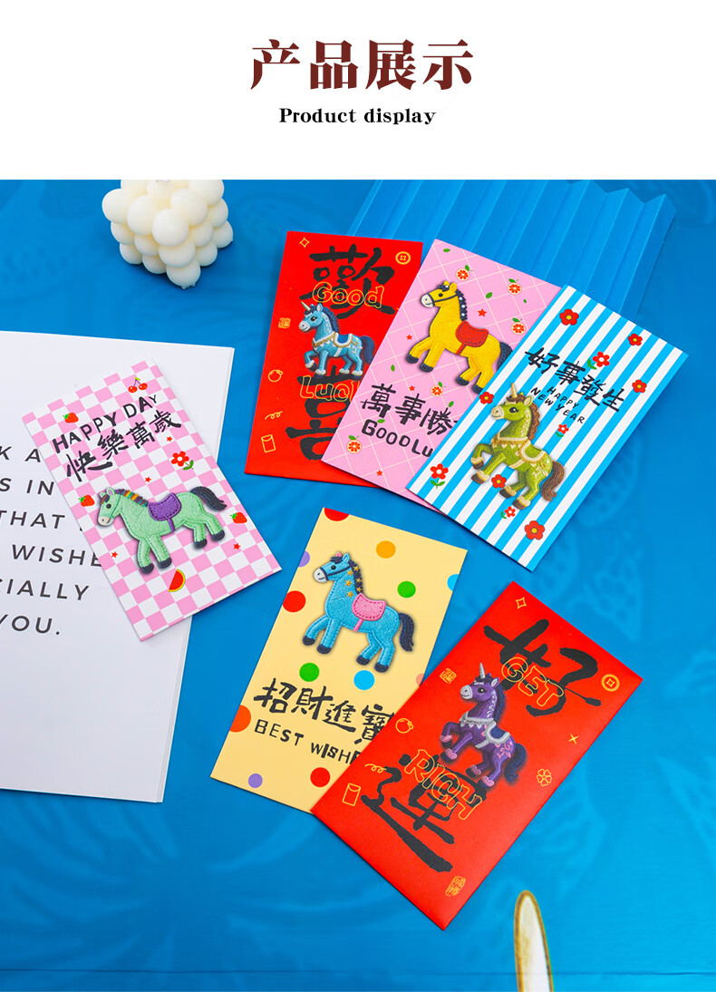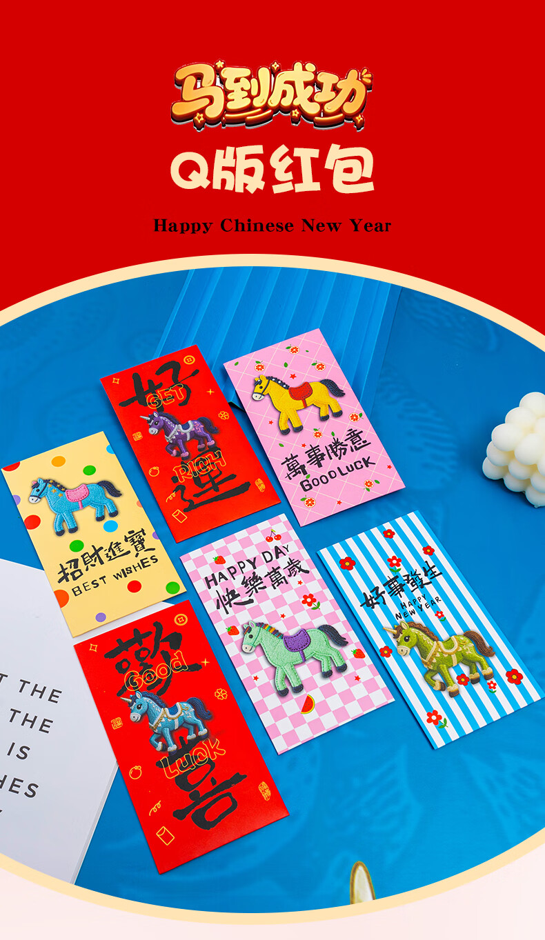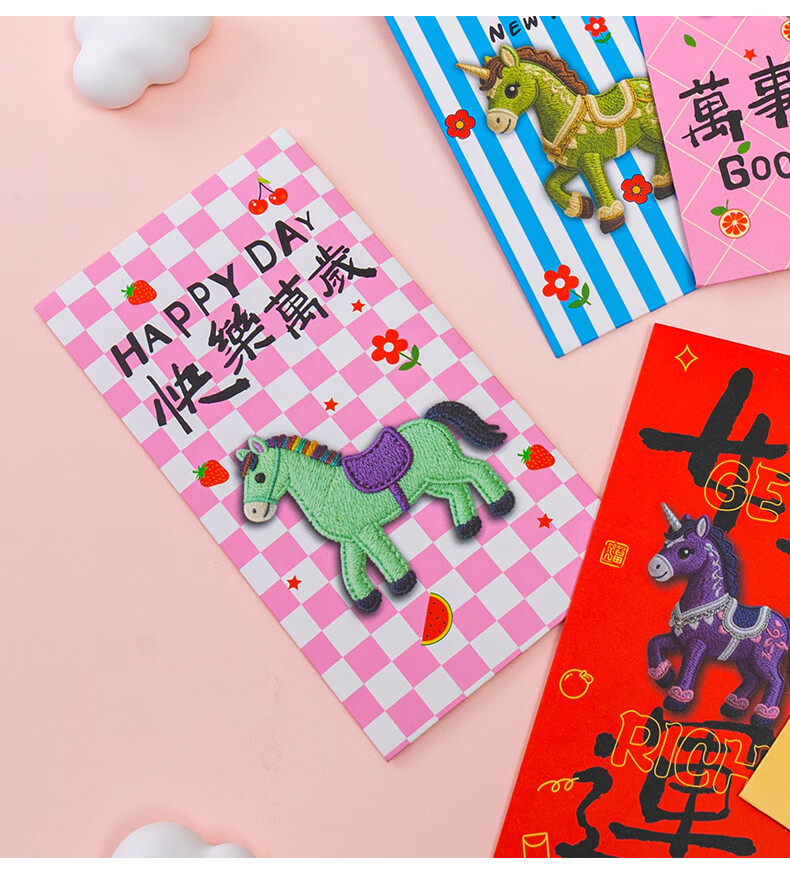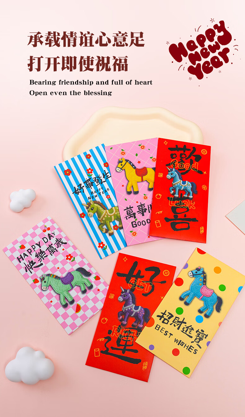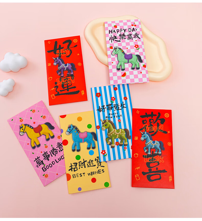 2026年马年新款卡通马年3D平面仿刺绣款结婚跨年生日专用红包春节 红包E款【吉祥如意】1包6个