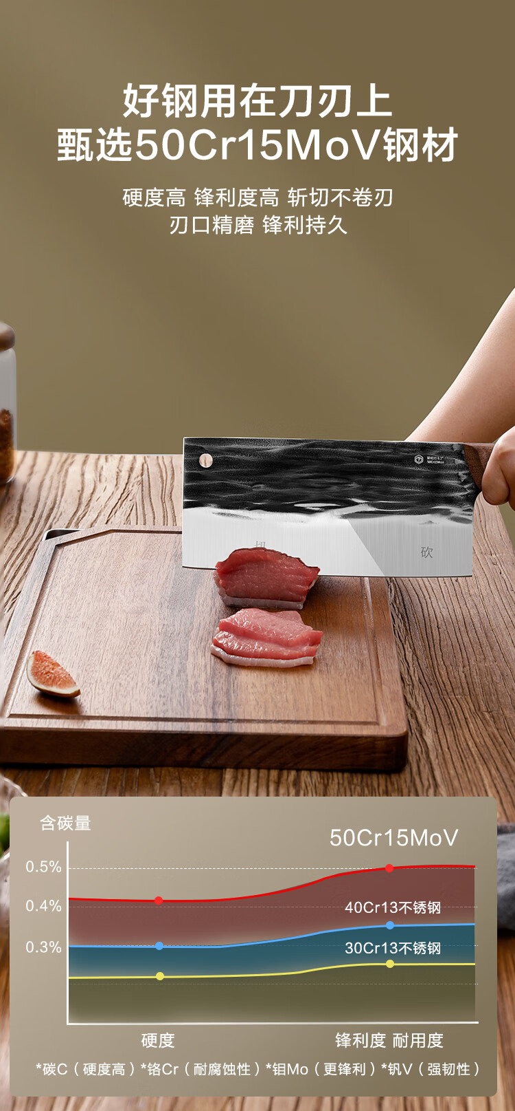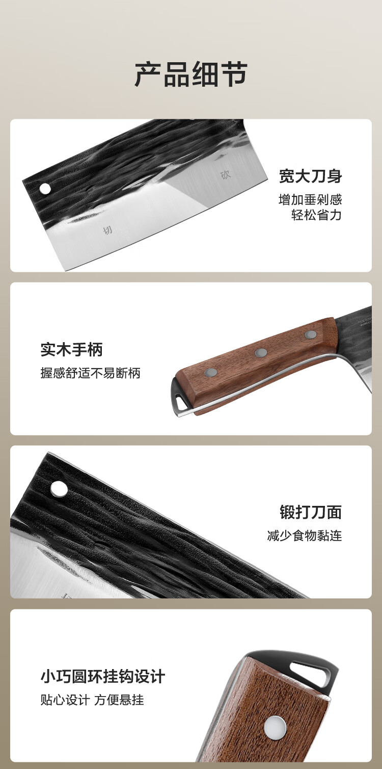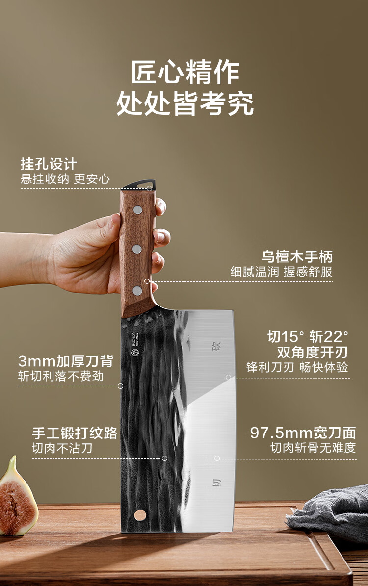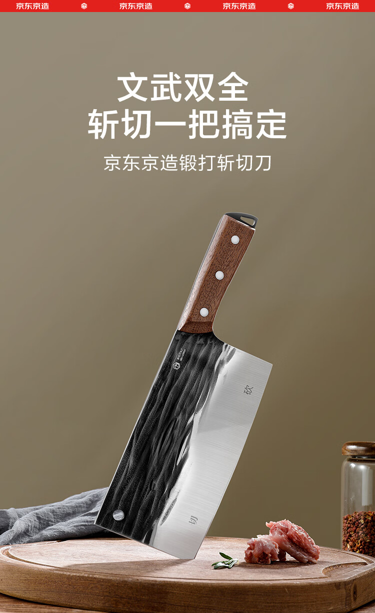 京东京造 5系菜刀 刀具家用斩砍骨厨师专用锻打锤纹【斩切两用】