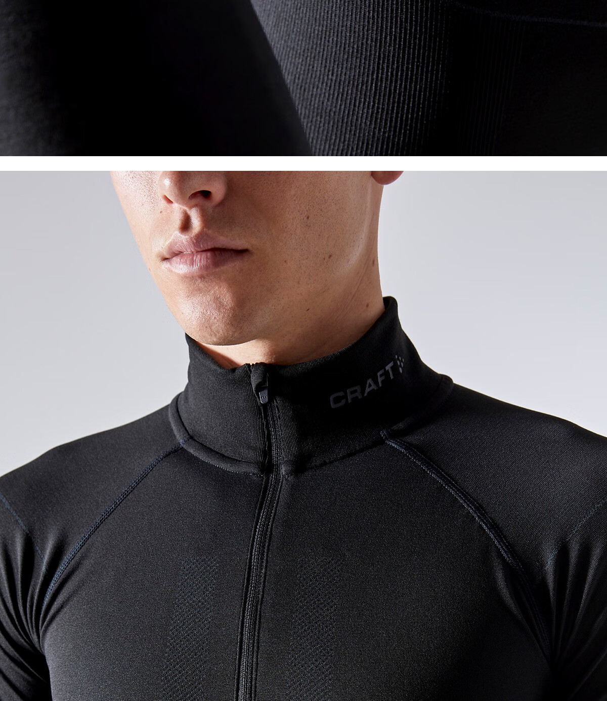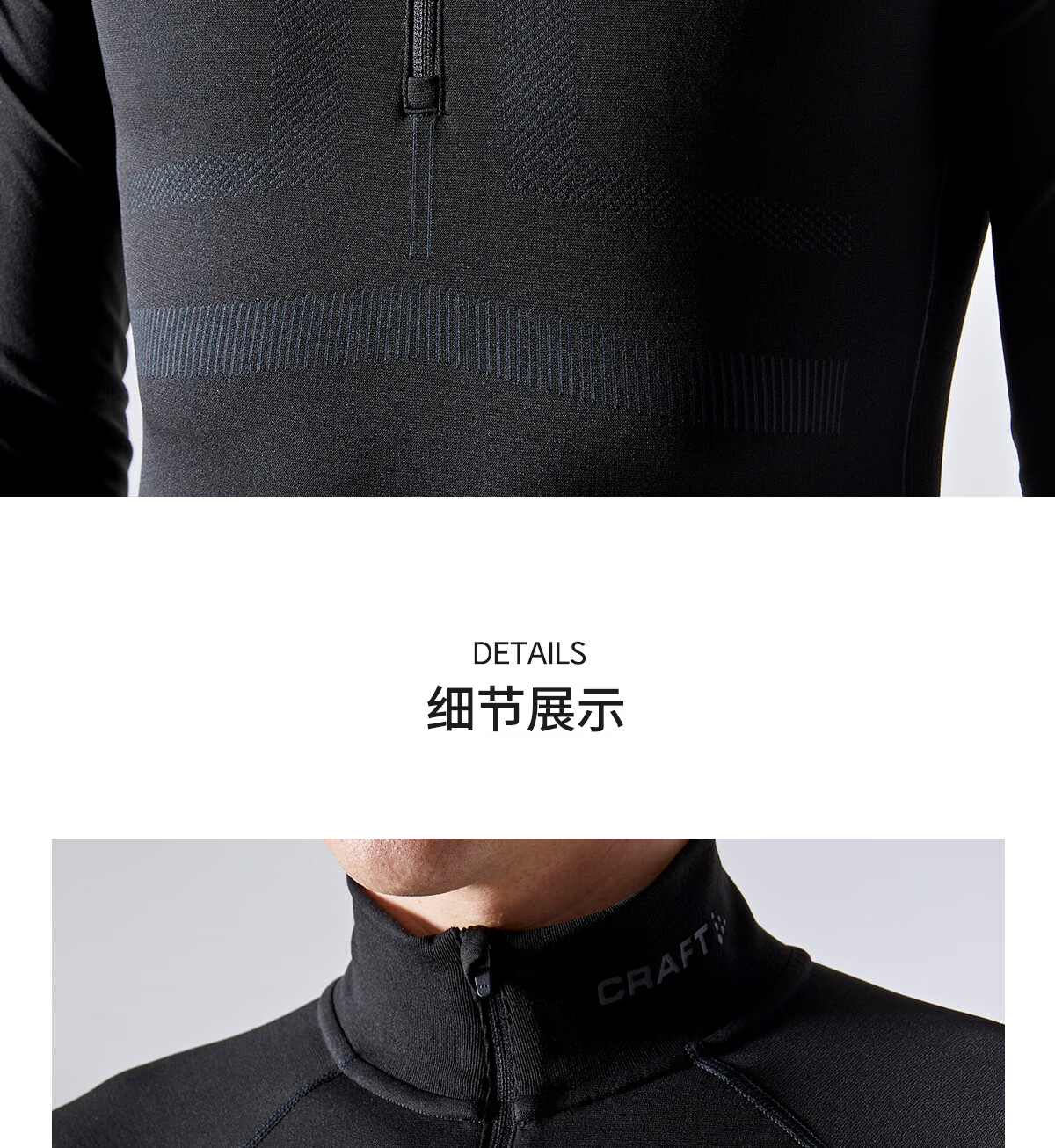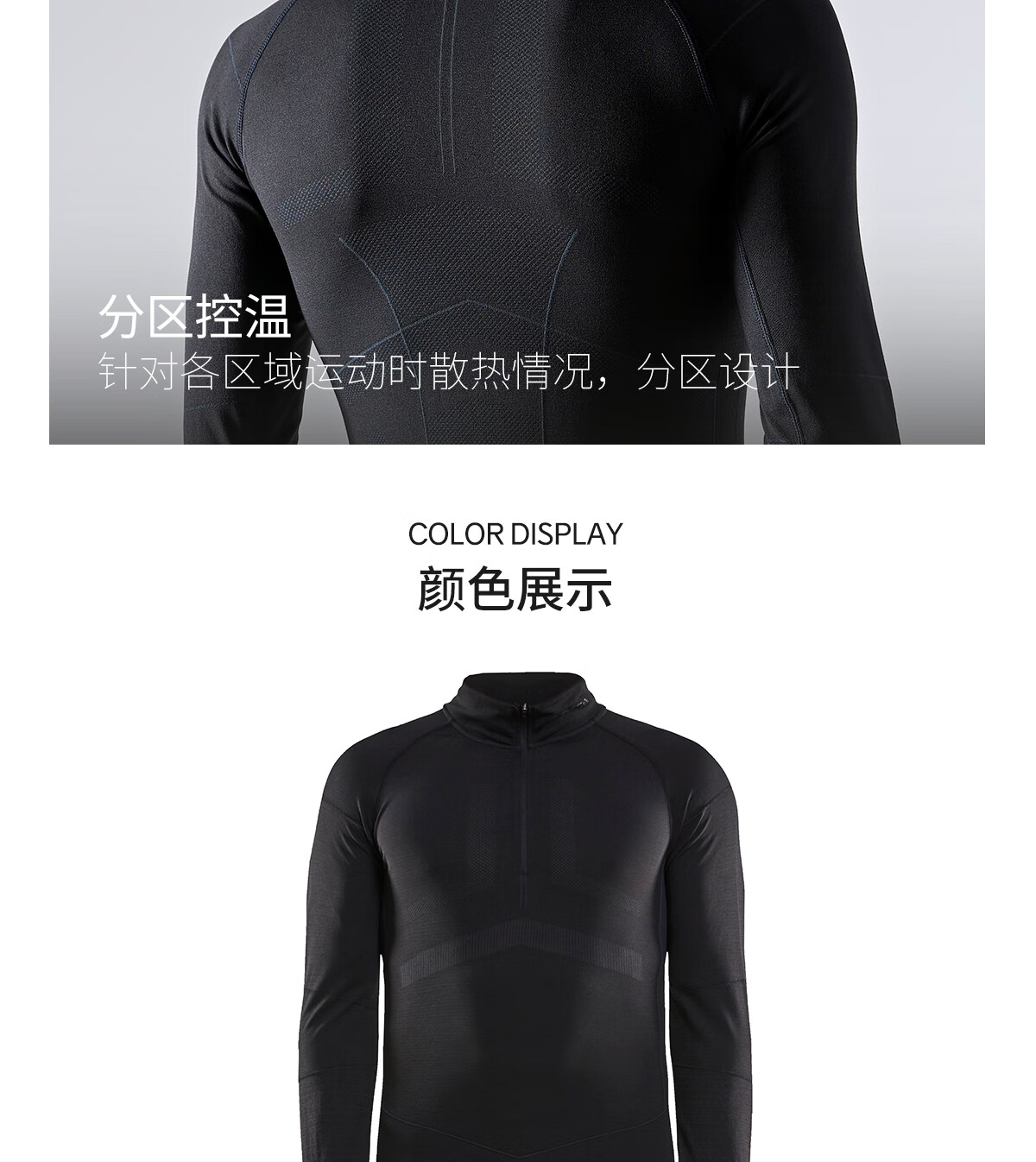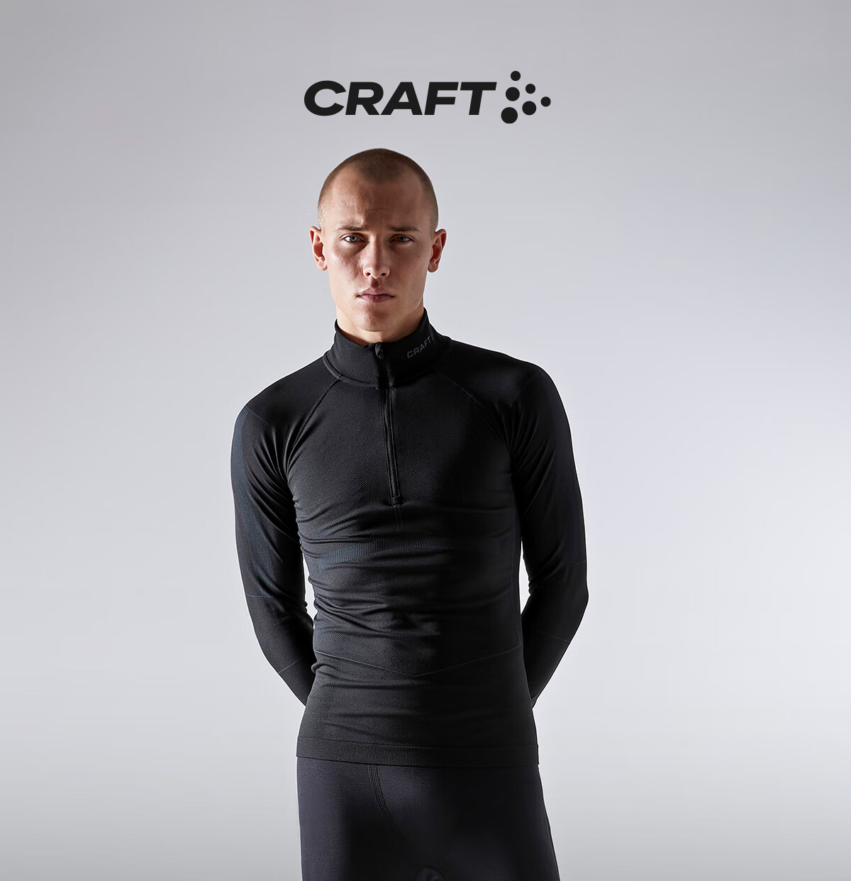 CRAFT绿标运动户外滑雪跑步骑行透气速干弹力高领拉链长袖T恤打底衫男 黑色 S