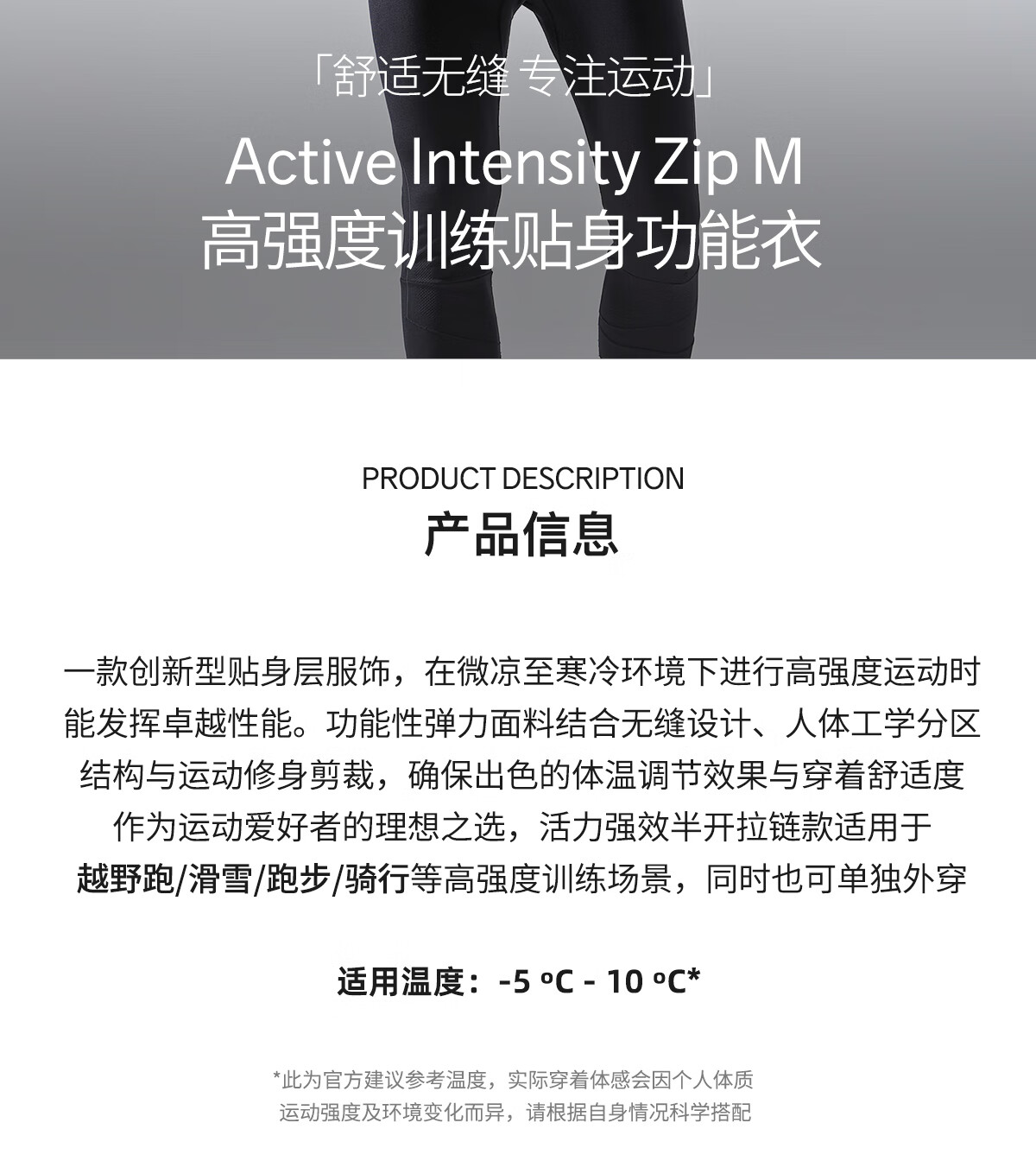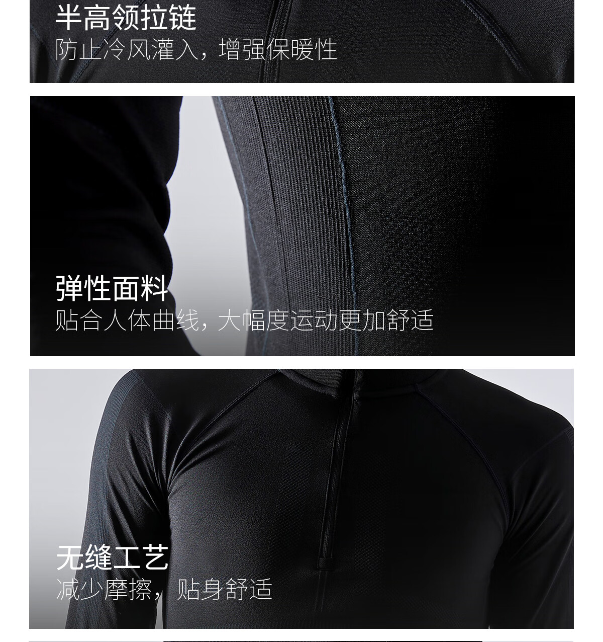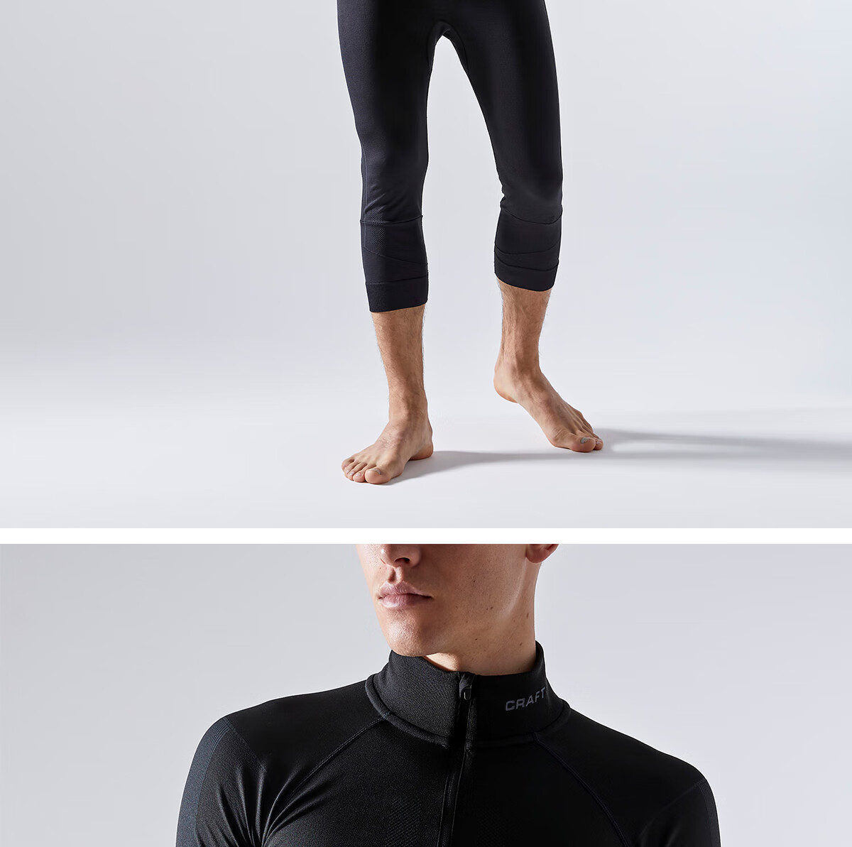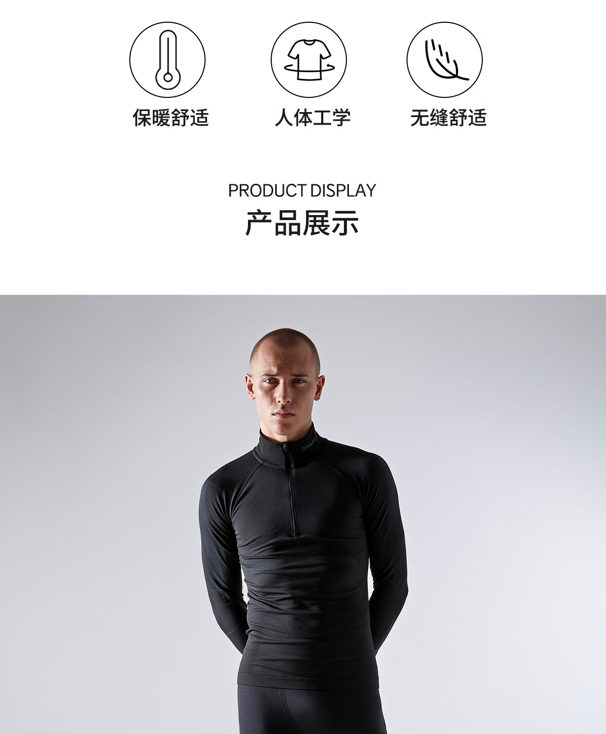 CRAFT绿标运动户外滑雪跑步骑行透气速干弹力高领拉链长袖T恤打底衫男 黑色 S
