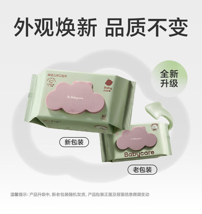 babycare婴儿湿巾bbc紫盖湿纸巾宝宝手口湿巾新生儿专用湿巾纸带盖 【便携装】 20抽 20包