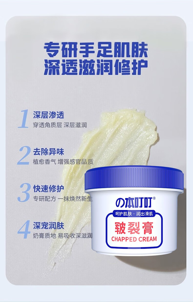 本叮叮保湿皲裂膏手足防干裂膏脚后跟干裂冻裂膏护足霜男女通用50g/瓶 【修护干裂】手足皲裂膏100g/2盒