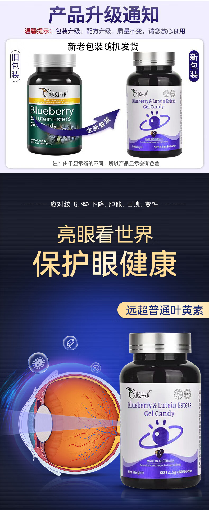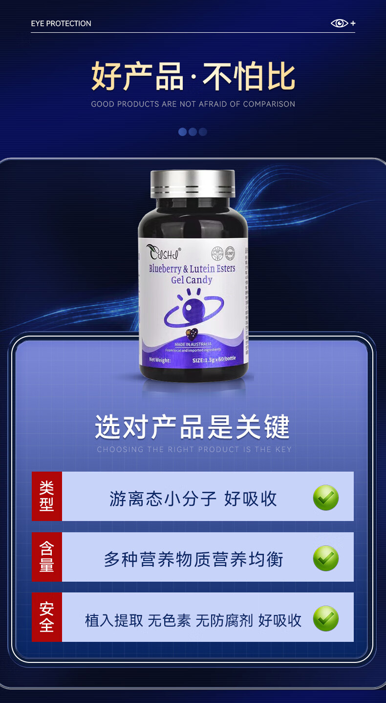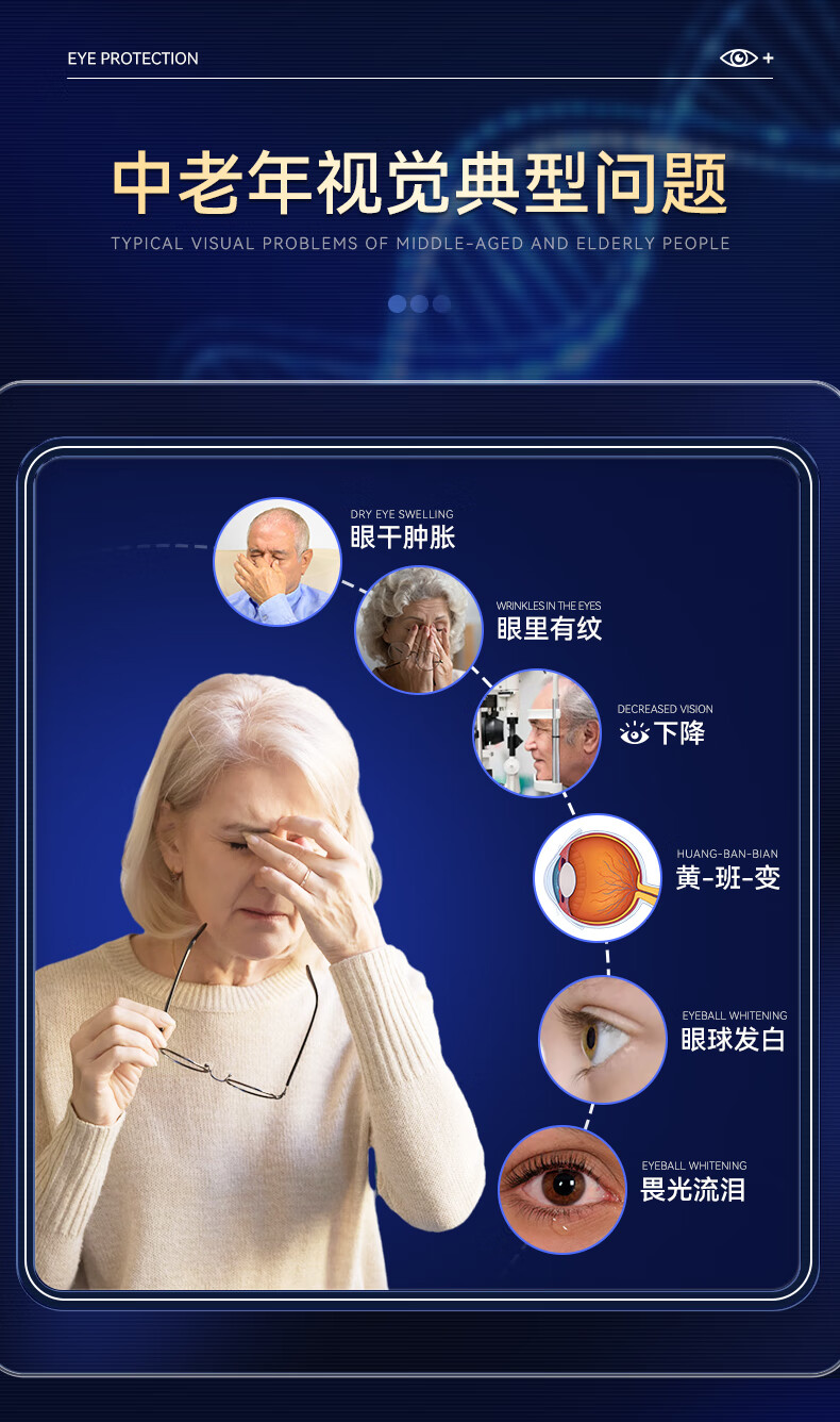 奈力士进口蓝莓叶黄素成人中老年专用老花搭视力模糊不清护眼片胡萝卜素 一瓶基础装【拍3发4瓶】