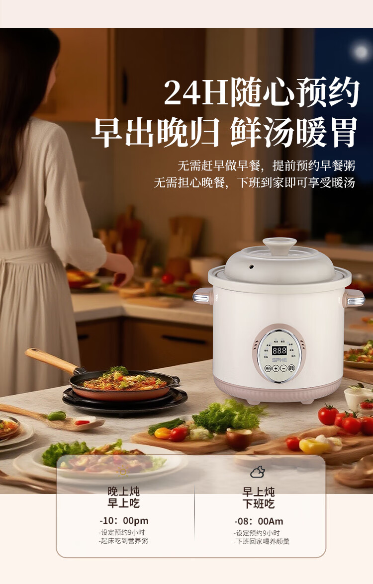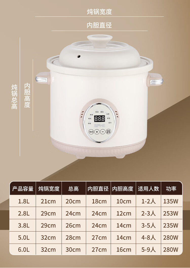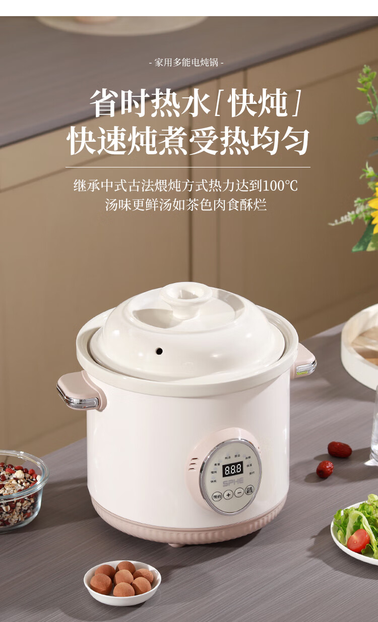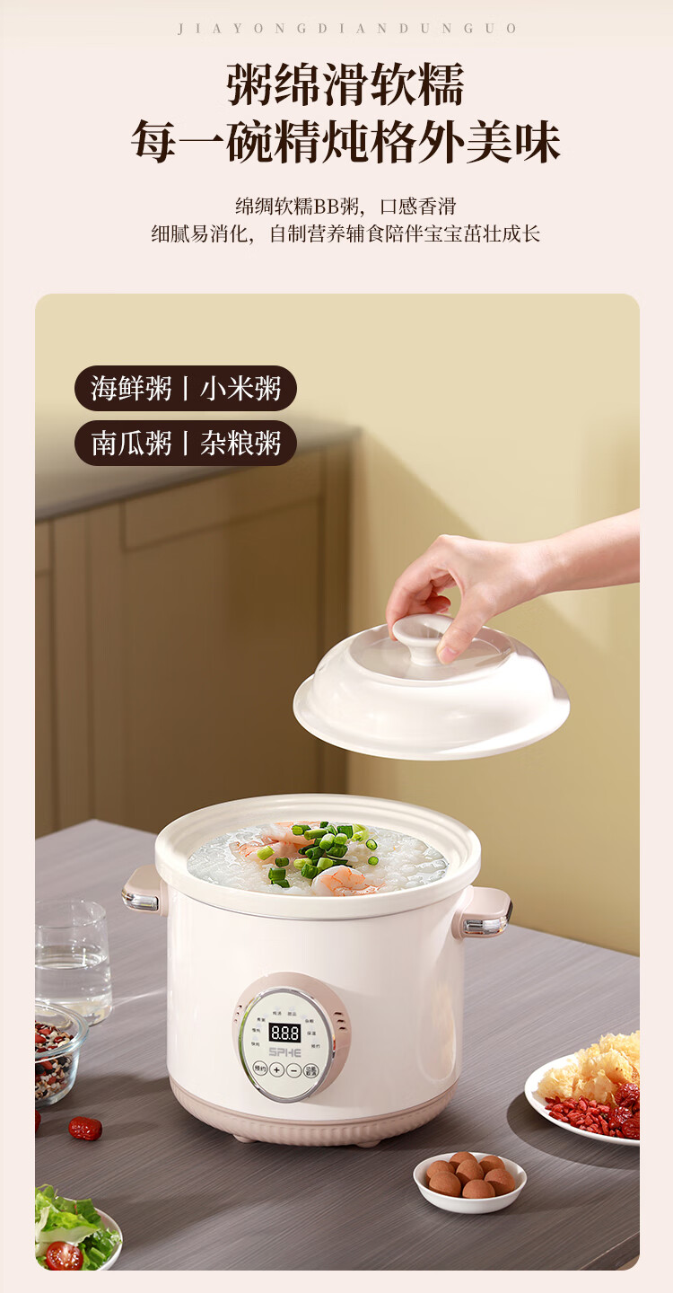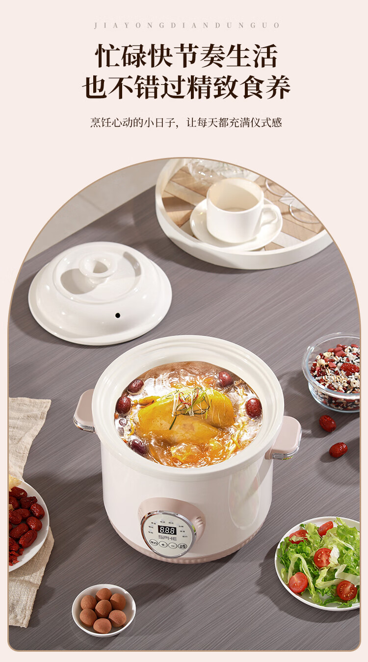 SPHE正品苏泊电炖锅家用全自动煲汤锅快炖BB煮粥神器白瓷煲粥锅电炖盅 6L 镀金白瓷预约款【自动保温】