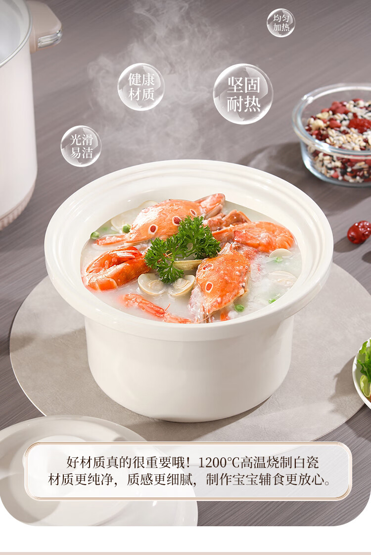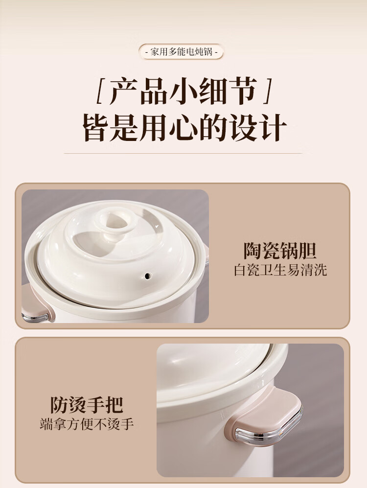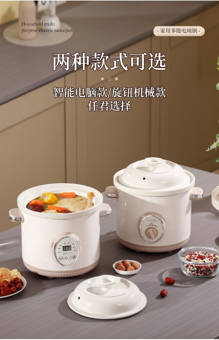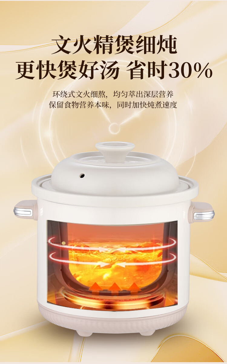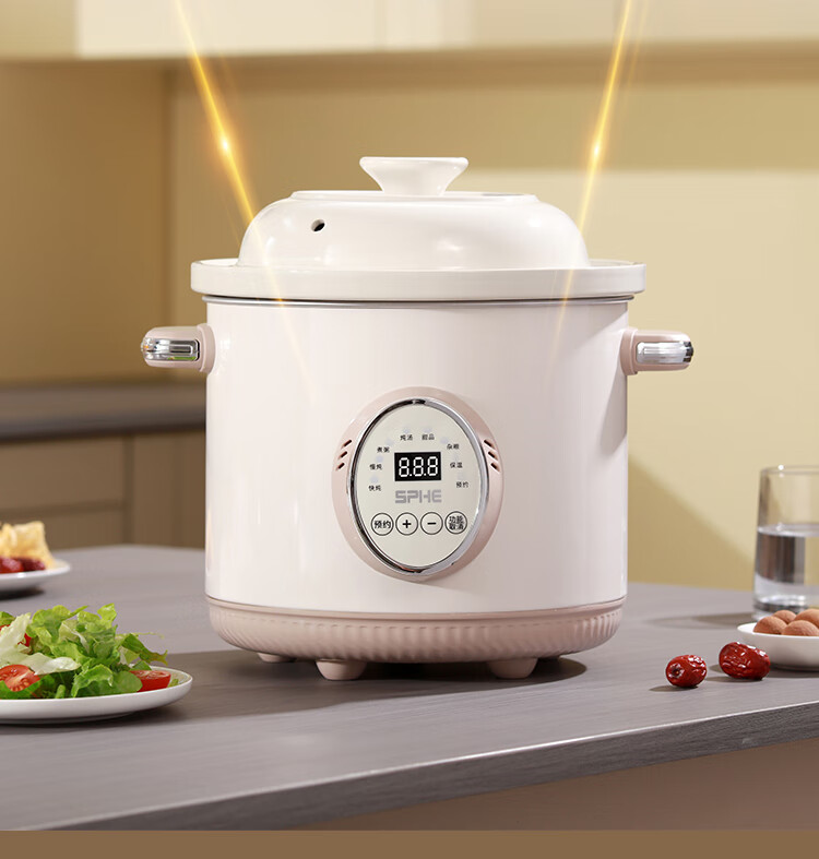 SPHE正品苏泊电炖锅家用全自动煲汤锅快炖BB煮粥神器白瓷煲粥锅电炖盅 6L 镀金白瓷预约款【自动保温】