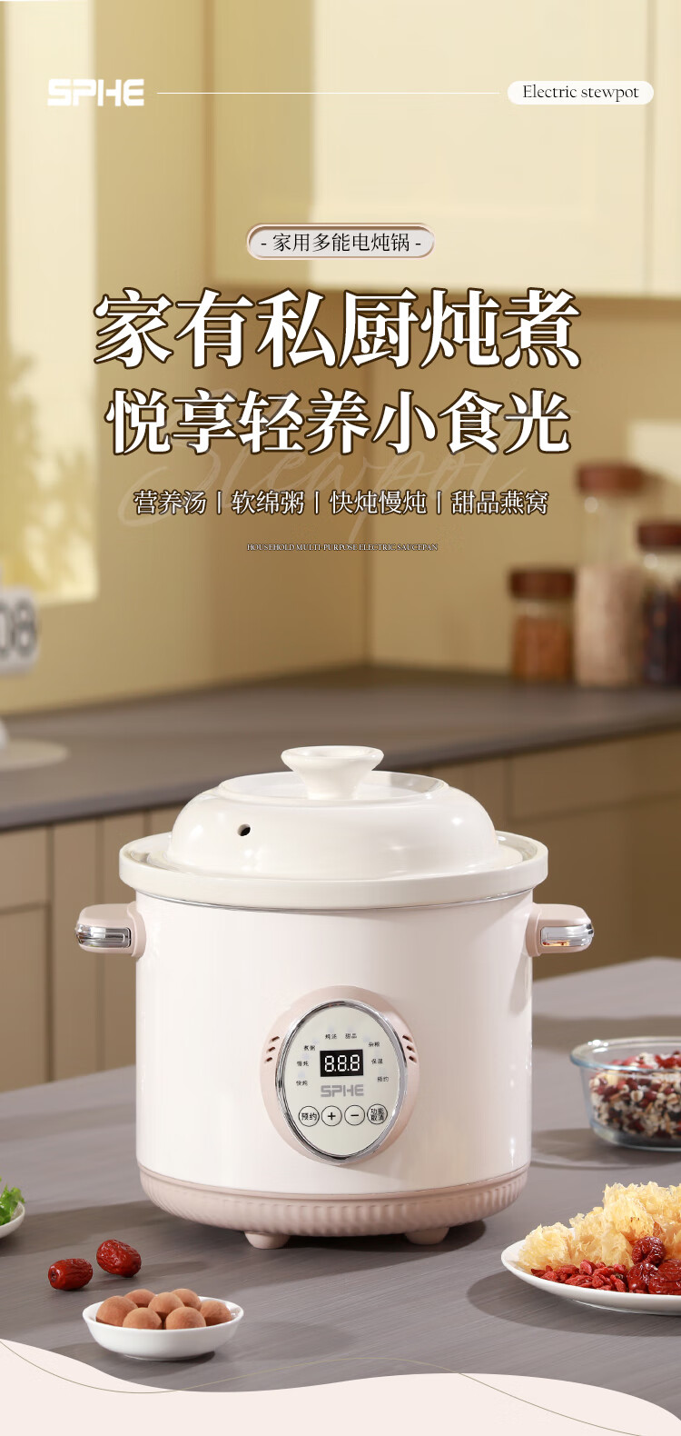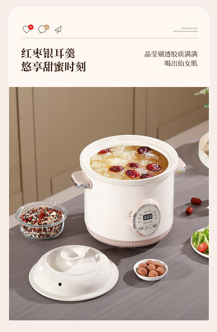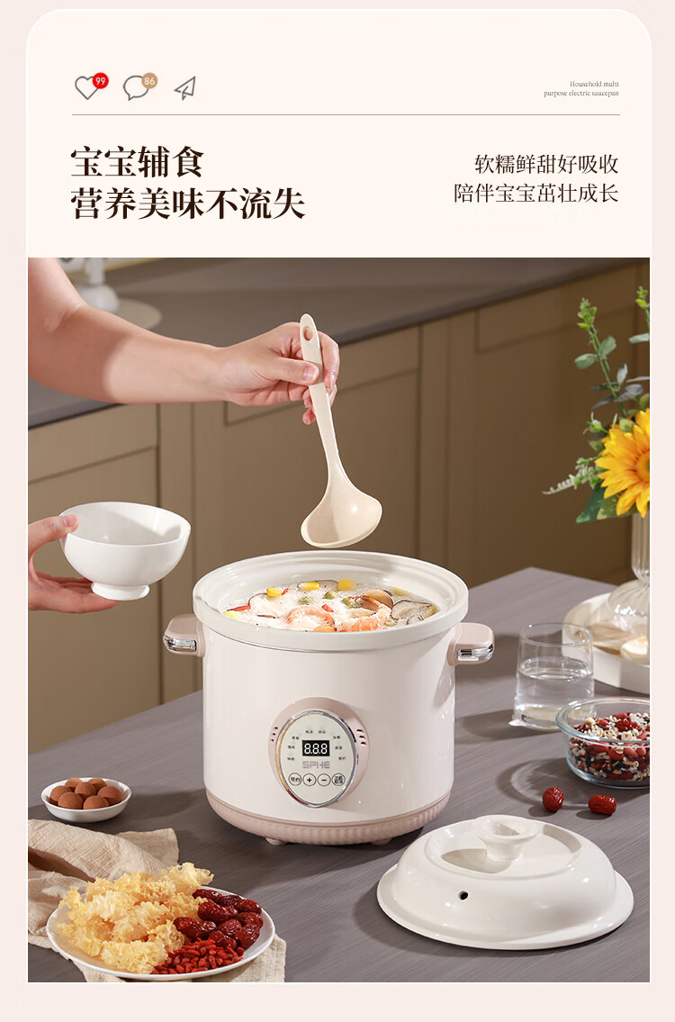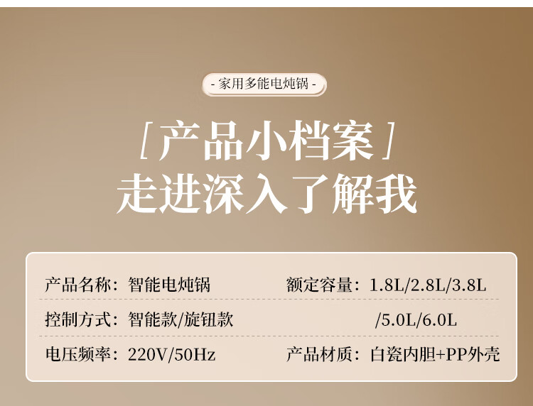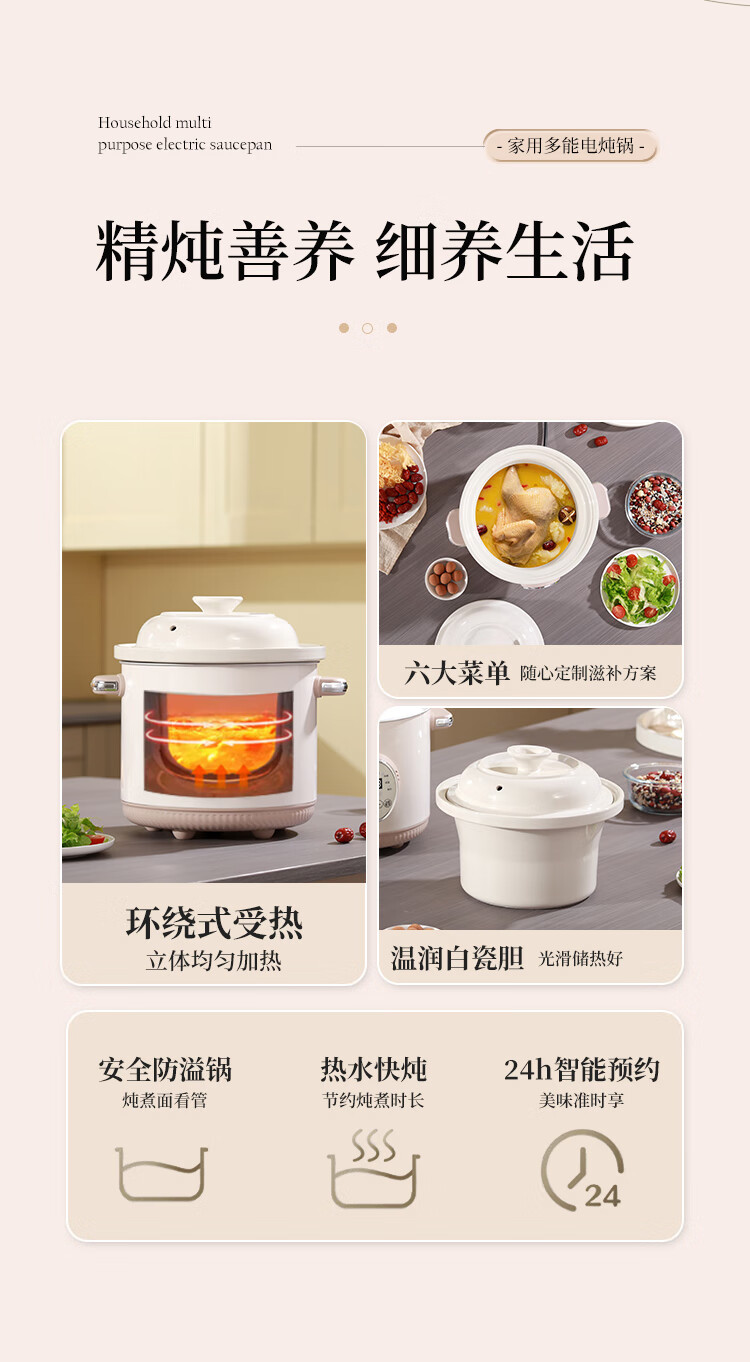 SPHE正品苏泊电炖锅家用全自动煲汤锅快炖BB煮粥神器白瓷煲粥锅电炖盅 6L 镀金白瓷预约款【自动保温】
