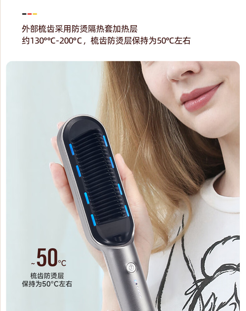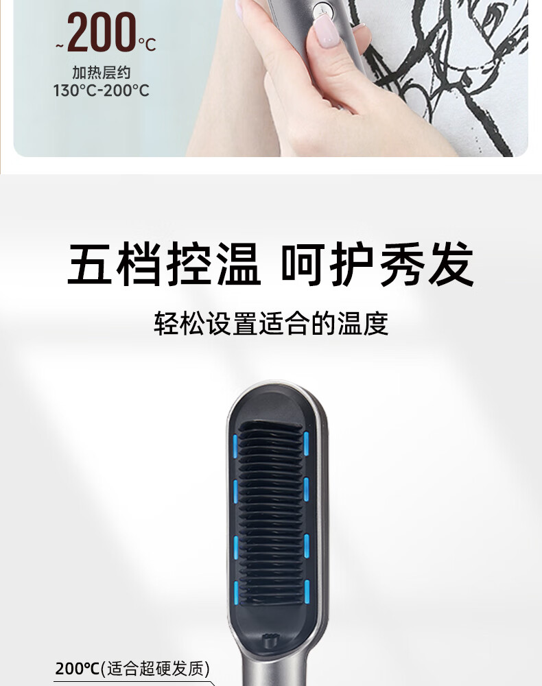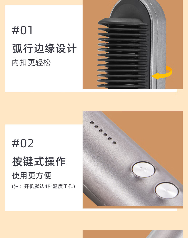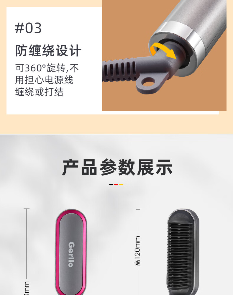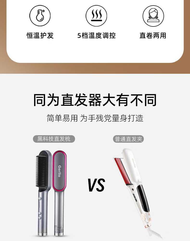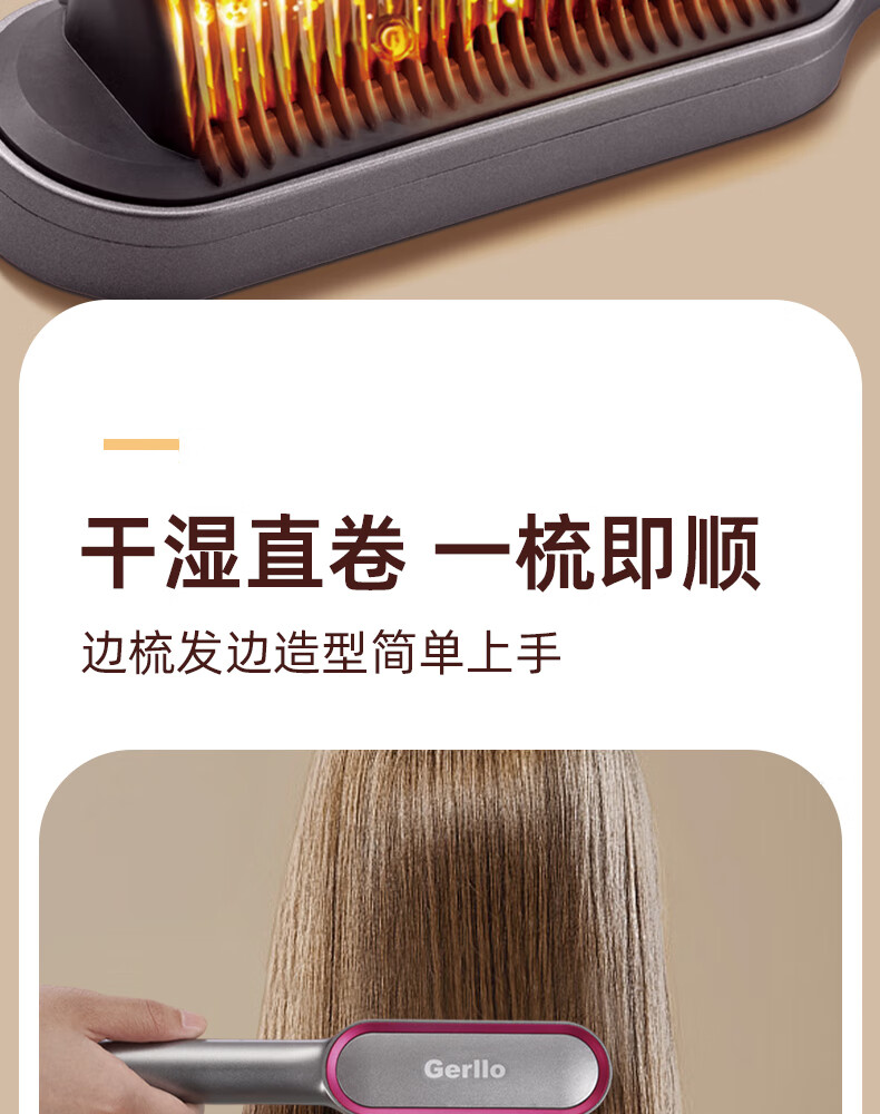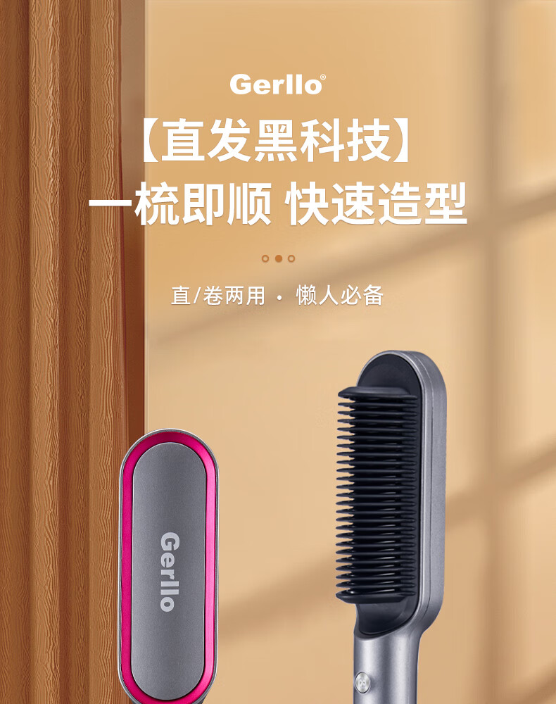 Gerllo直发梳内扣短头发蓬松神器造型梳子卷发棒两用不伤发懒人直发梳新年元旦礼物 KR-Z05灰色 120mm