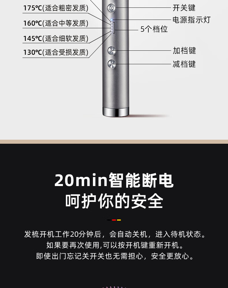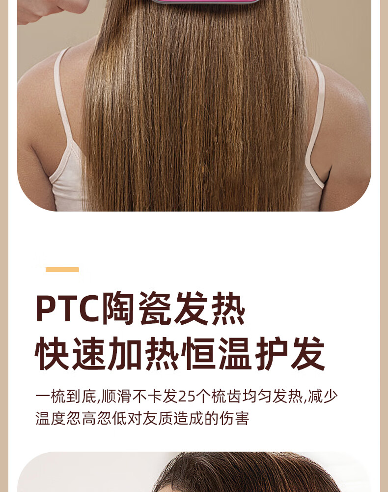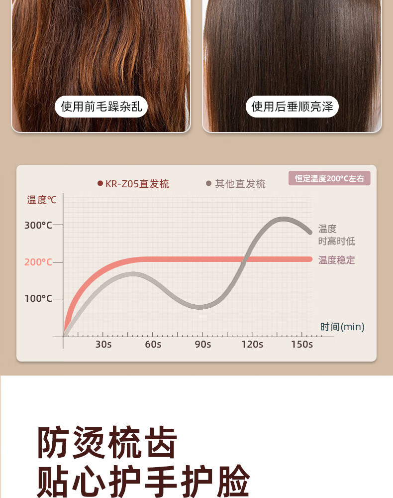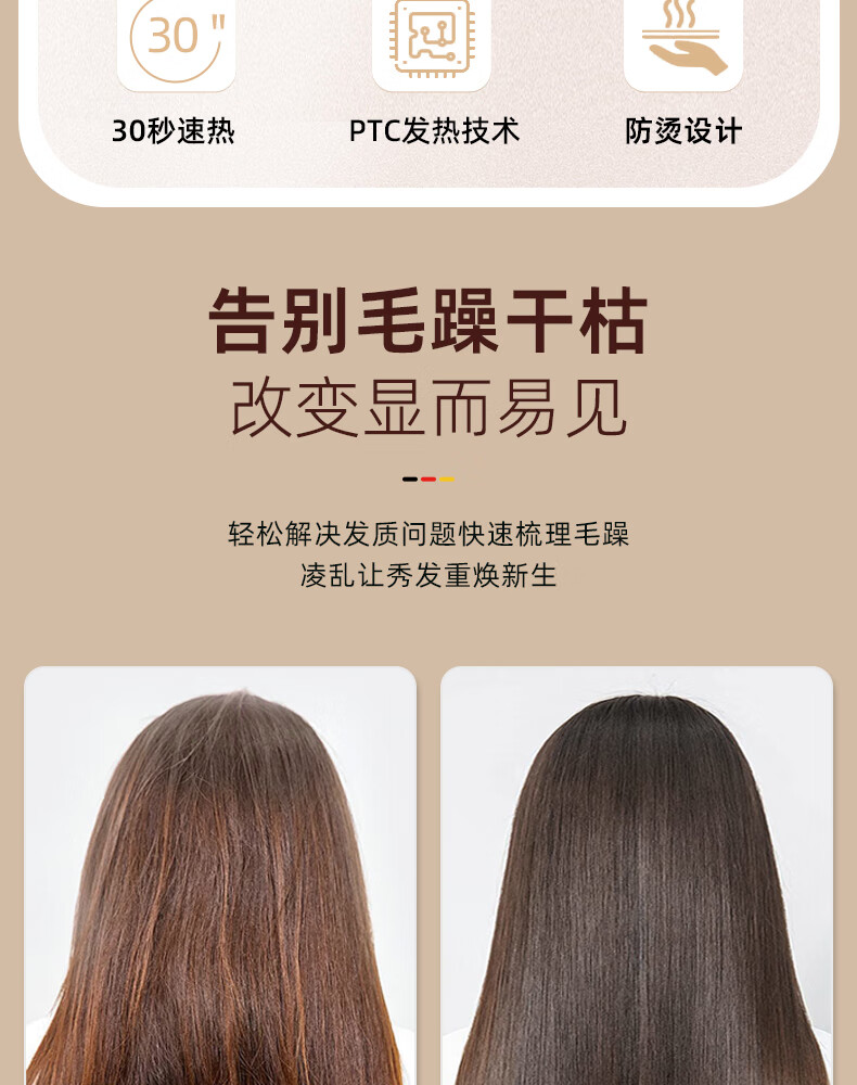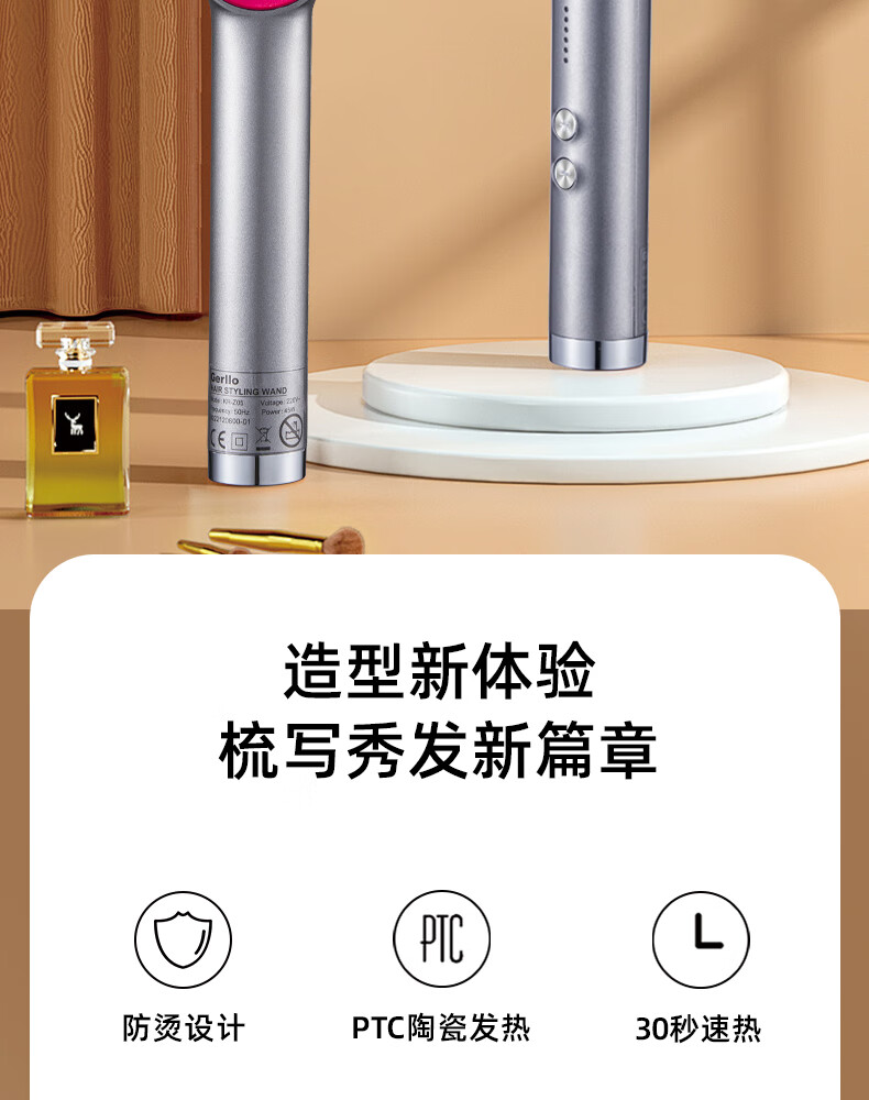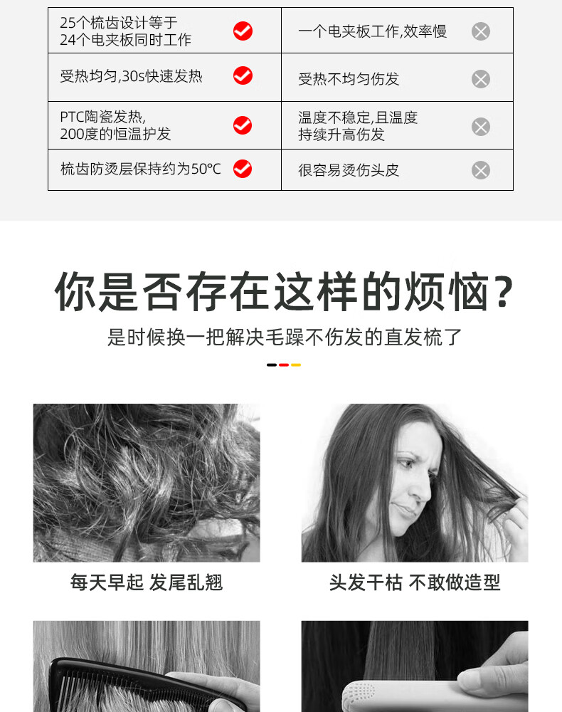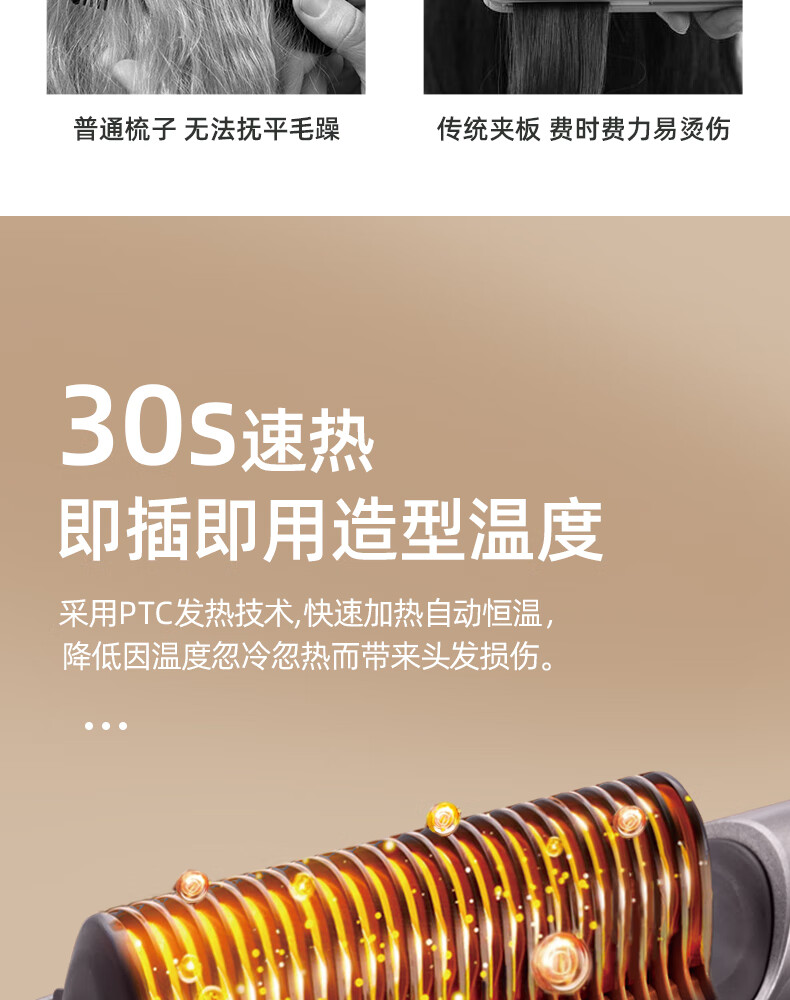 Gerllo直发梳内扣短头发蓬松神器造型梳子卷发棒两用不伤发懒人直发梳新年元旦礼物 KR-Z05灰色 120mm