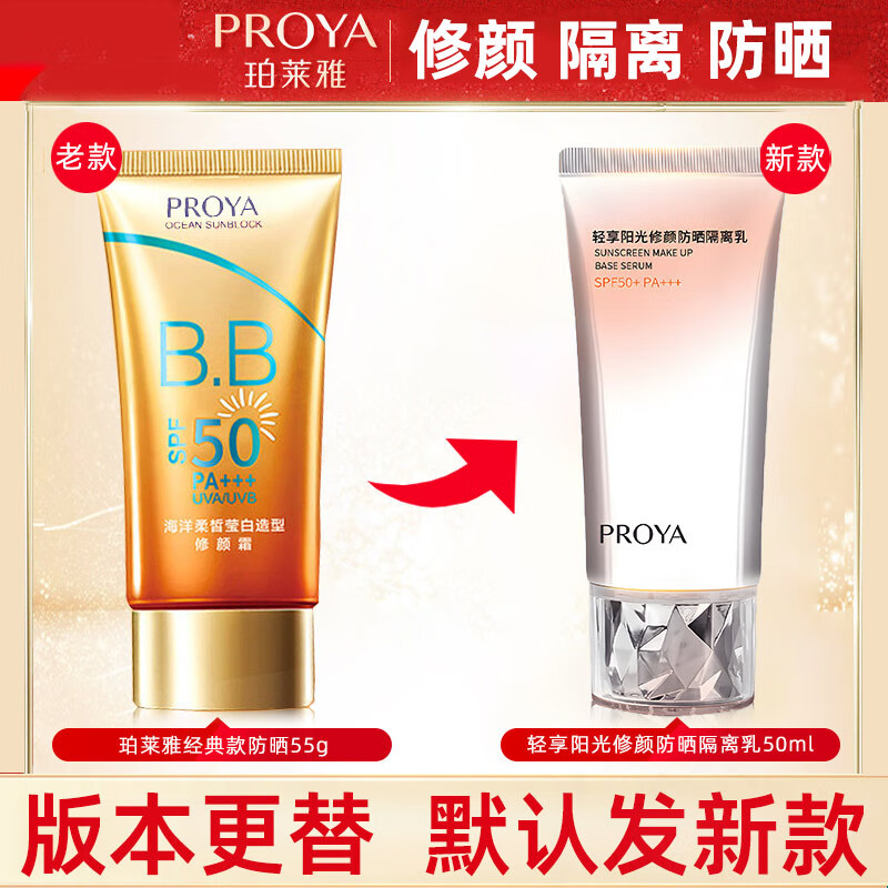 珀莱雅(PROYA)防晒霜隔离高倍防晒户外物理防晒乳修颜防晒BB霜 新款修颜防晒乳1支送【洁面啫喱】