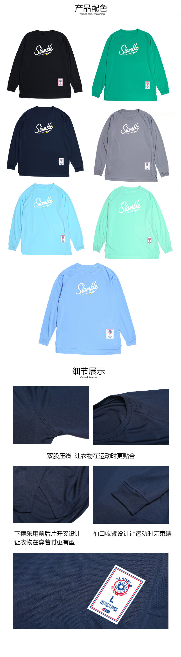 SLAMBLE纯色运动长袖薄款T恤男速干排汗训练热身投篮球服健身衣 黑 XL