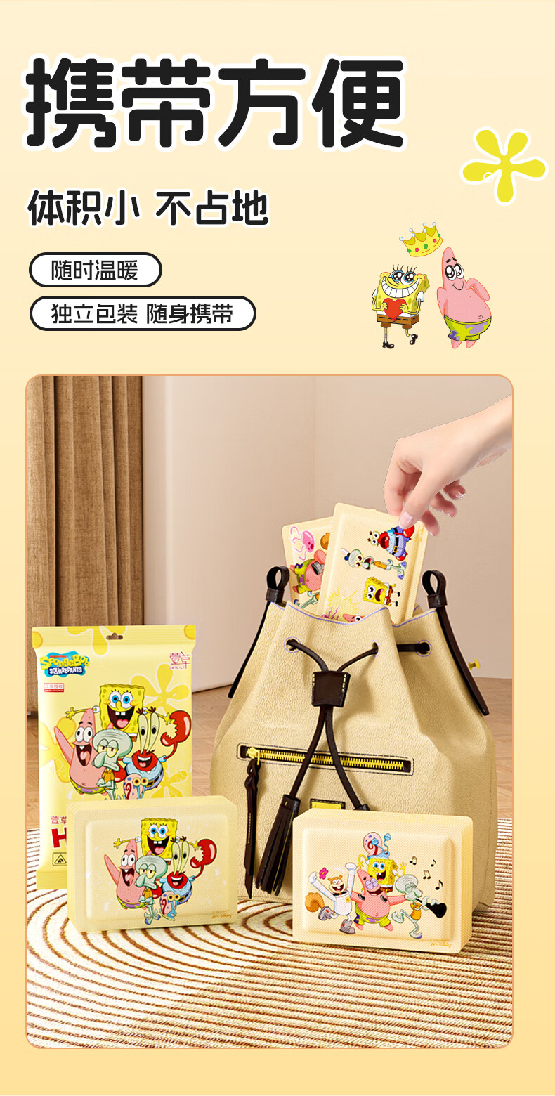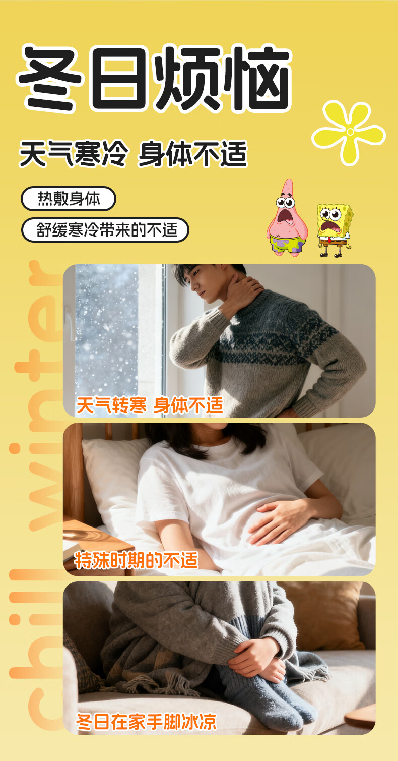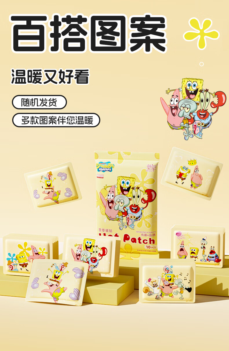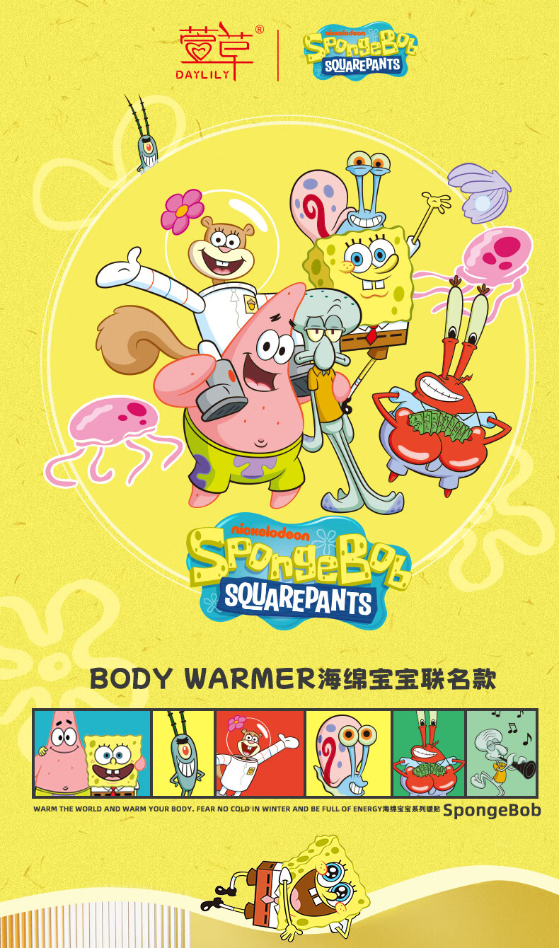 萱草海绵宝宝卡通联名持久发热暖腹暖腰暖四肢冬季防寒保暖暖身贴 20片【海绵家族系列 暖宝宝贴】