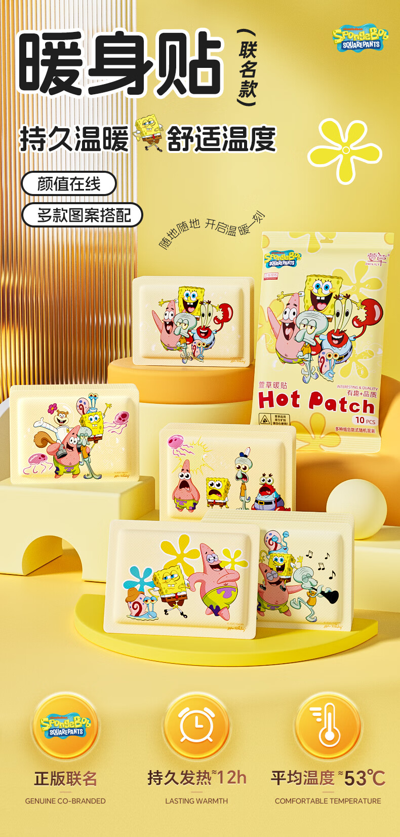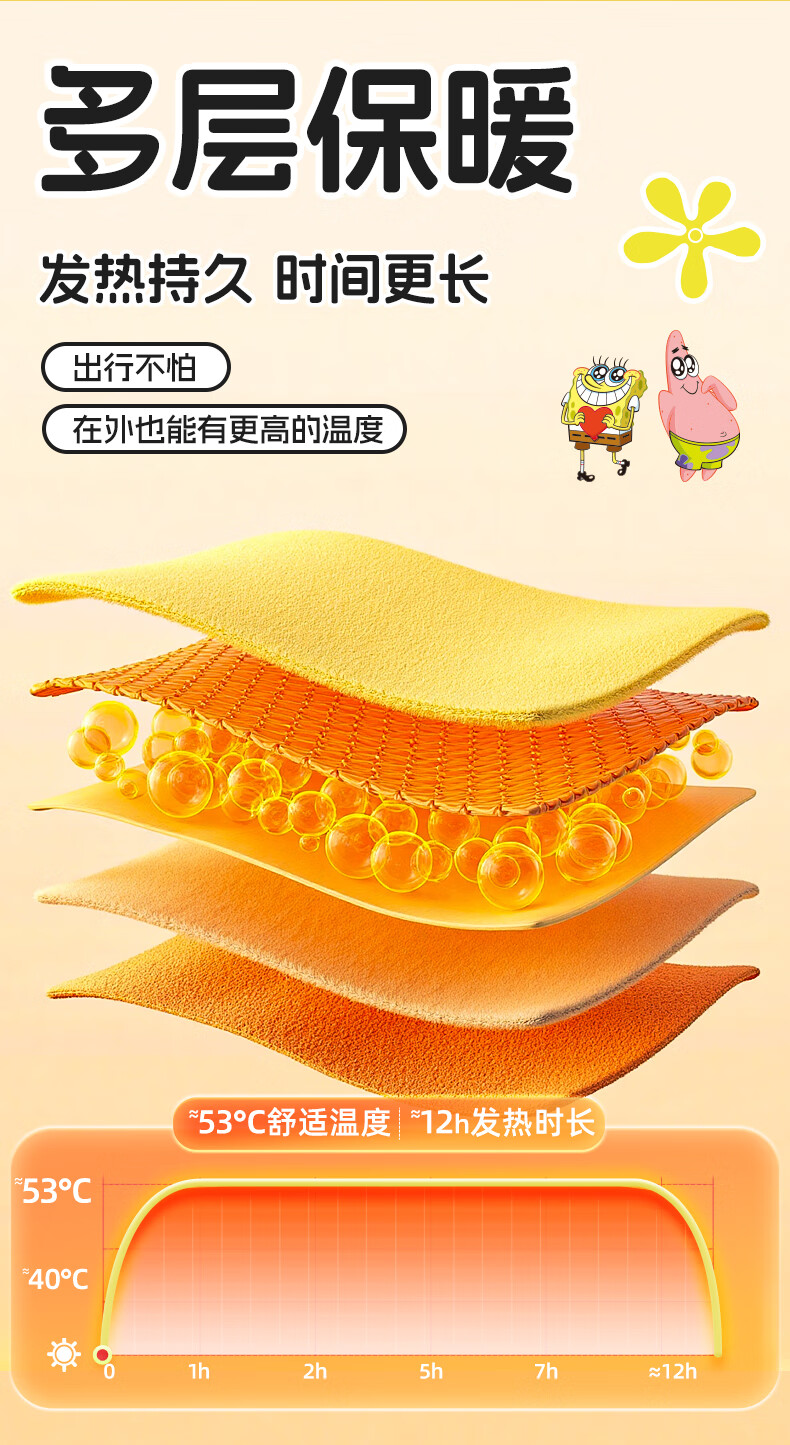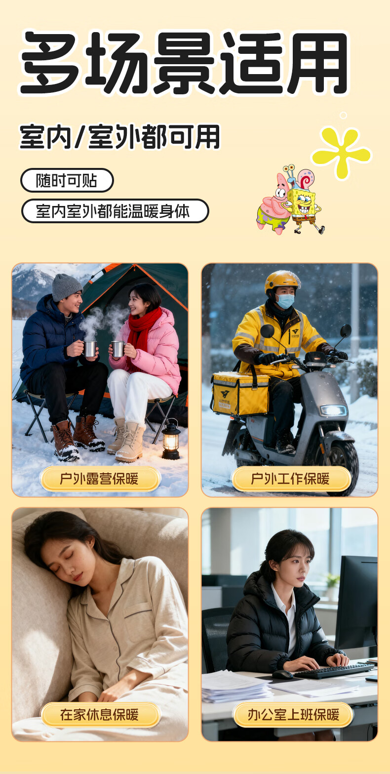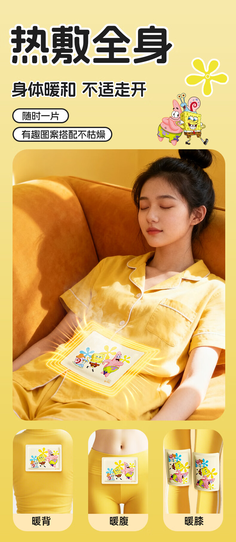 萱草海绵宝宝卡通联名持久发热暖腹暖腰暖四肢冬季防寒保暖暖身贴 20片【海绵家族系列 暖宝宝贴】