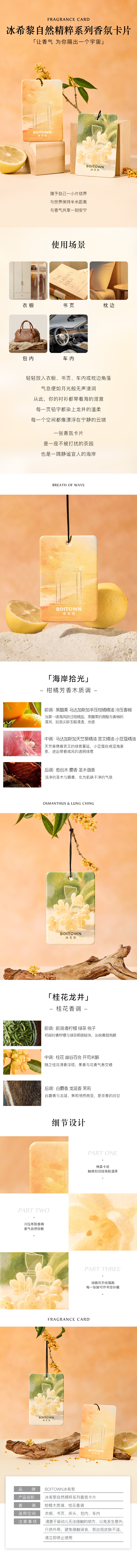 冰希黎(Boitown)自然精粹系列香水香氛卡片衣柜车载香挂香薰摆件香水清新除异味 【2片组合款】桂花龙井+海岸拾光