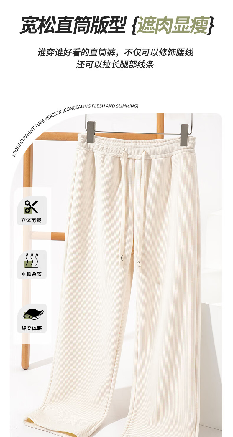 真维斯(Jeanswest)加绒阔腿裤女2024新款秋冬季加厚雪尼尔垂感小个子窄版直筒休闲裤 常规 灰蓝 纯色 S