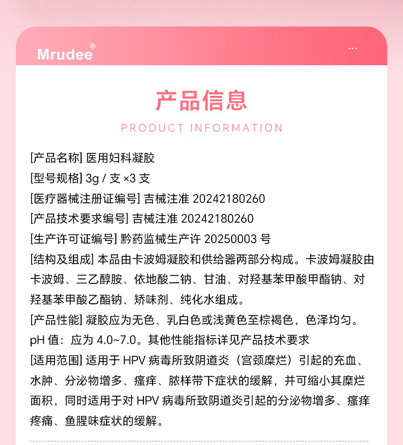MRUDEE抗hpv抗病毒专用干扰素凝胶快速转阴卡波姆妇科a2b生物蛋白敷料XF hpv专用转阴药 三盒装