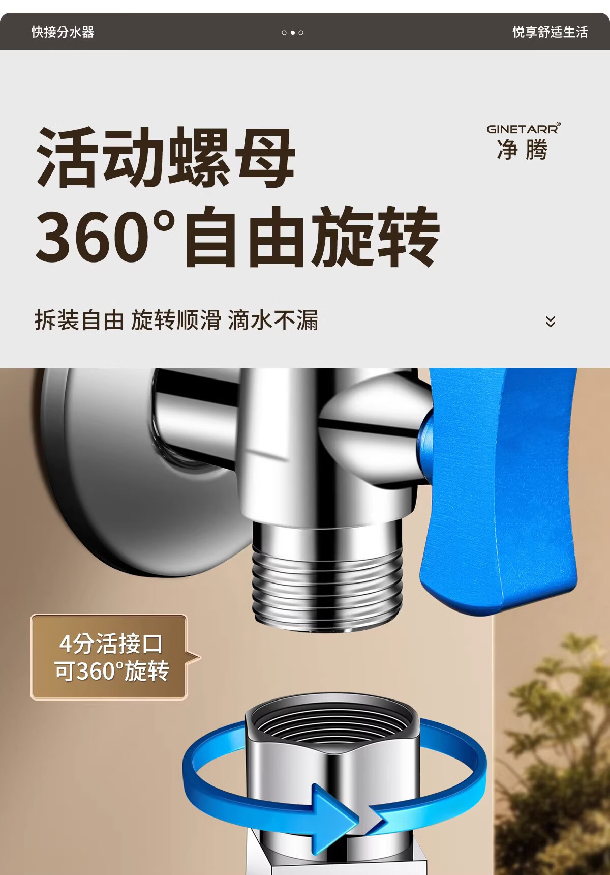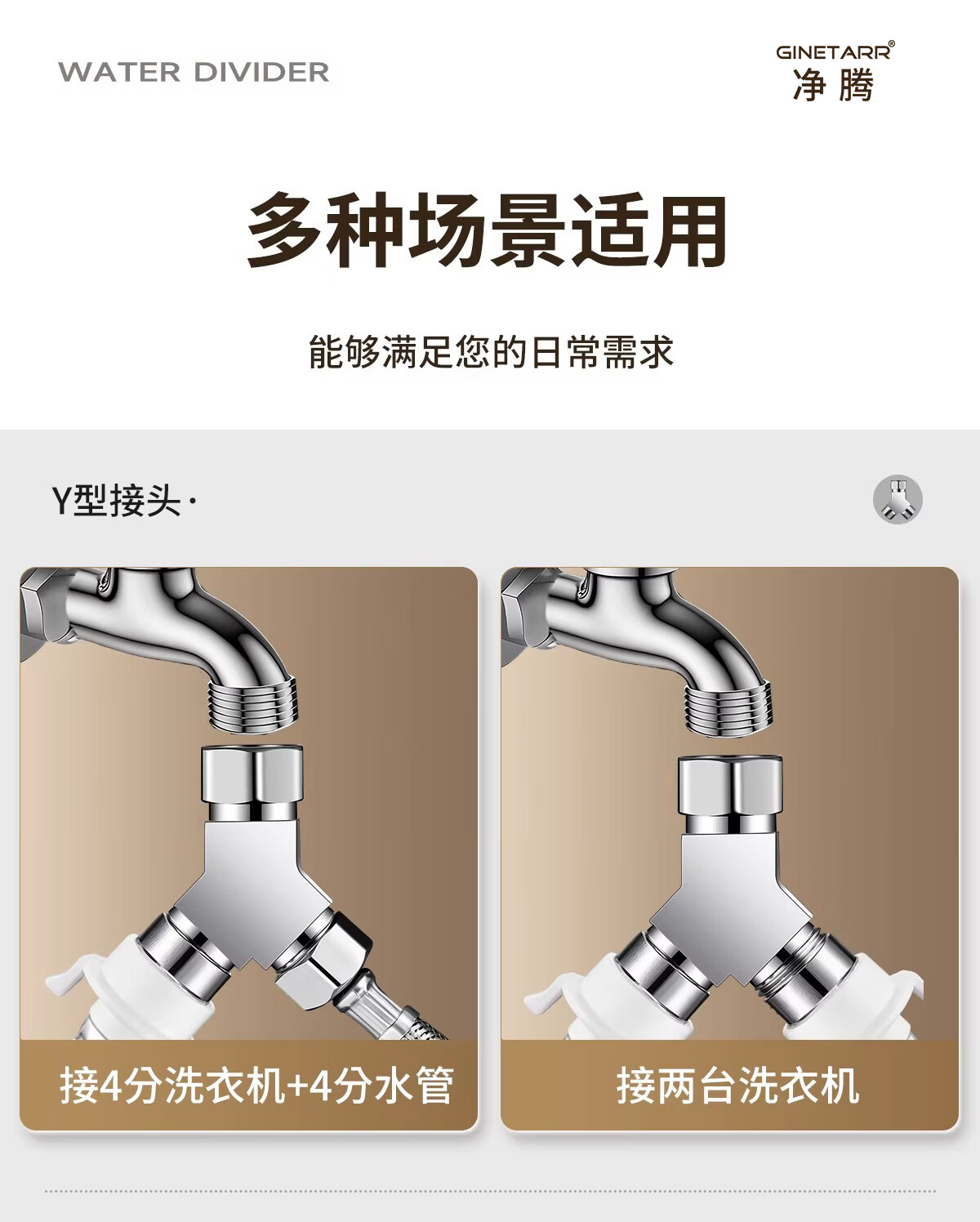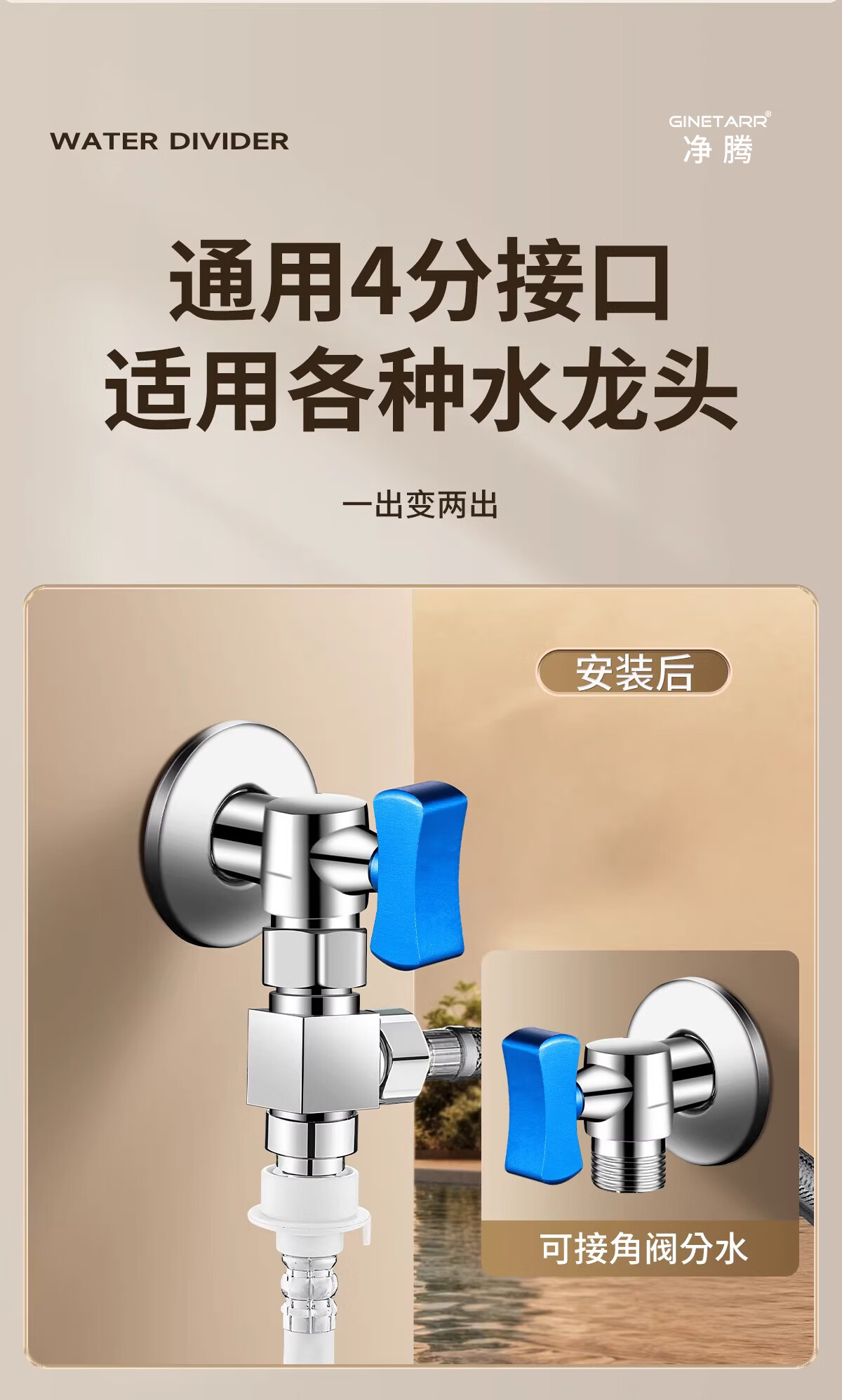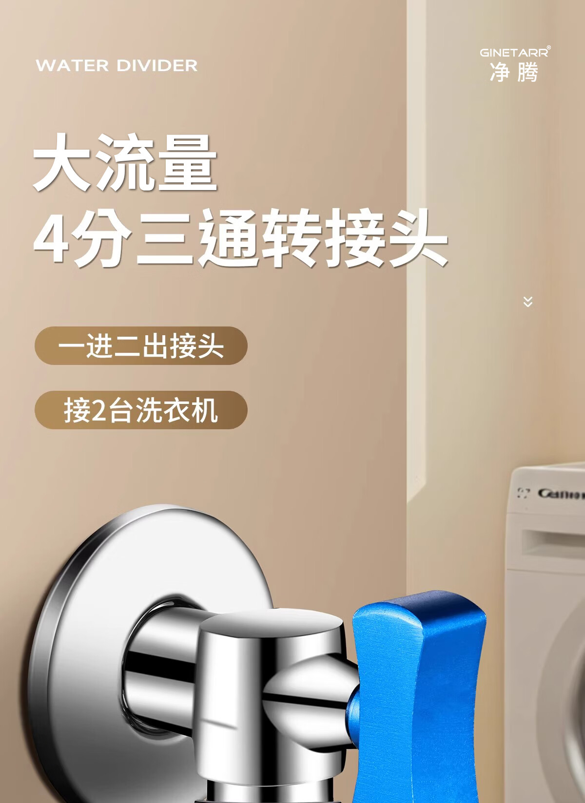 净腾(GINETARR)三通分水器一进二出马桶配件洗衣机水龙头4分活接口角阀分水器 【大水量】一进二出转接头