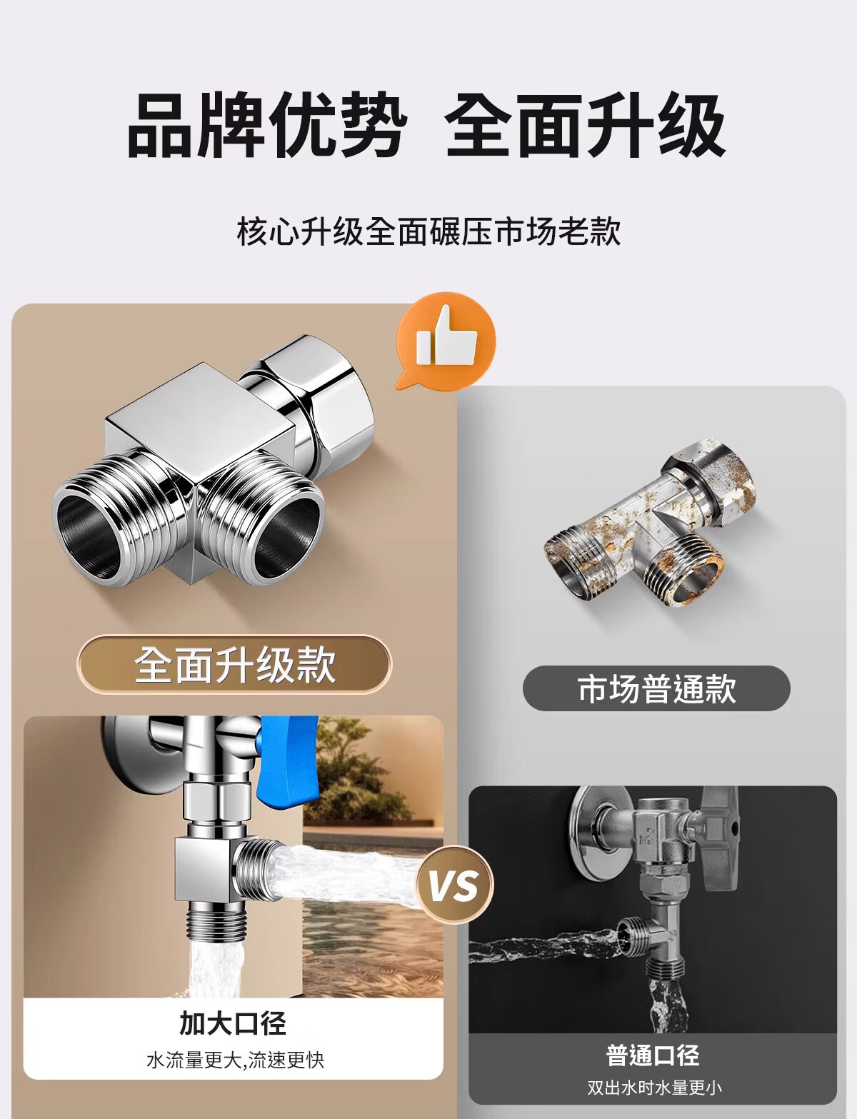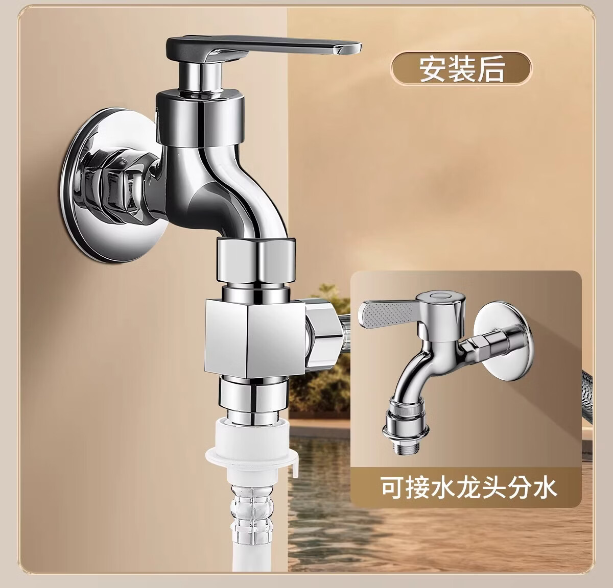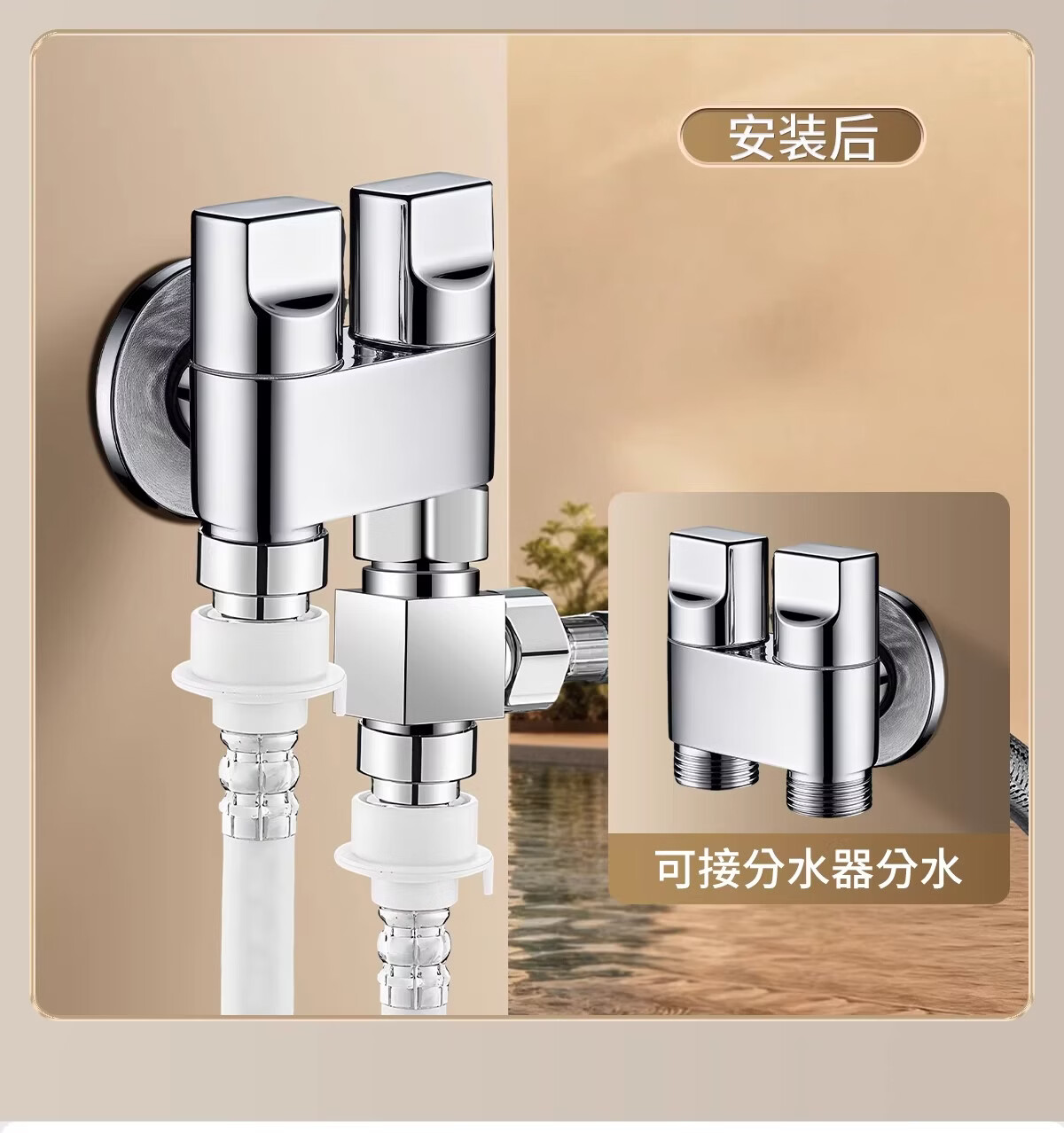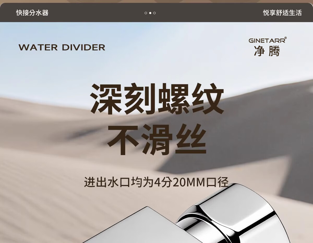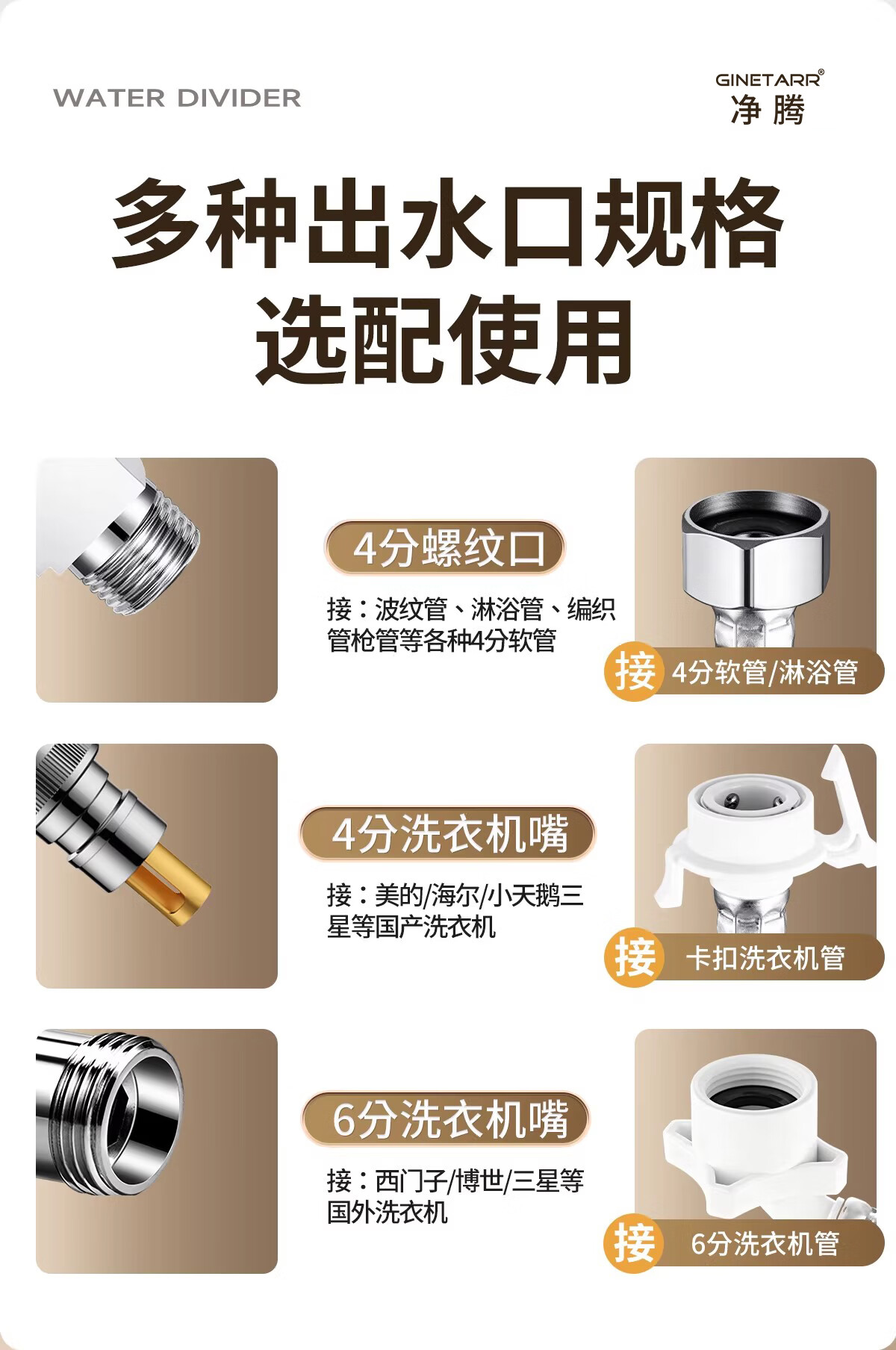 净腾(GINETARR)三通分水器一进二出马桶配件洗衣机水龙头4分活接口角阀分水器 【大水量】一进二出转接头