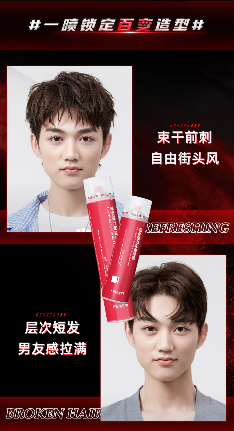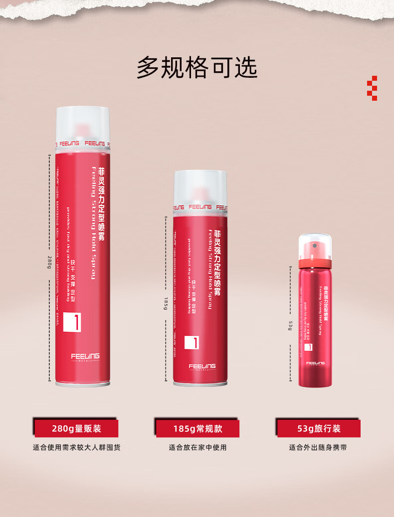 菲灵(FEELING) 强力定型喷雾男发胶女士刘海持久定型自然蓬松干胶头发造型清香 定型喷雾280g+53g