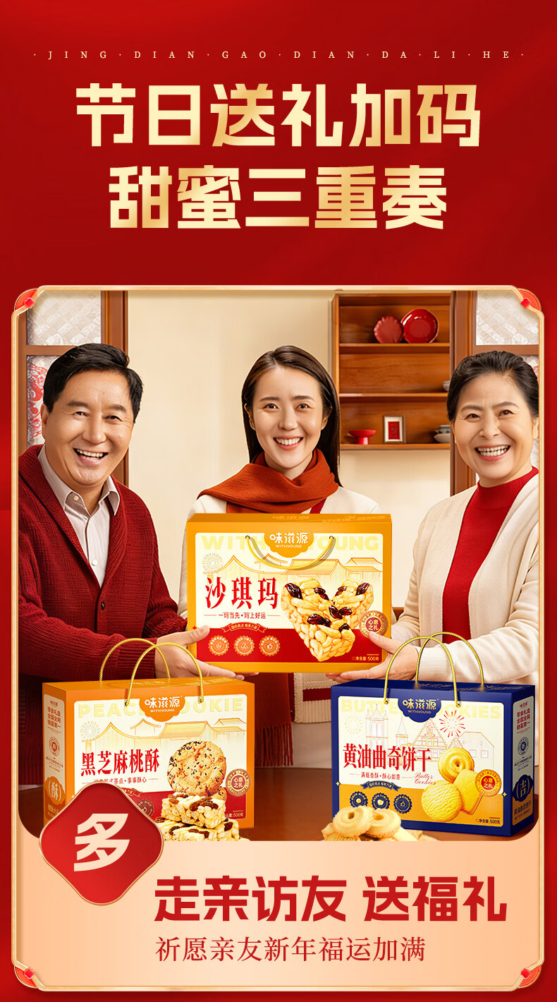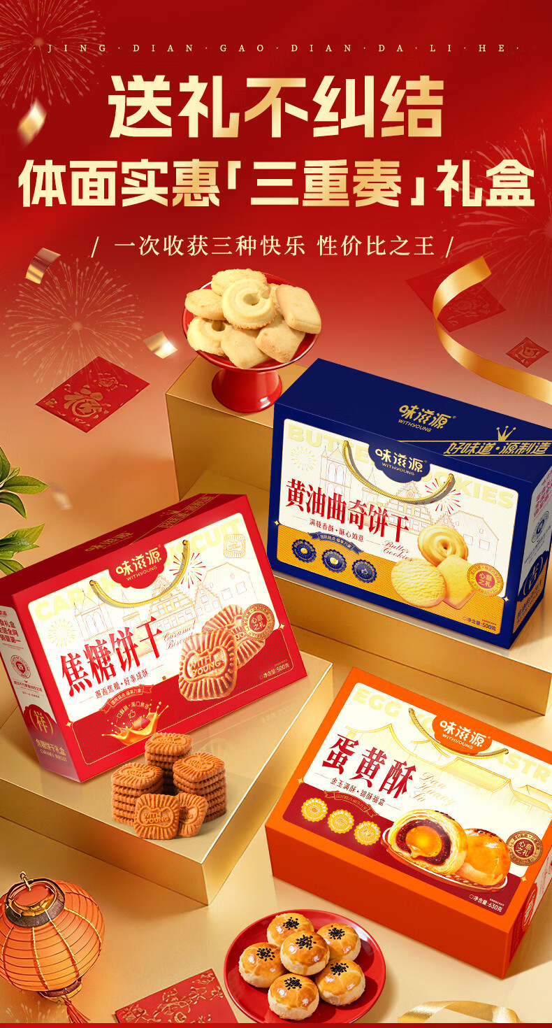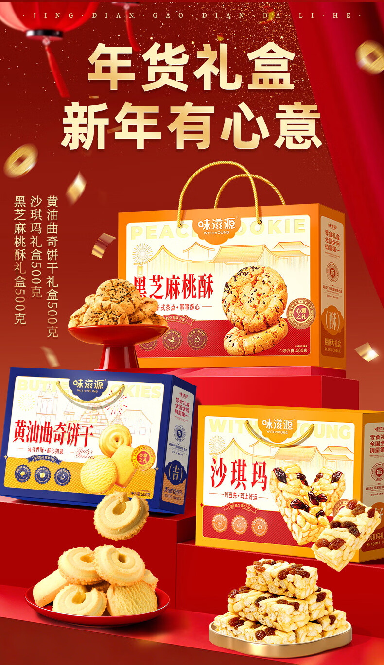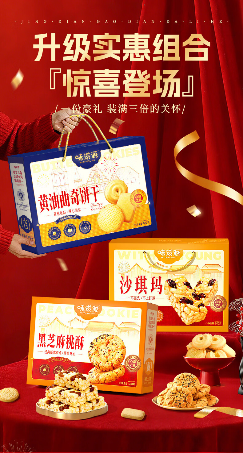 味滋源年货节糕点礼盒沙琪玛桃酥曲奇饼干传统糕点礼盒节日送礼企业团购 【三盒超值装】桃酥+沙琪玛+黄油曲奇