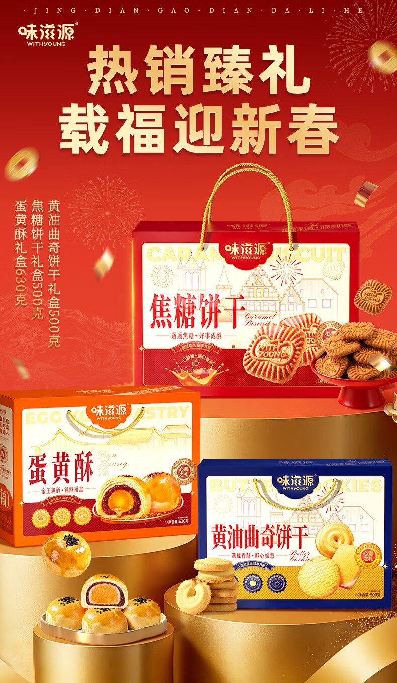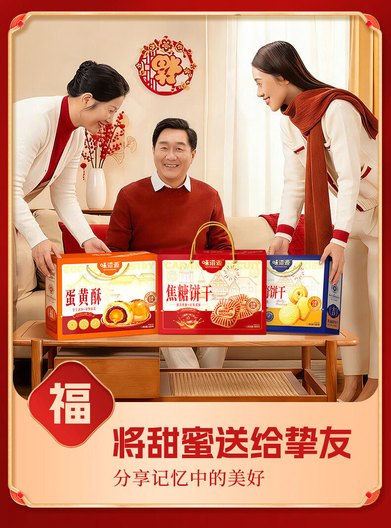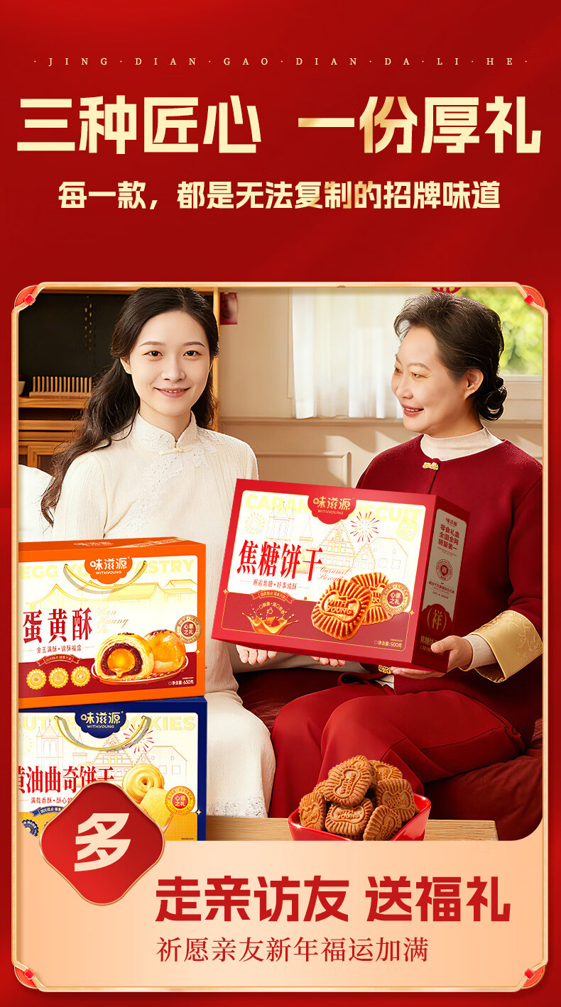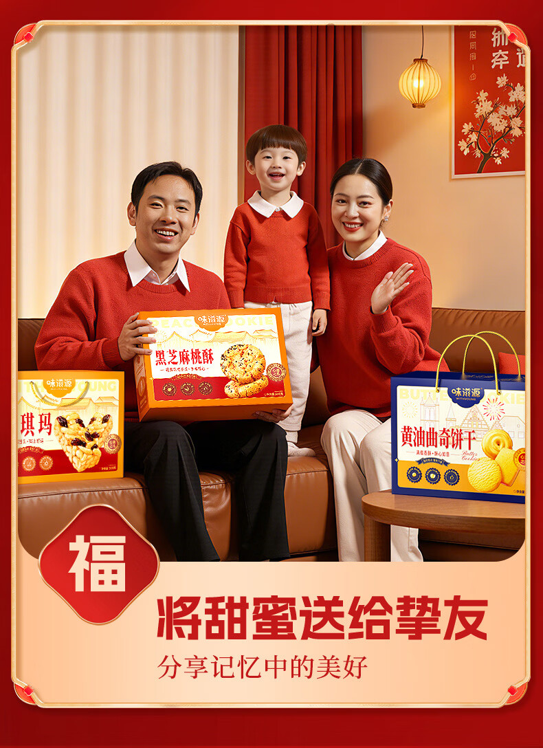 味滋源年货节糕点礼盒沙琪玛桃酥曲奇饼干传统糕点礼盒节日送礼企业团购 【三盒超值装】桃酥+沙琪玛+黄油曲奇