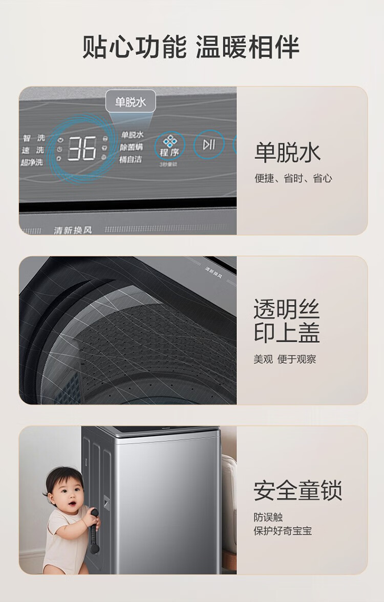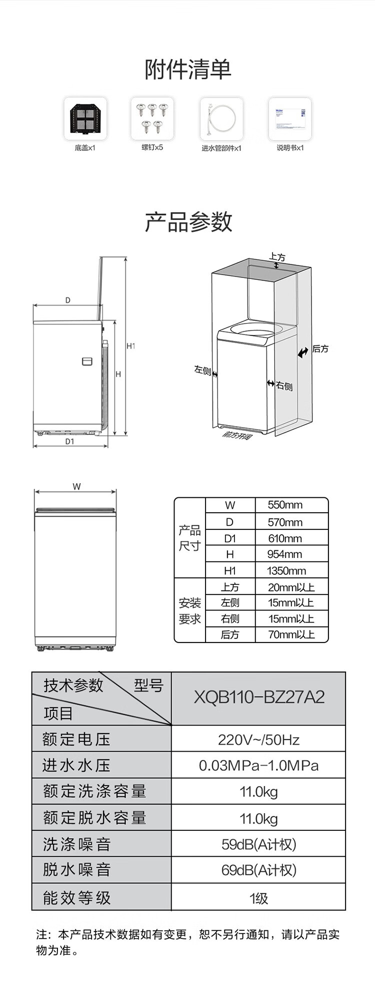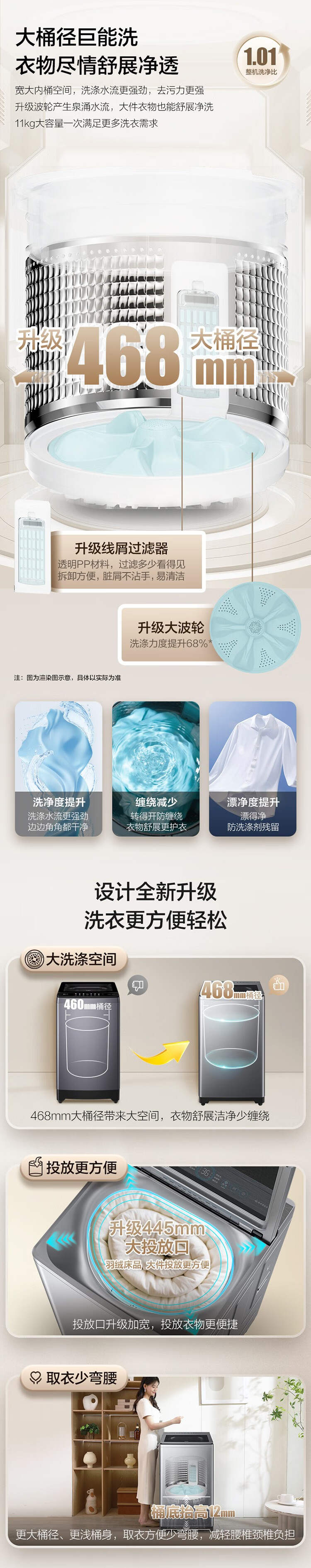 海尔波轮洗衣机全自动11KG 新品 升级大筒 自编程 AI智洗 七维减震 玻璃盖 直驱一级变频XQB110-BZ27A2