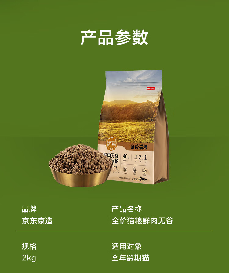 京东京造 鲜肉无谷肠胃调理猫粮(鸡肉盛宴)6kg 低敏鲜鸡肉蛋白酶解2kg*3