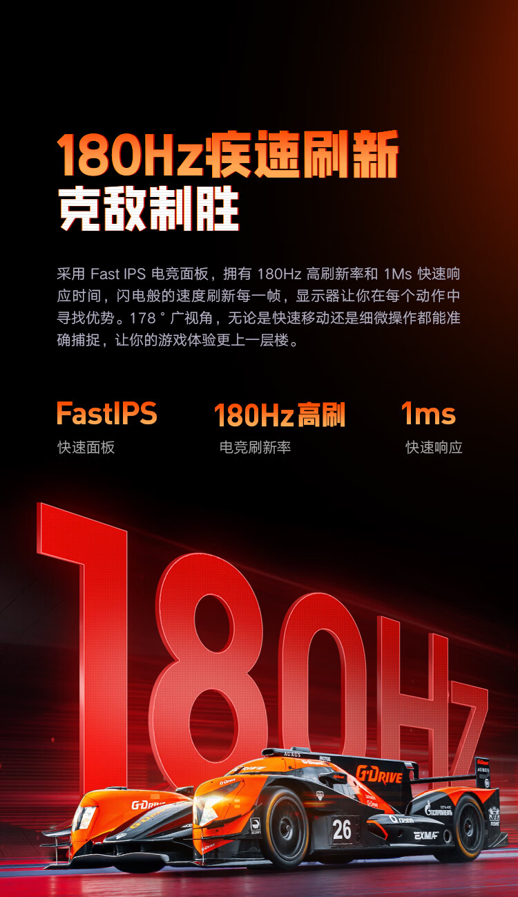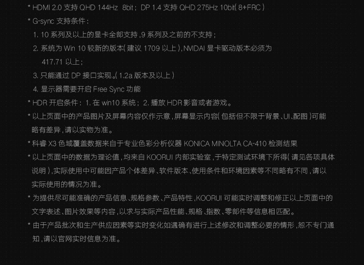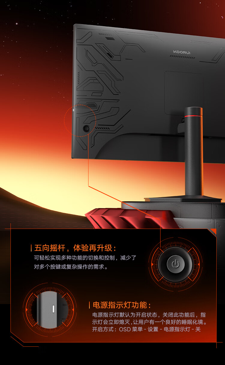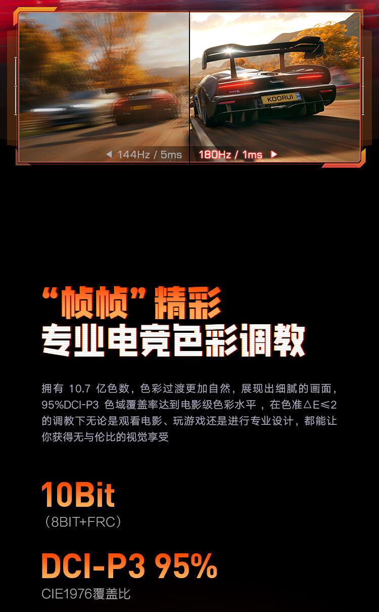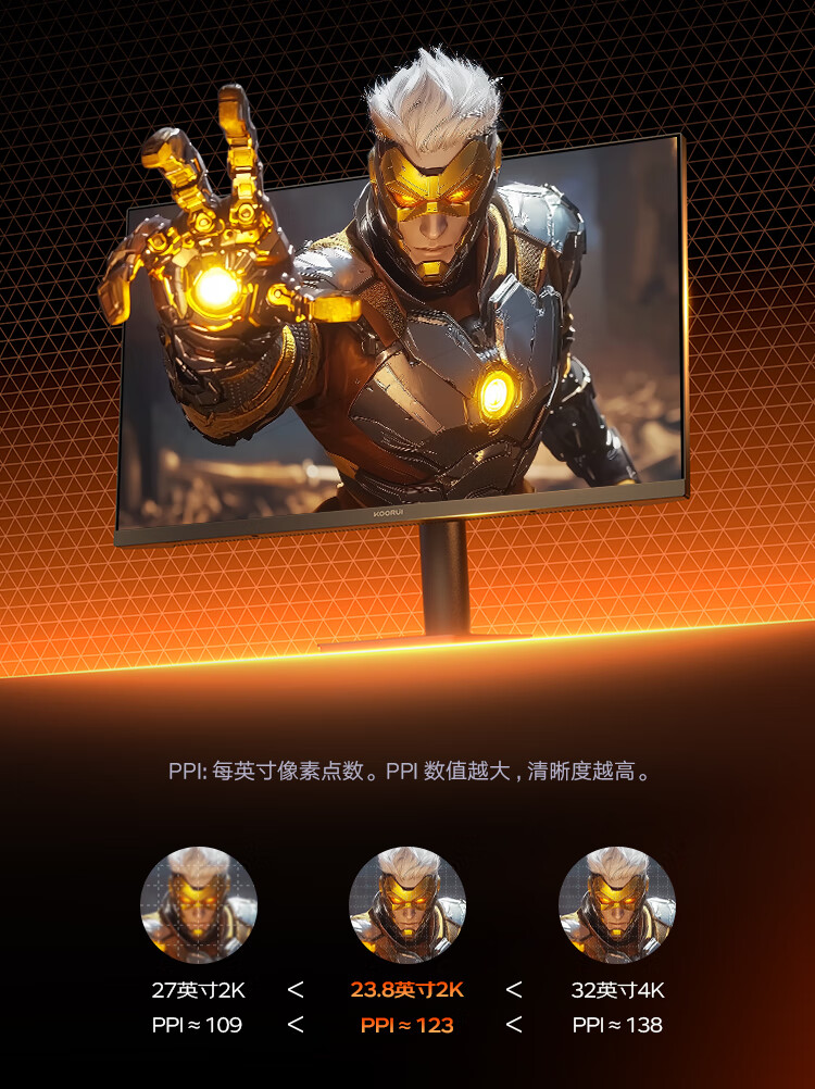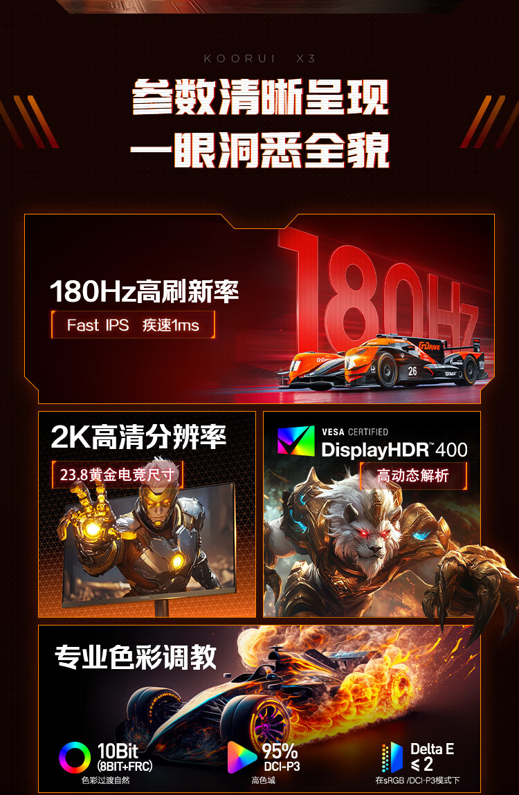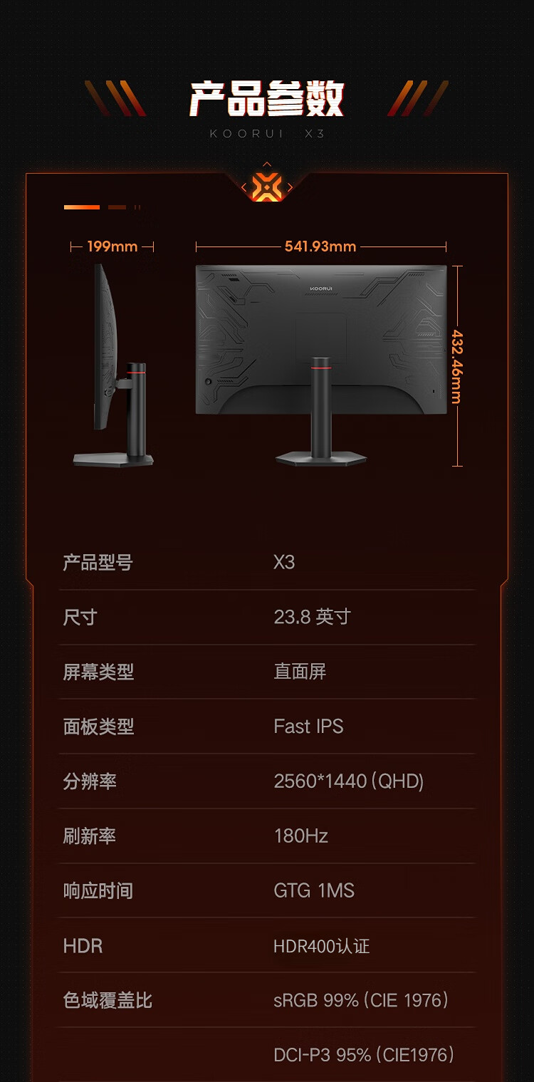 KOORUI 科睿 23.8英寸2K180Hz高刷FastIPS显示器 硬件低蓝光HDR400认证 1ms快响 三角洲游戏电竞显示屏X3