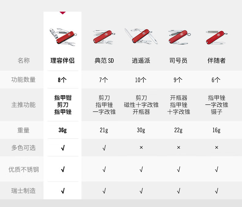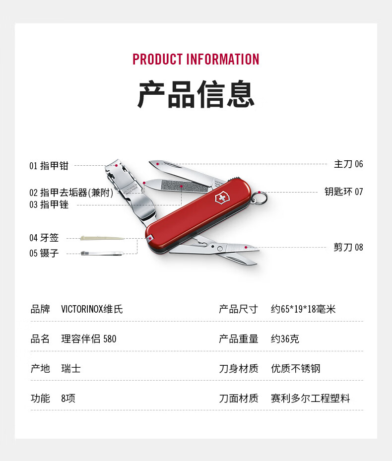 维氏瑞士军刀理容伴侣8项多功能水果刀刀折叠刀红色0.6463.T