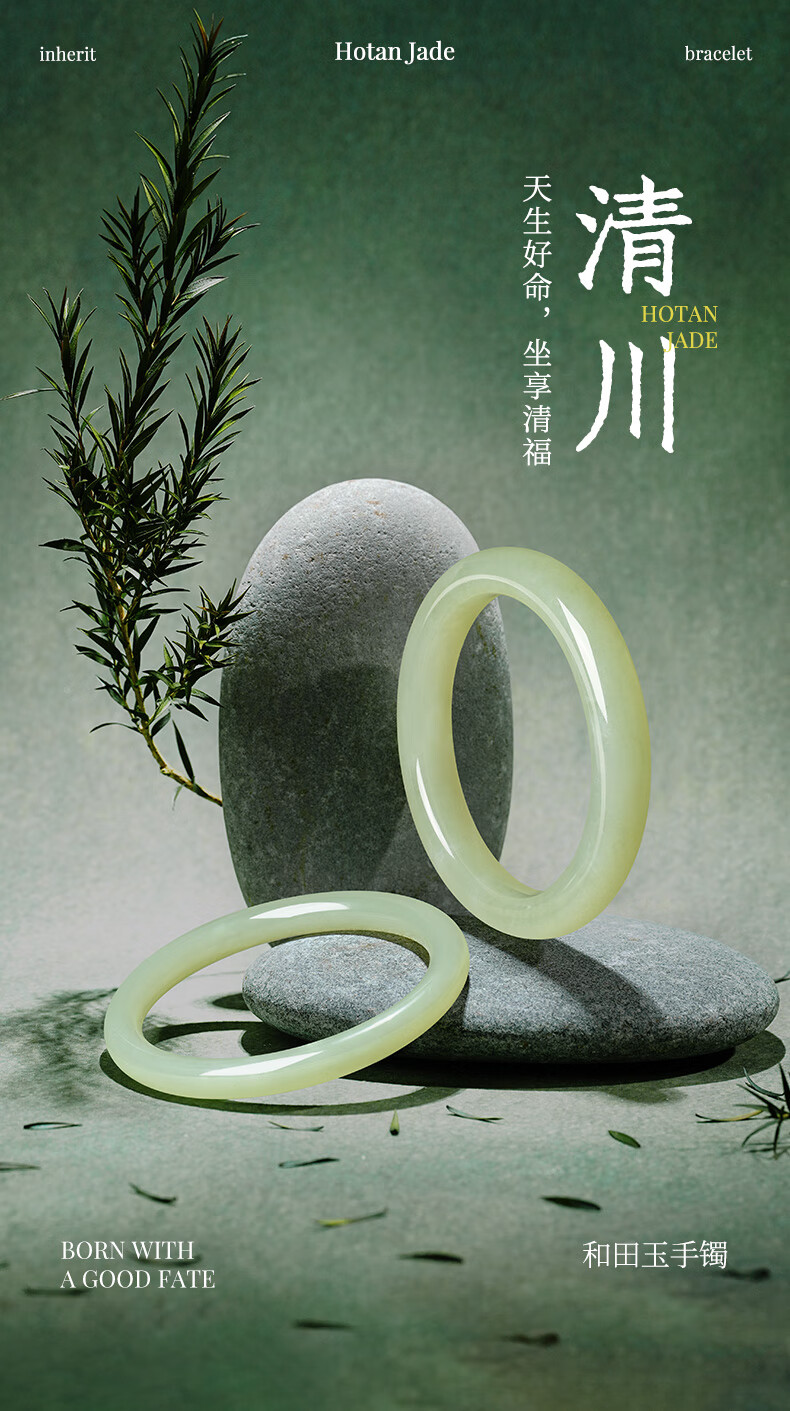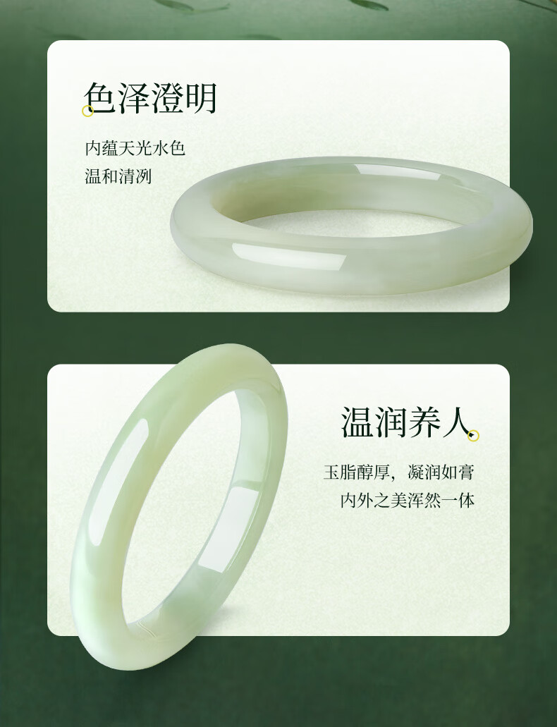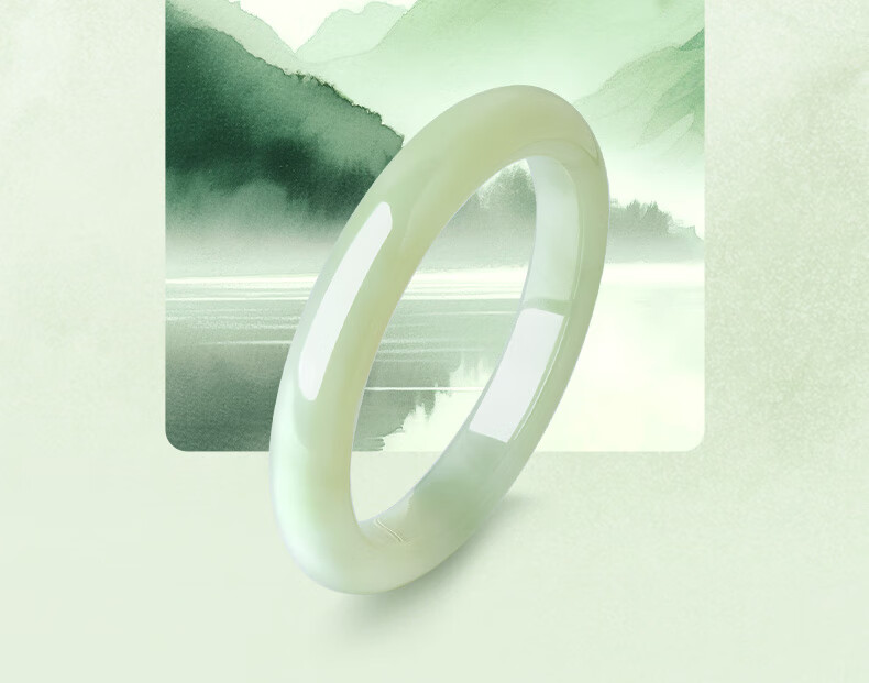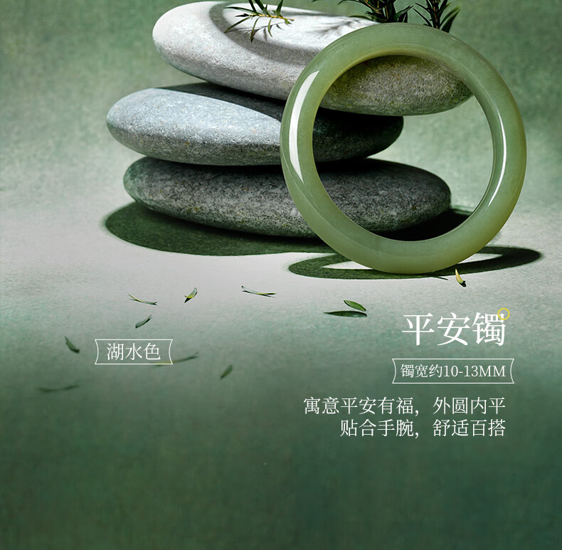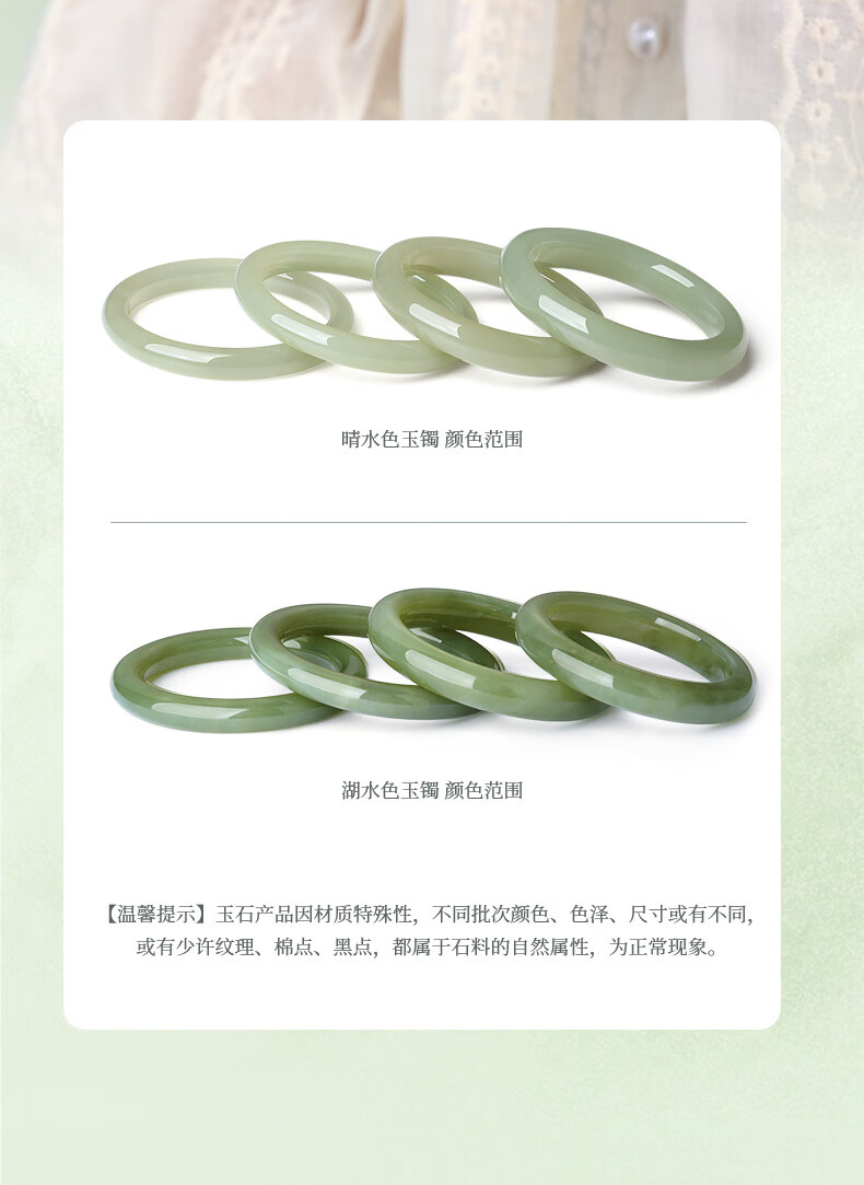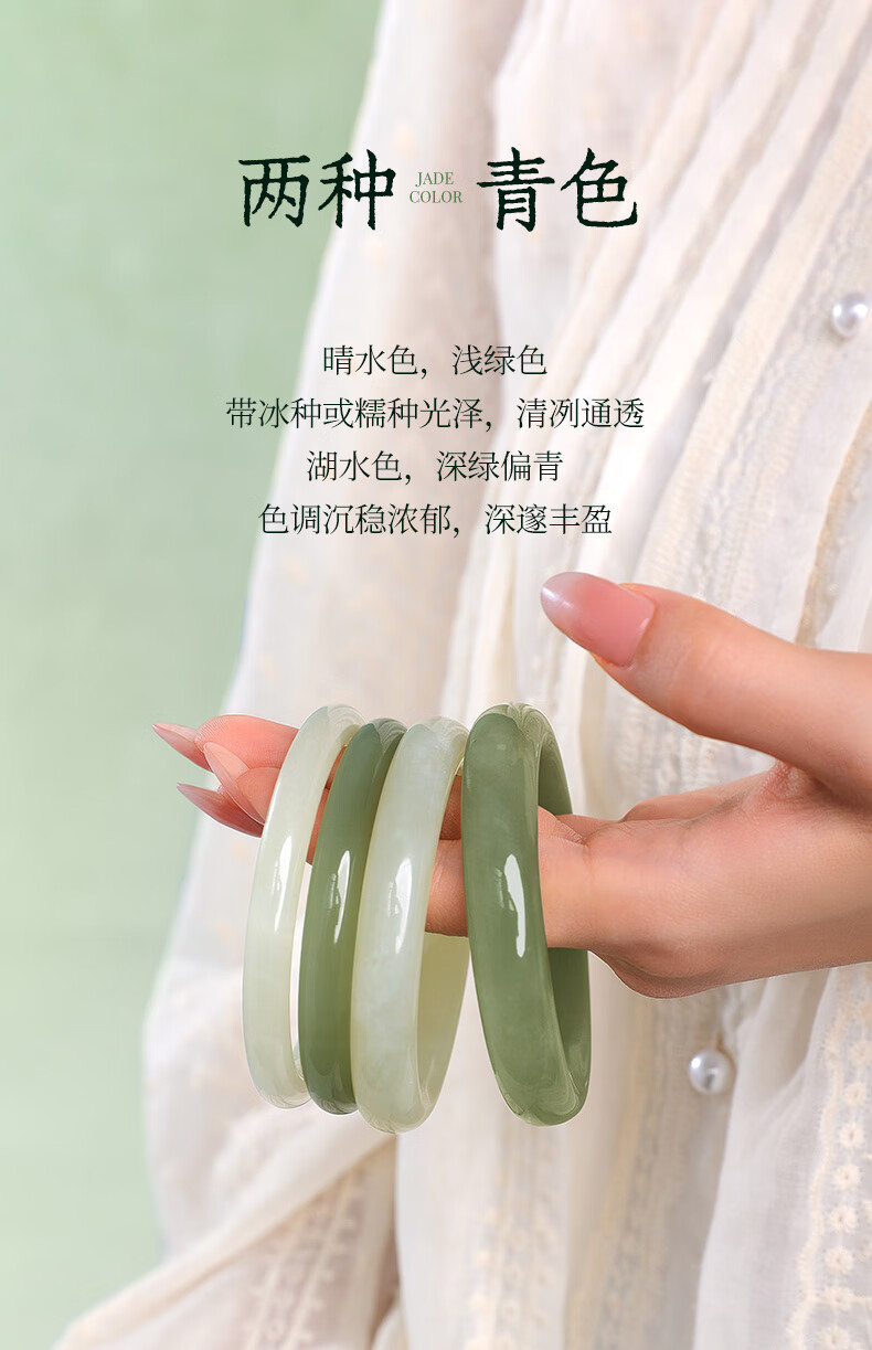 周大生和田青玉手镯女清川玉镯子晴水湖水绿送38妇女节礼物送女友