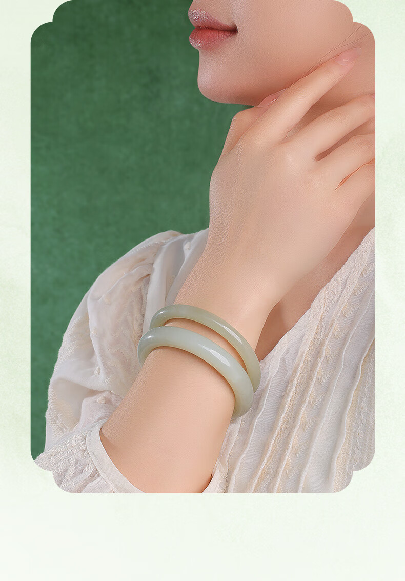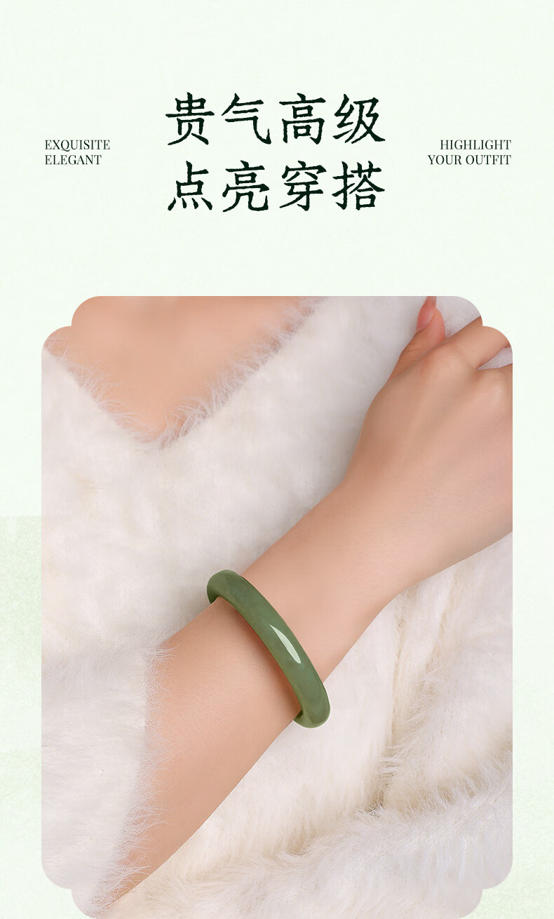 N2it阿富汗玉白色手镯母亲节送妈妈老婆生日礼物 大号内径约61-62mm+高档首饰盒