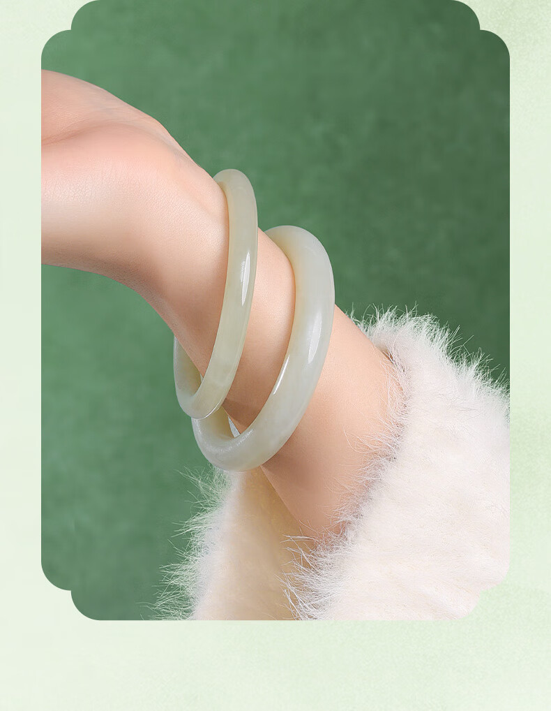 N2it阿富汗玉白色手镯母亲节送妈妈老婆生日礼物 中号内径约58-59mm+高档首饰盒
