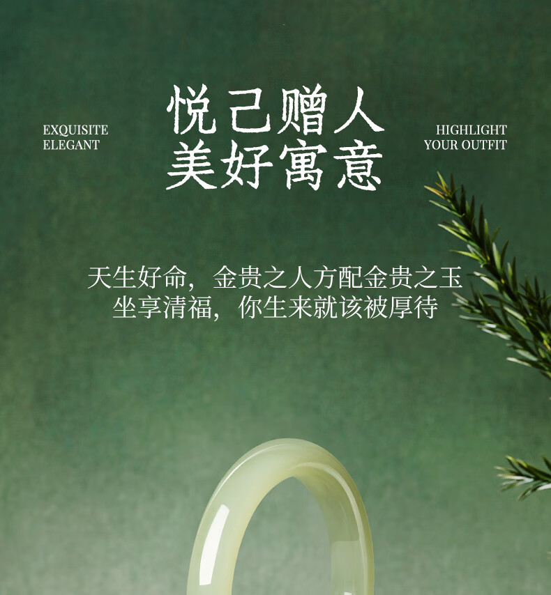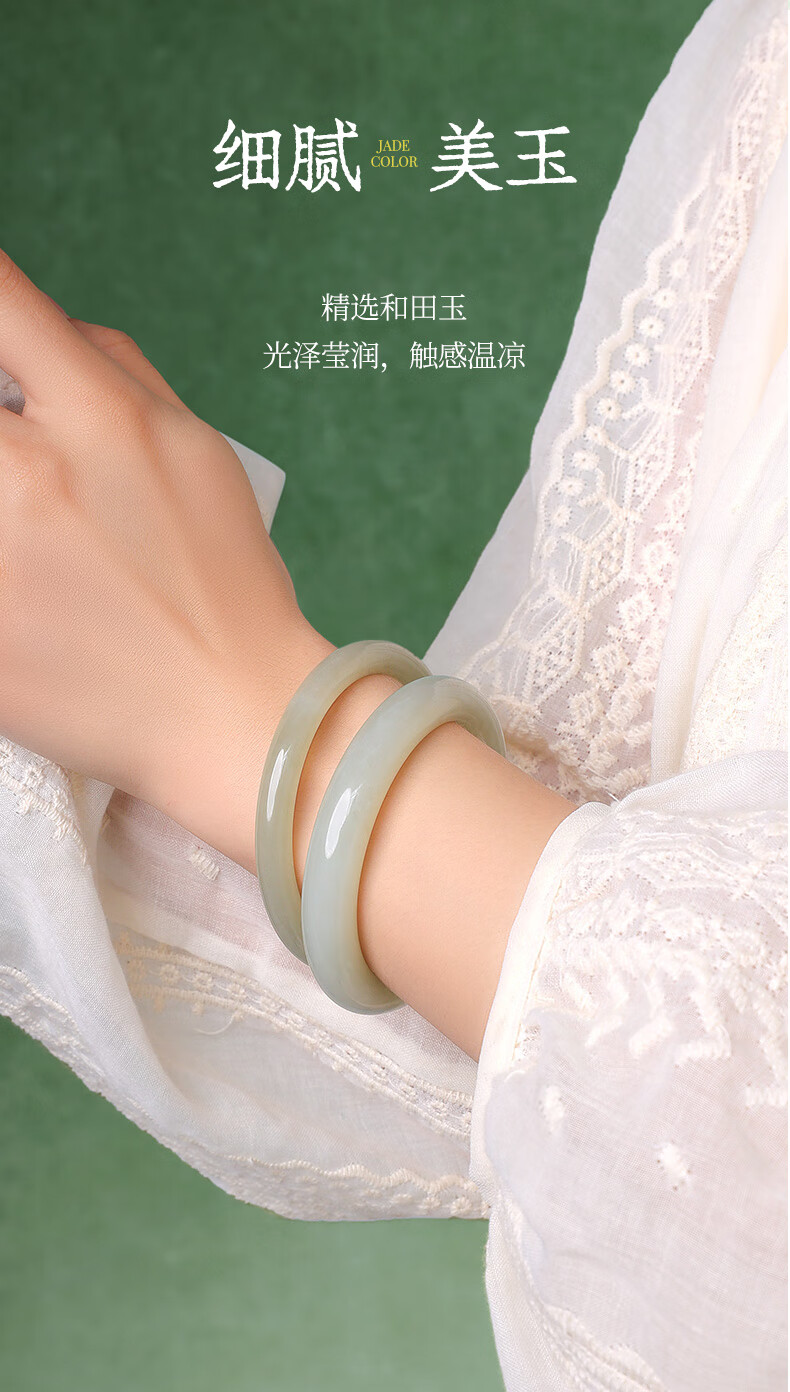 周大生【38妇女节礼物】半山半水叮当镯国风细条玉髓手镯子送女友