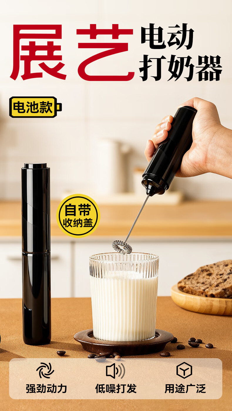 展艺电动打奶泡器新年咖啡打泡器奶泡打发器手持搅拌棒打蛋器冲调打发